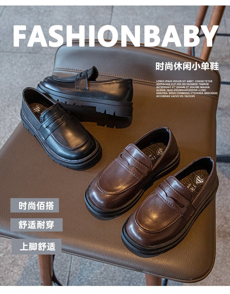 G.duck boys' small leather shoes, spring and autumn children's black single shoes, middle and large children's British style fashionable soft sole beanie student performance shoes black yy C200 26 shoe inner length 15.8cm