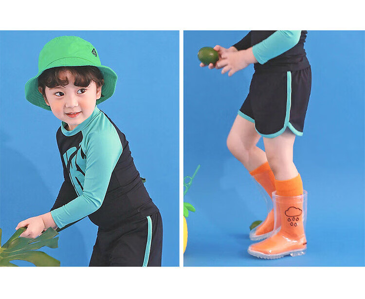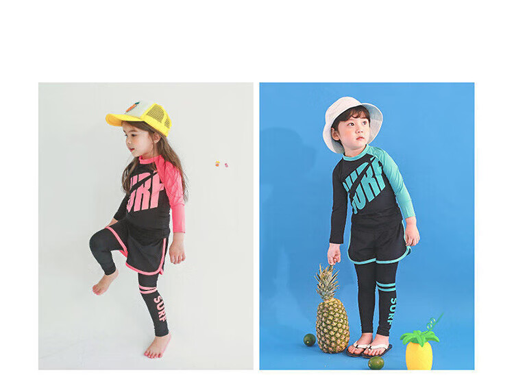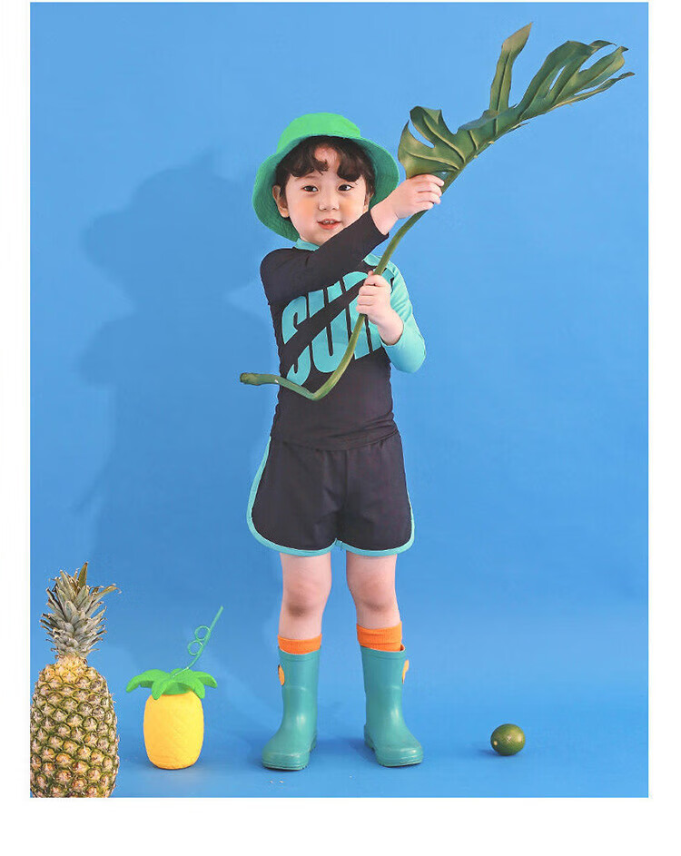 Kebo (KEBO) new children's swimsuit for girls, medium and large children's split suit baby quick-drying long-sleeved sun protection boy's wetsuit 2304 blue three-piece suit 2XL (recommended height 115-125CM)