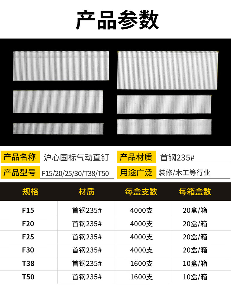 Huxin national standard pneumatic gun nail F30 straight nail decoration furniture woodworking special nail gas nail F10F15F20F25T38T50 gas row nail national standard F30 4000 pieces/box