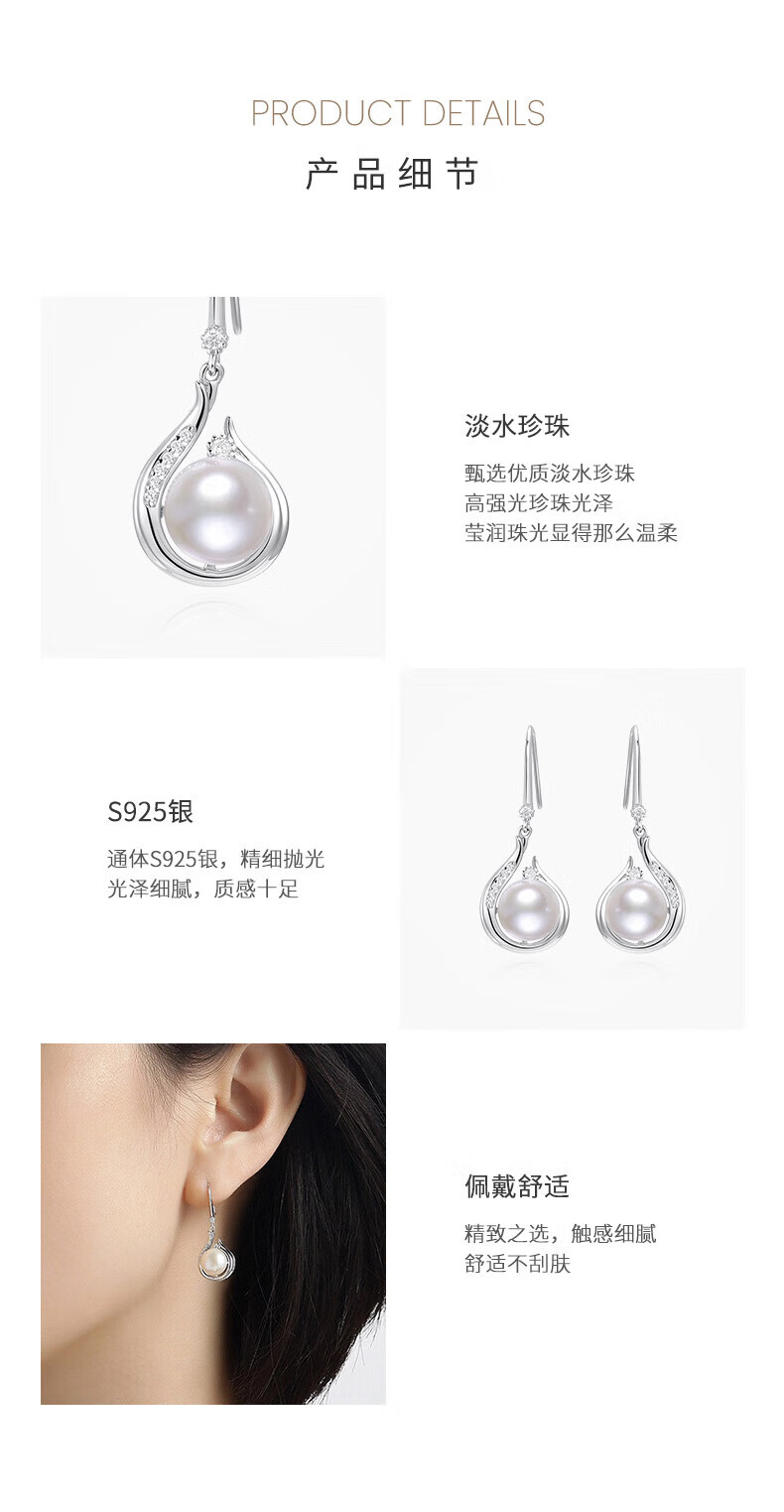 CHINA GOLD simple earrings fashion jewelry 925 silver earrings pearl earrings Valentine's Day birthday gift for girlfriend and wife Jingsuda s925 pearl earrings - limited time clearance
