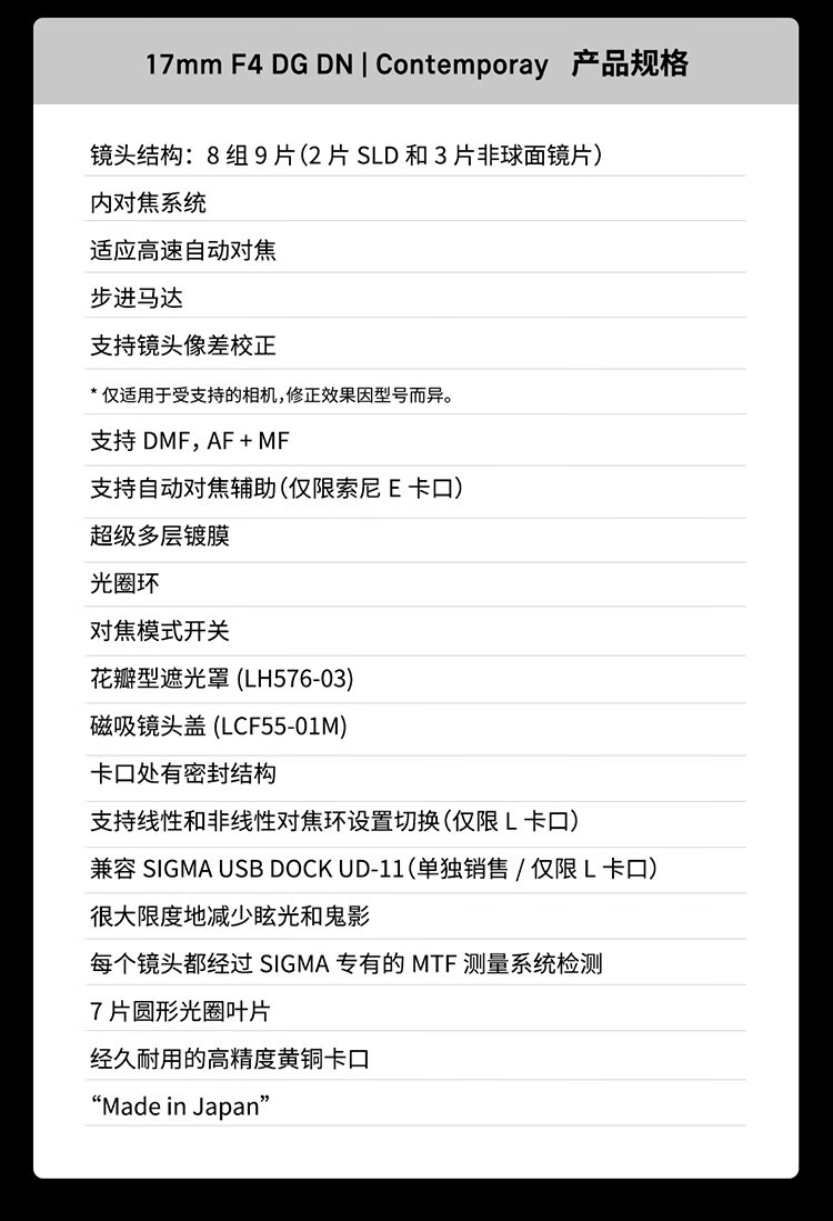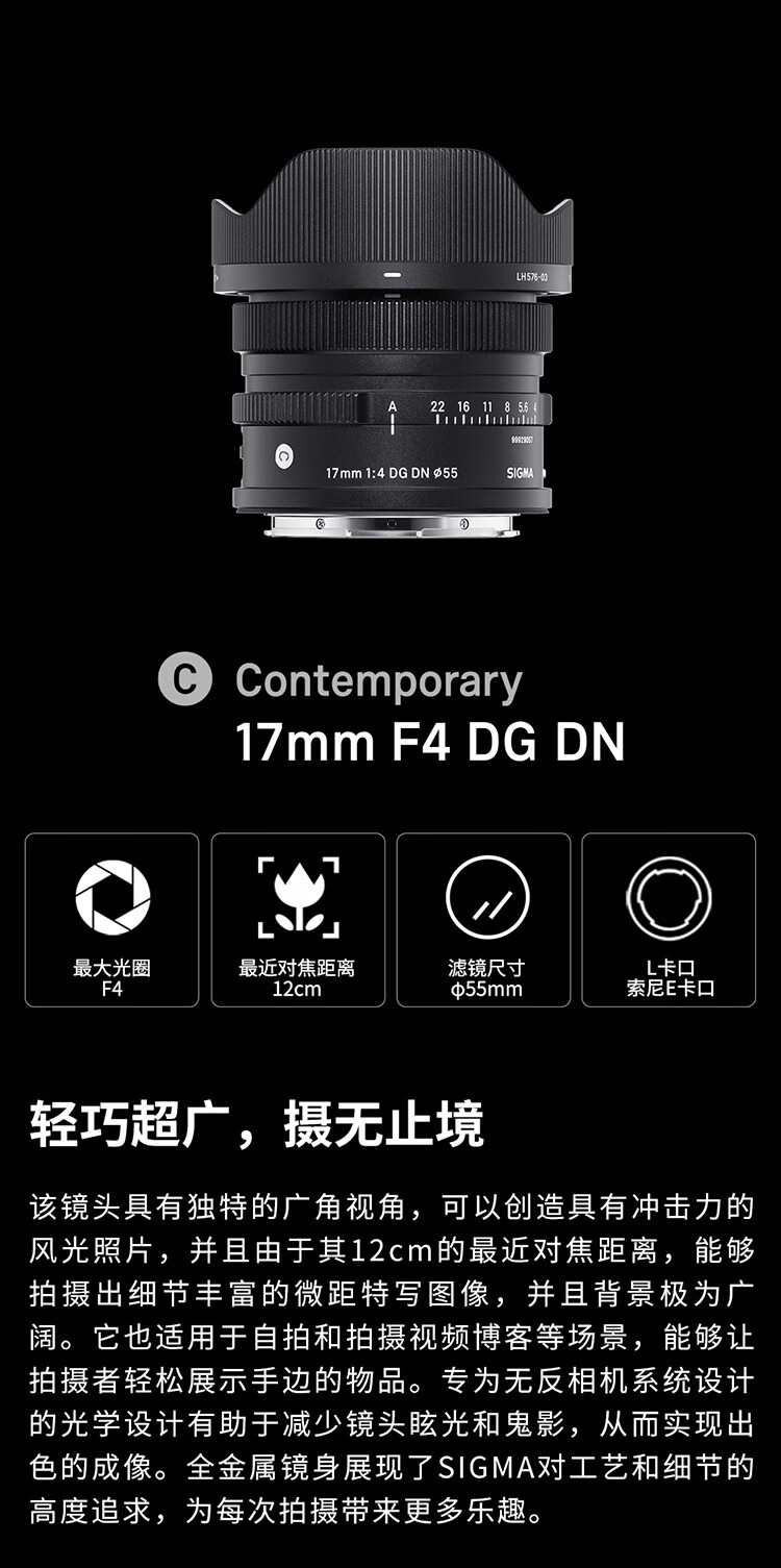 SIGMA 17mm F4 DG DN Contemporary full-frame mirrorless super wide-angle fixed focus lens Sony E-mount
