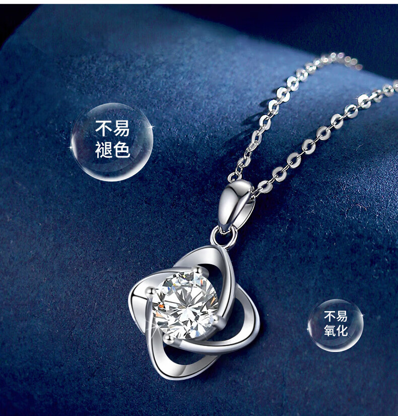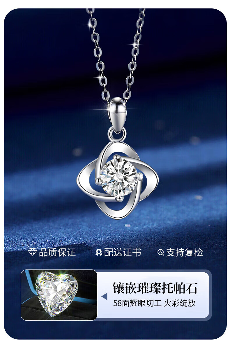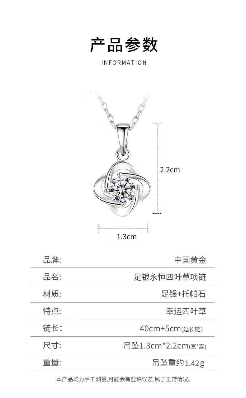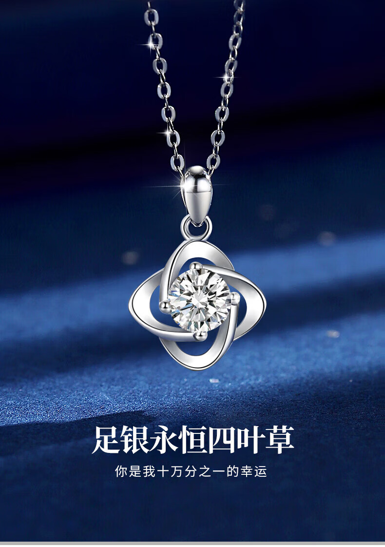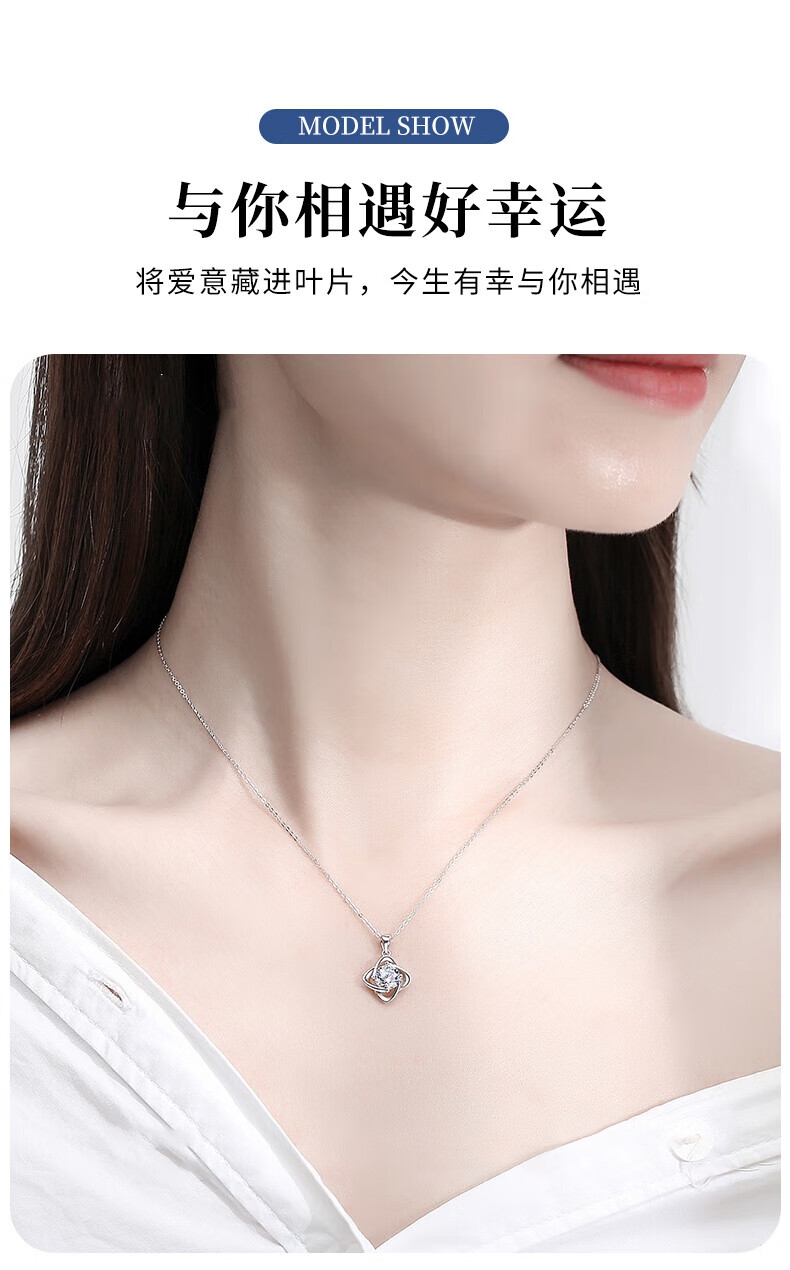 Chinese Gold Four-leaf Clover Silver Necklace for Women 2025 New Silver Pendant Birthday Gift for Girlfriend and Wife Anniversary Four-leaf Clover Necklace-Topaz Jingsuda
