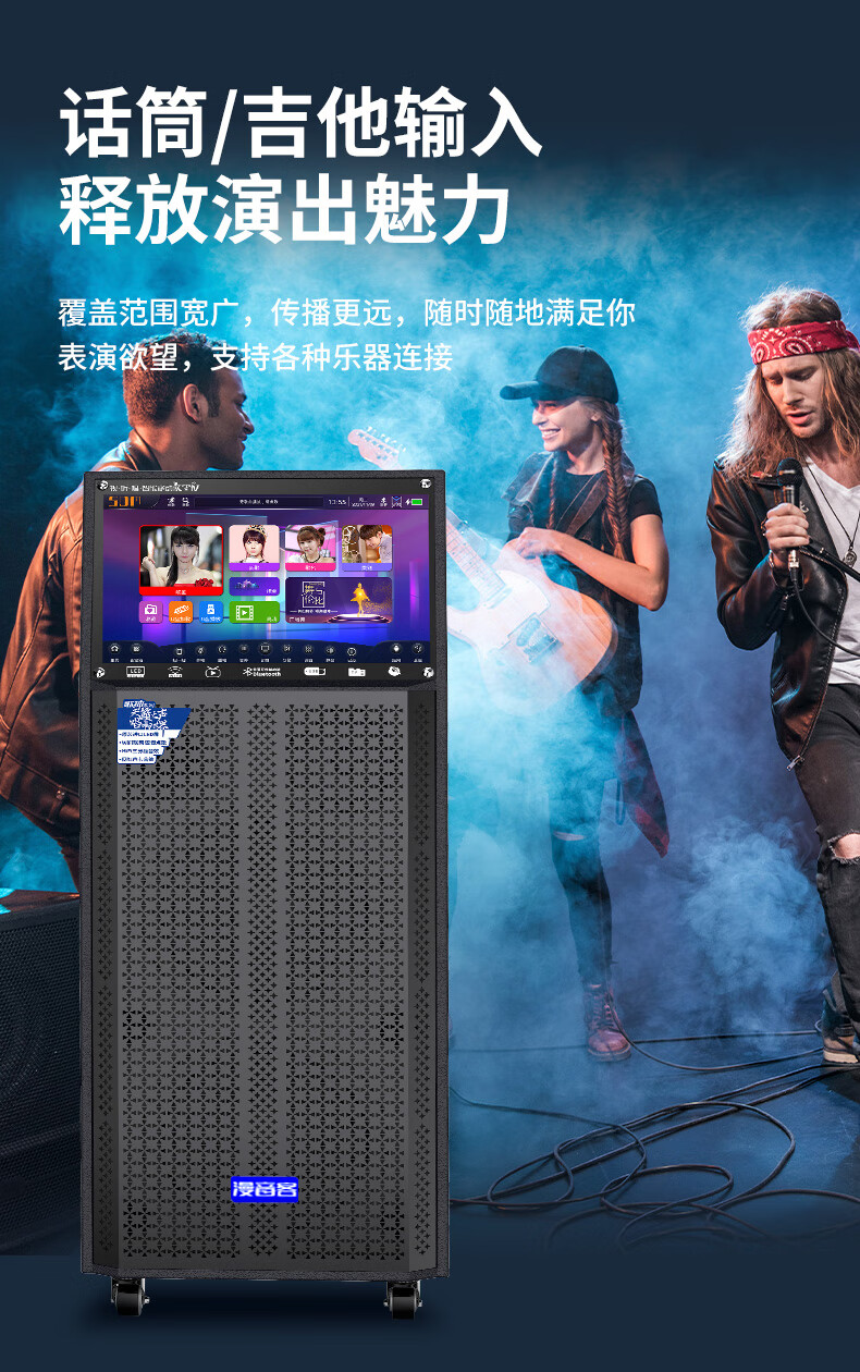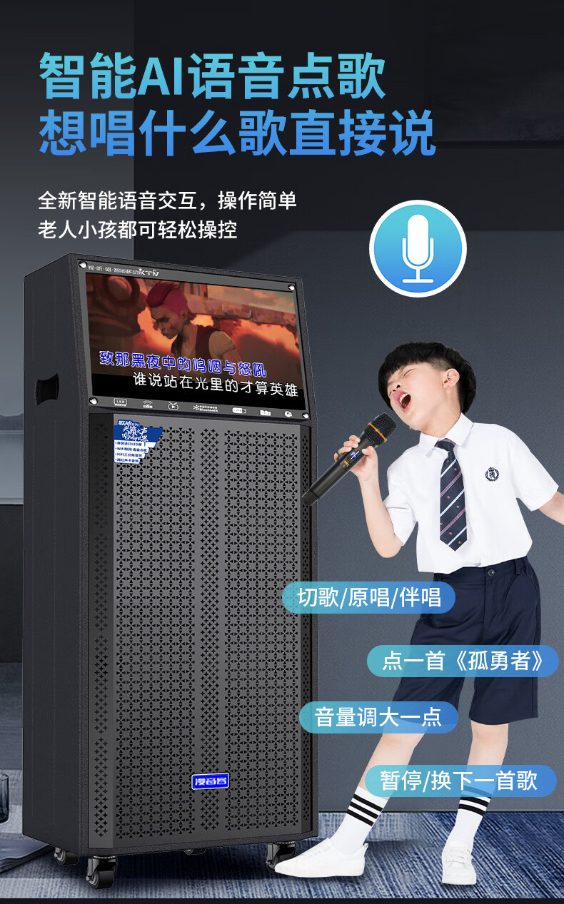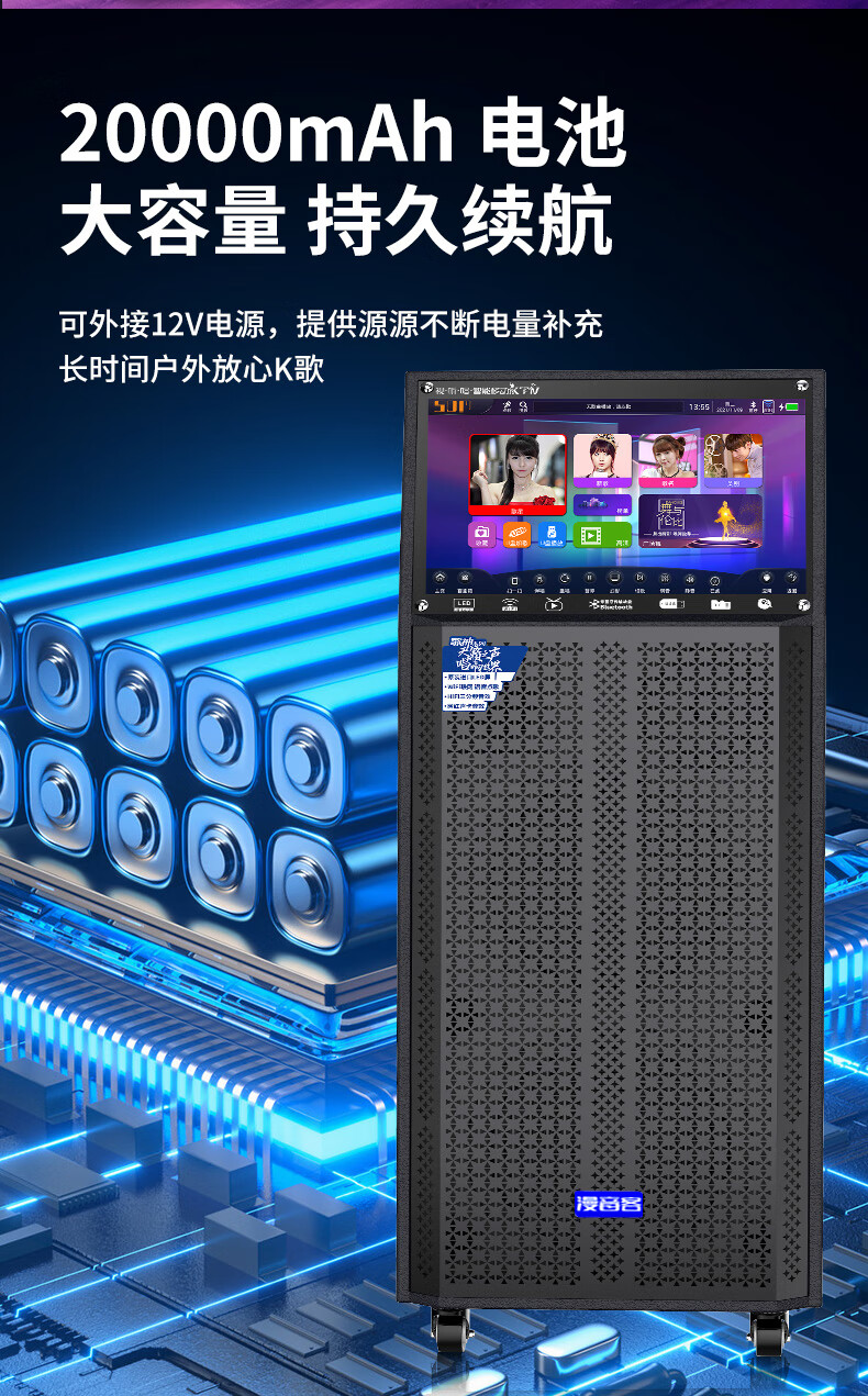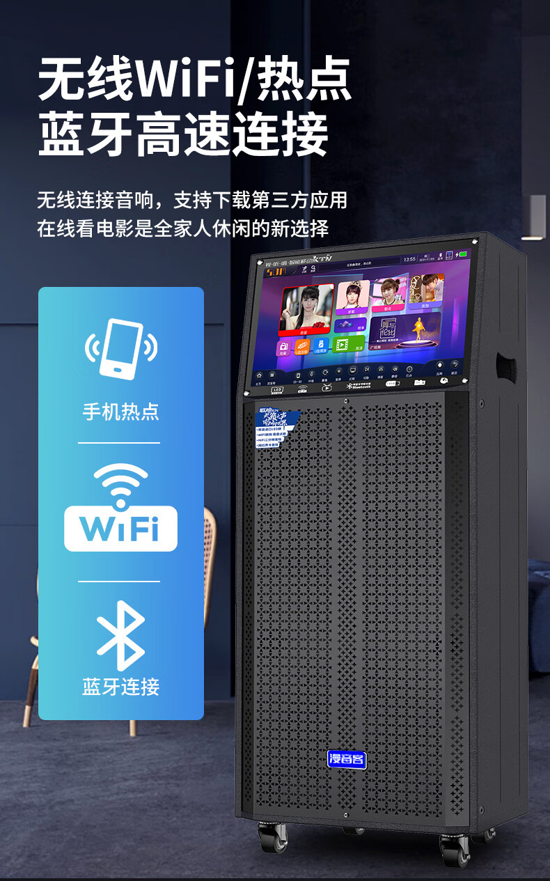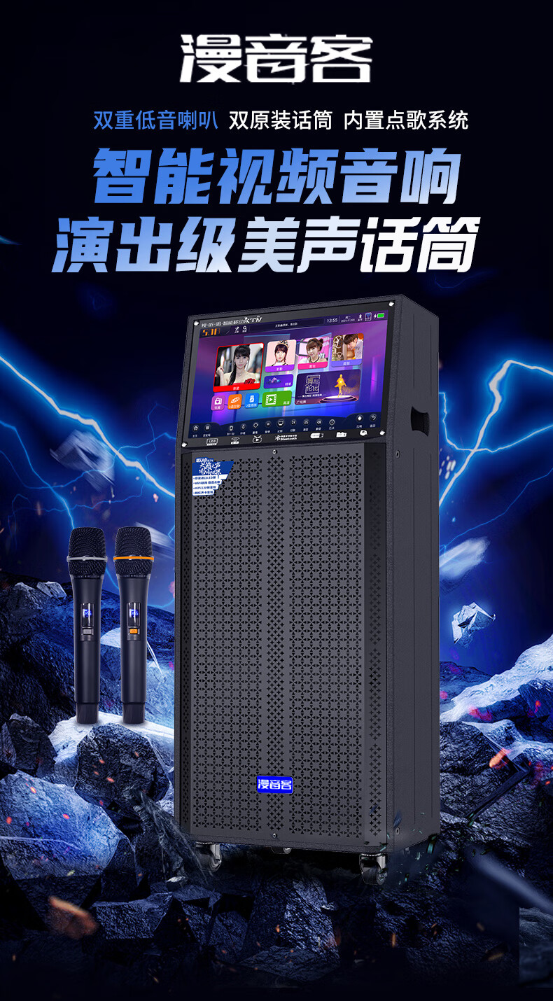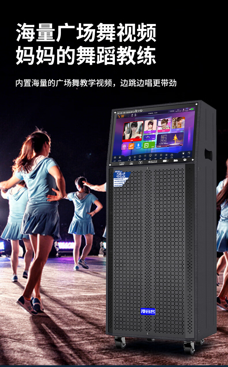 Manyinke Square Dance Outdoor Audio Bluetooth WIFI Trolley with Display Home KTV Integrated Voquet Machine Speaker 83 Models WIFI Smart 1000G Version + Dual Charging Microphones