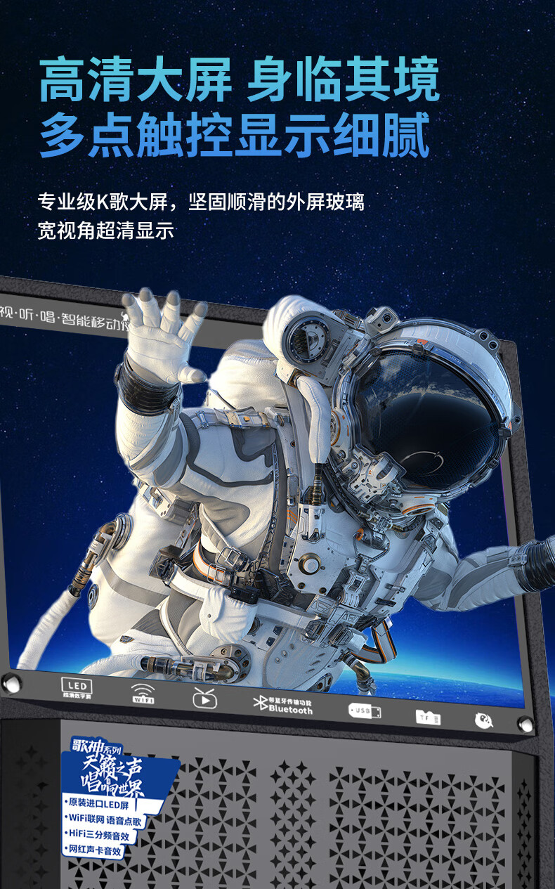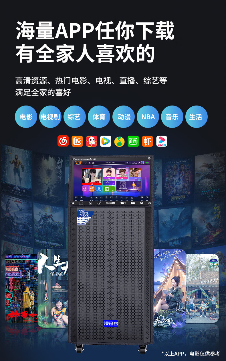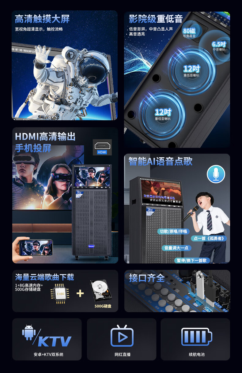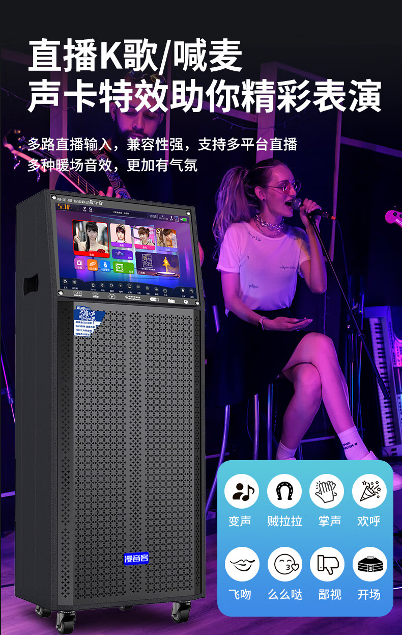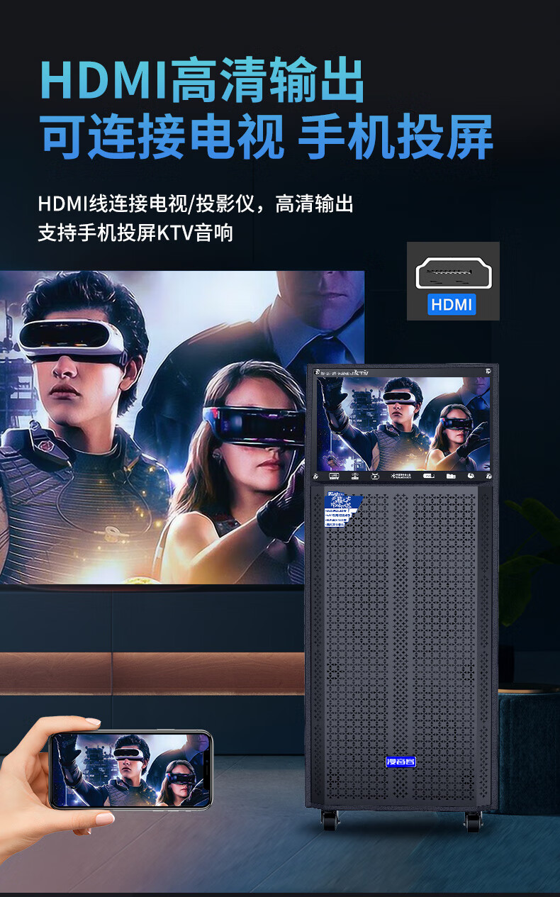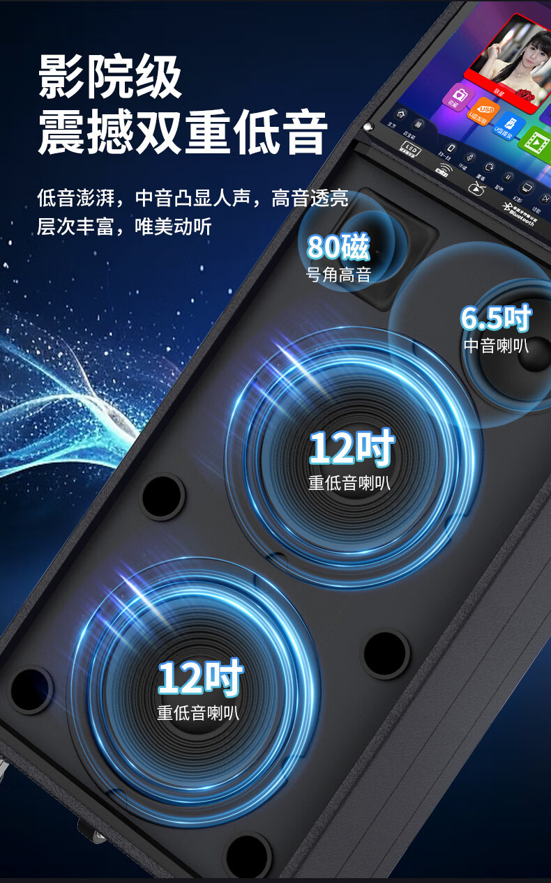 Manyinke Square Dance Outdoor Audio Bluetooth WIFI Trolley with Display Home KTV Integrated Voquet Machine Speaker 83 Models WIFI Smart 1000G Version + Dual Charging Microphones