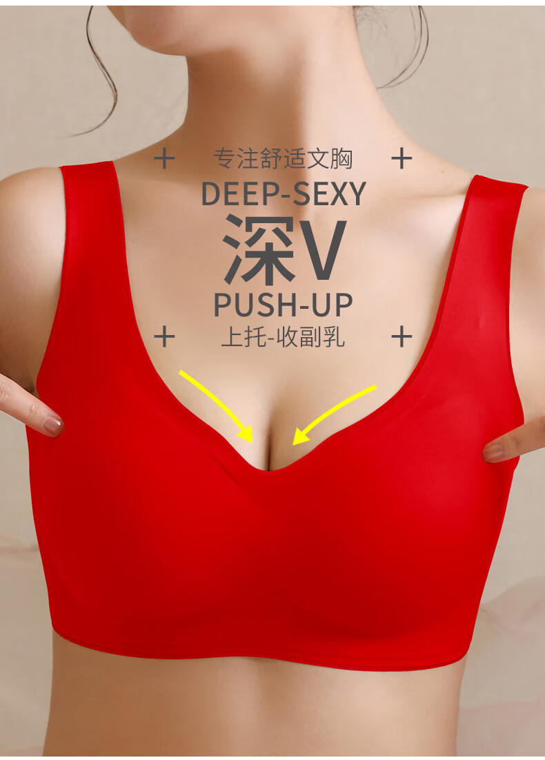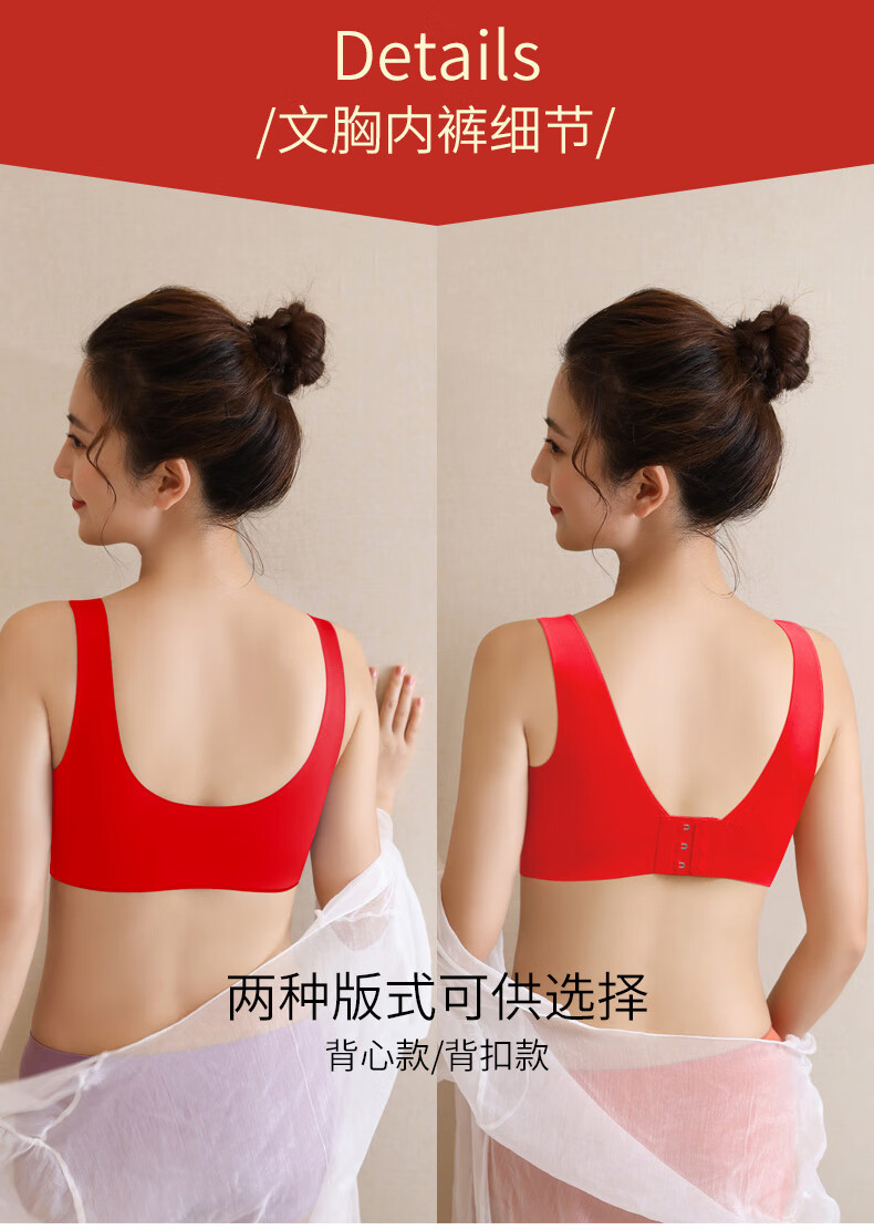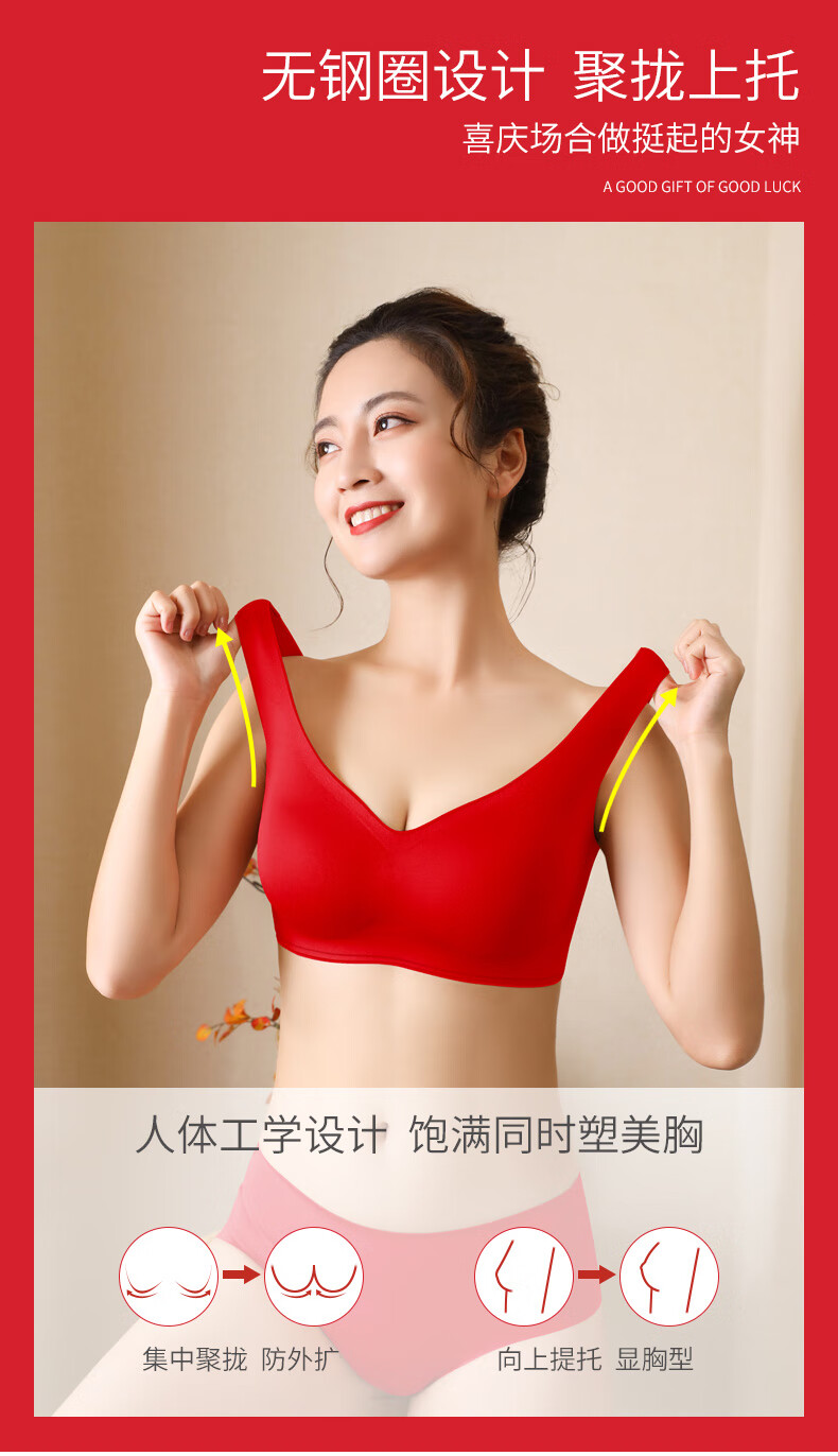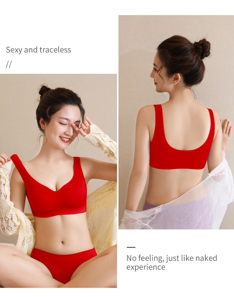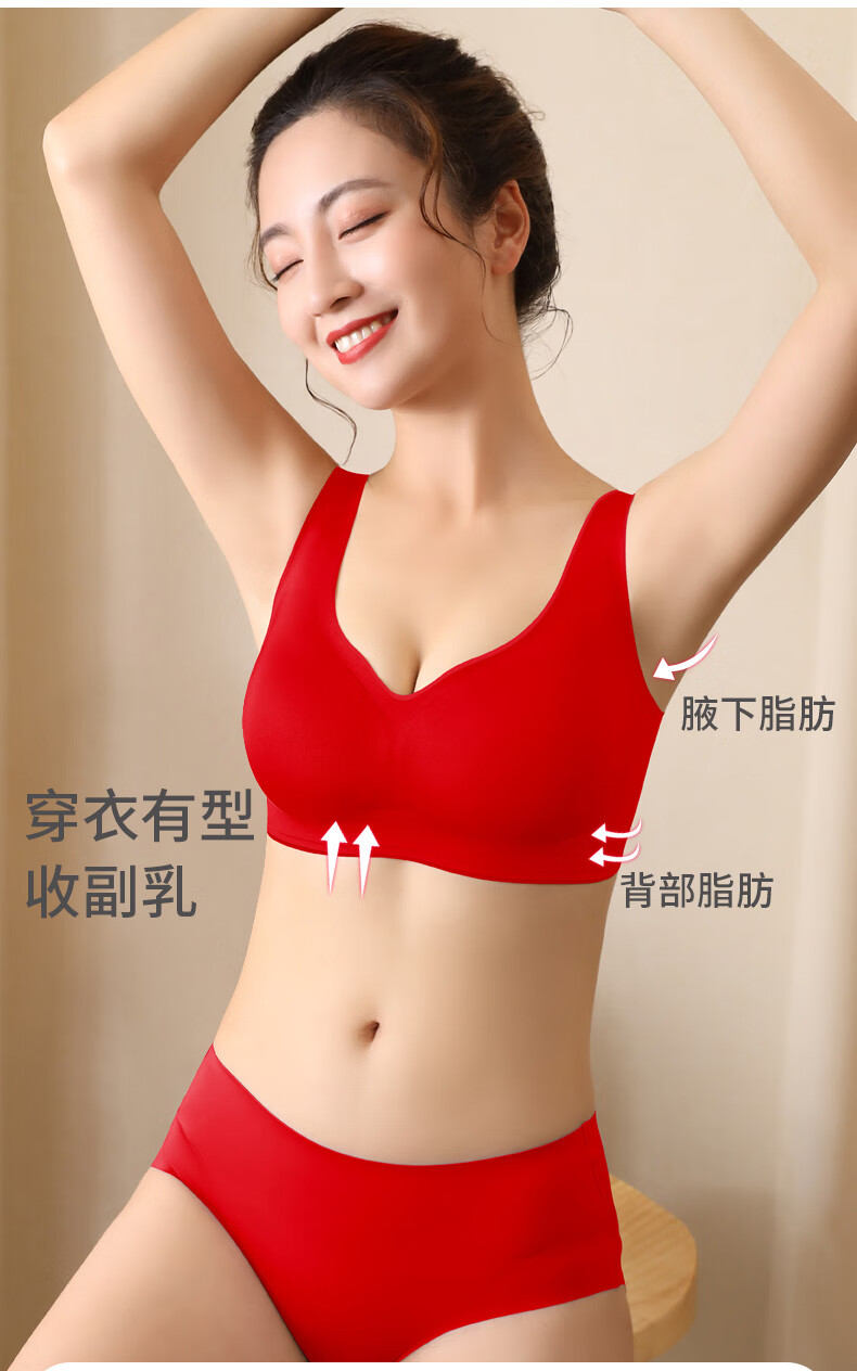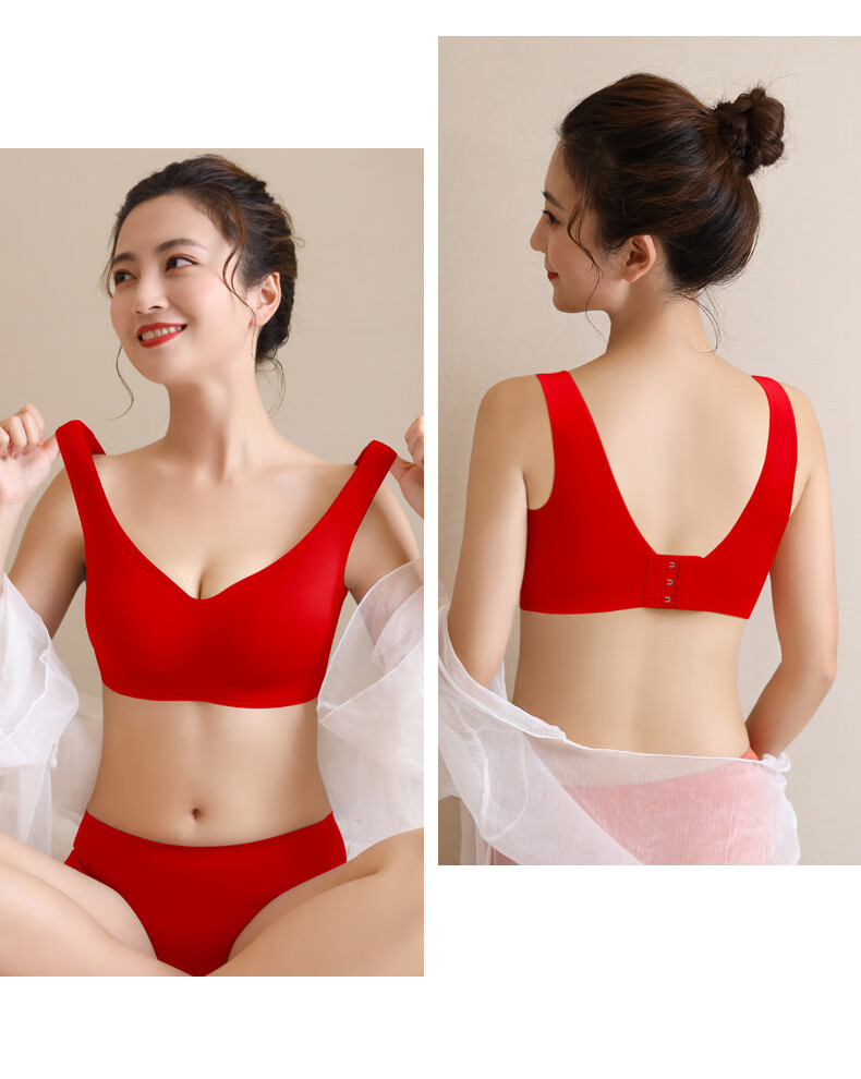 Aimu Autumn and Summer Vest Bra Set Red Ben Ming Nian Seamless Small Breast Gathering Side Breast Wireless Bra Women's Thin Style Unbreasted Style Red M 70ABC/75AB 80-105Jin Jin is equal to 0.5kg