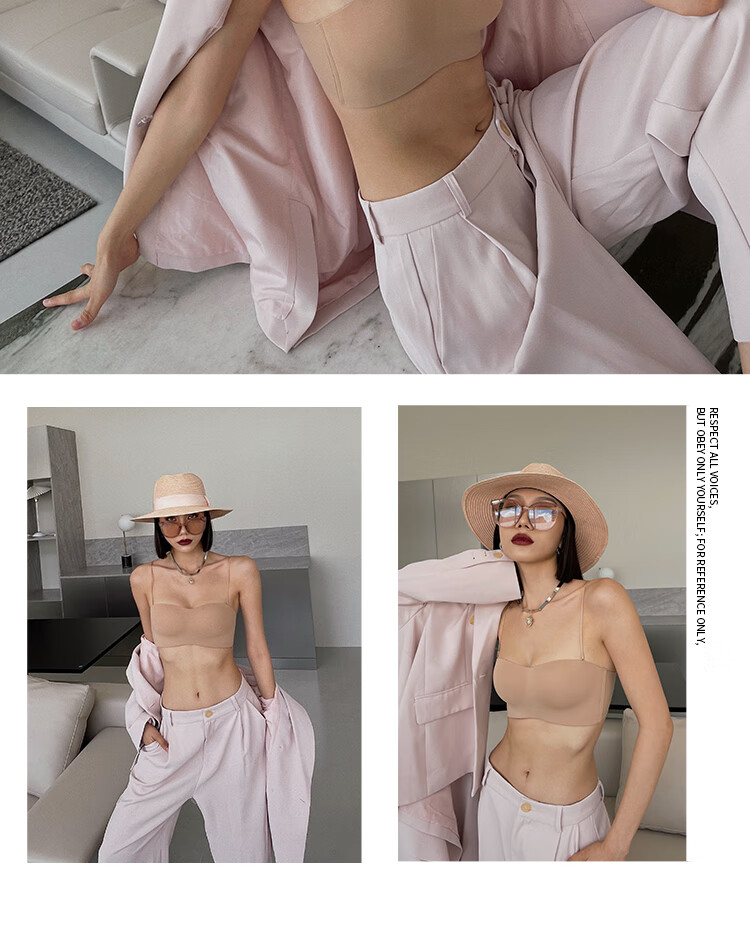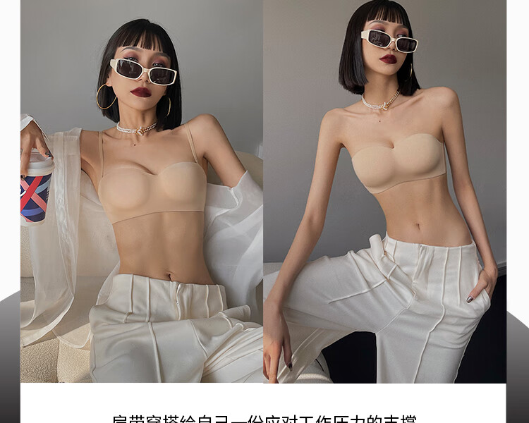Admiration autumn and summer strapless push-up bra for women with small breasts, non-slip bra straps, seamless invisible summer thin back bra set, skin color set 70C/32C