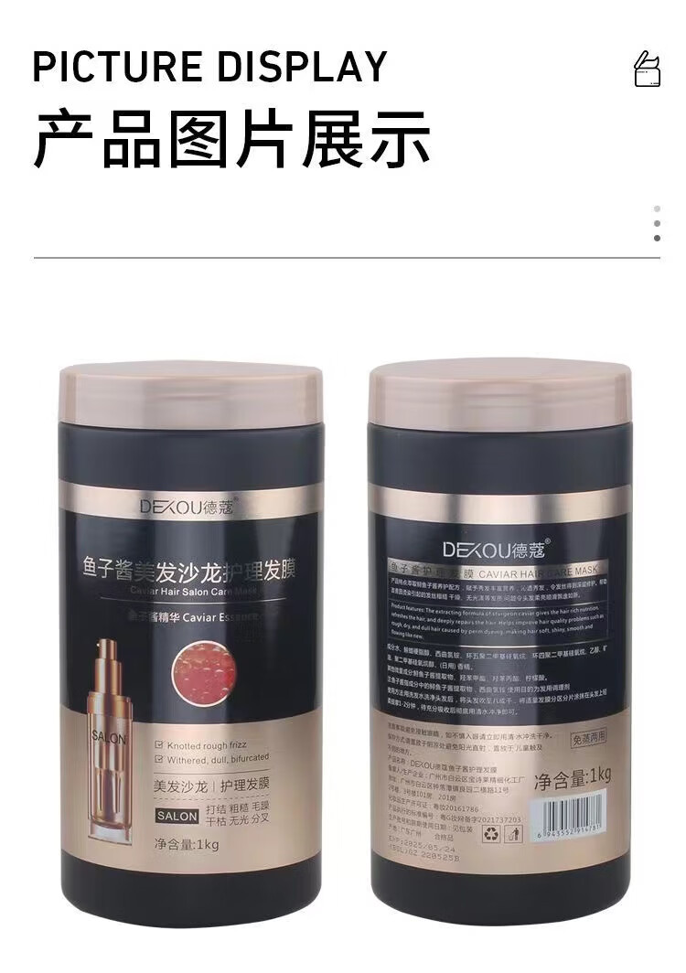 DEKOU Hair Mask Caviar Hair Mask DEKOU Conditioner Dry and Frizzy Repair Fragrance Smooth Steam-Free Baking Ointment 1000ml 1000mL Two Bottles