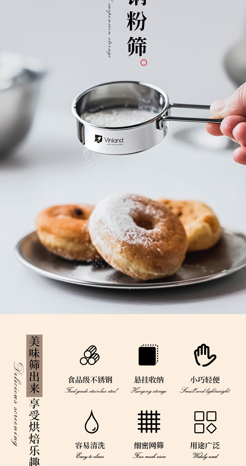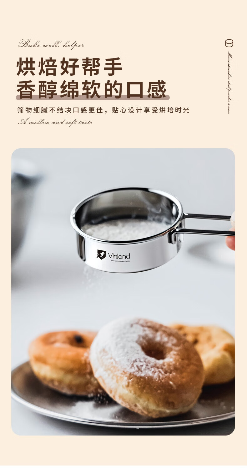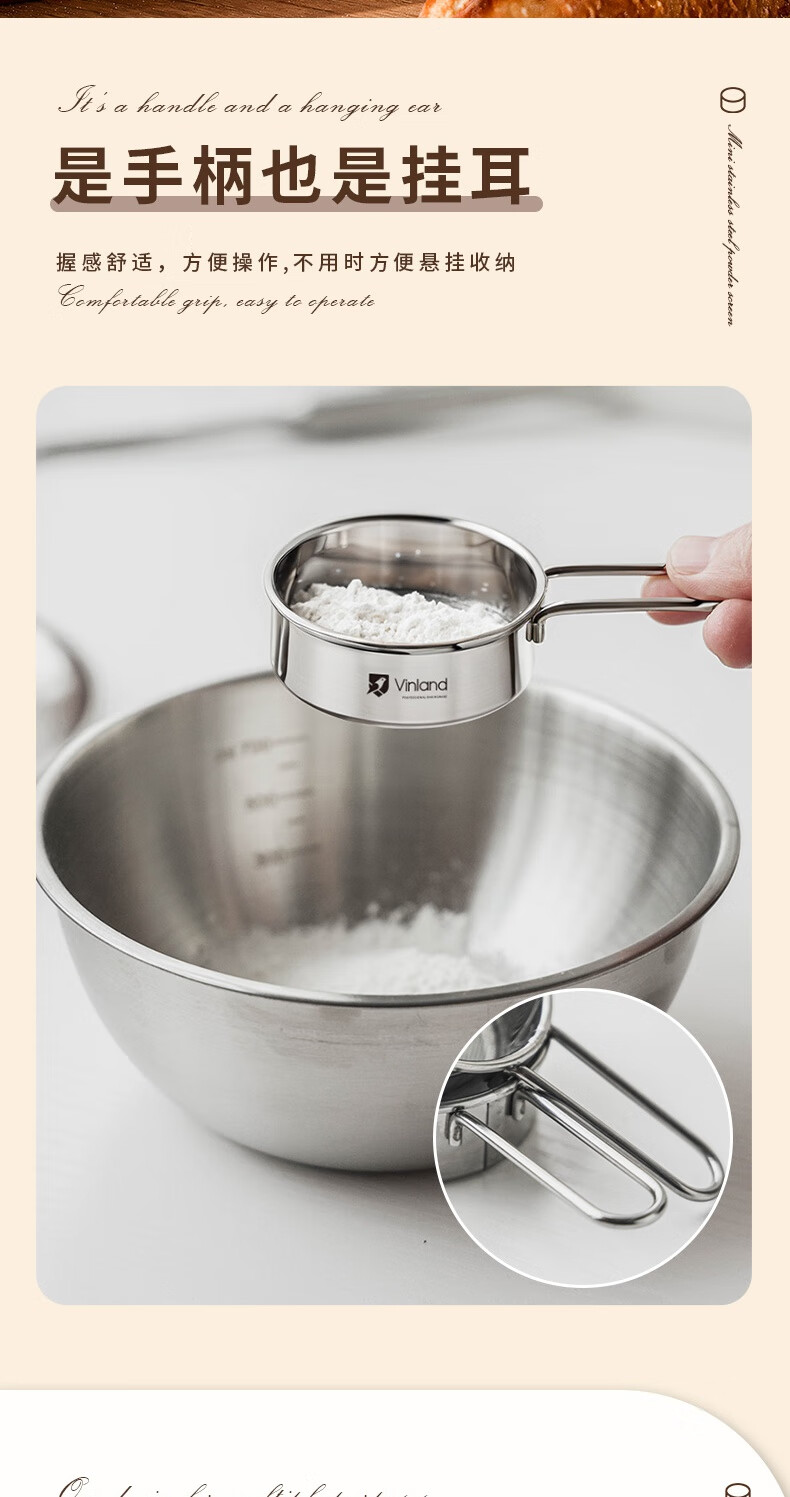 Shuyu Japanese 304 stainless steel powdered sugar sieve flour sieve sieve duster household filter cocoa powder baking 304 mini handheld flour sieve one pack
