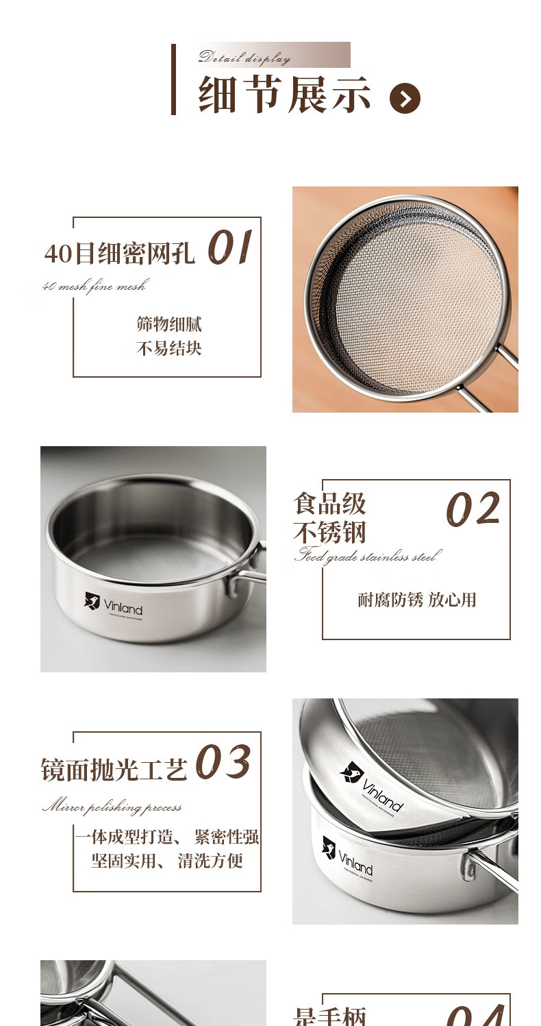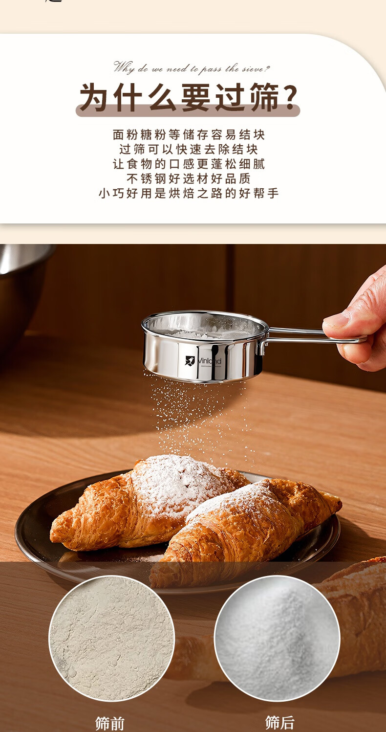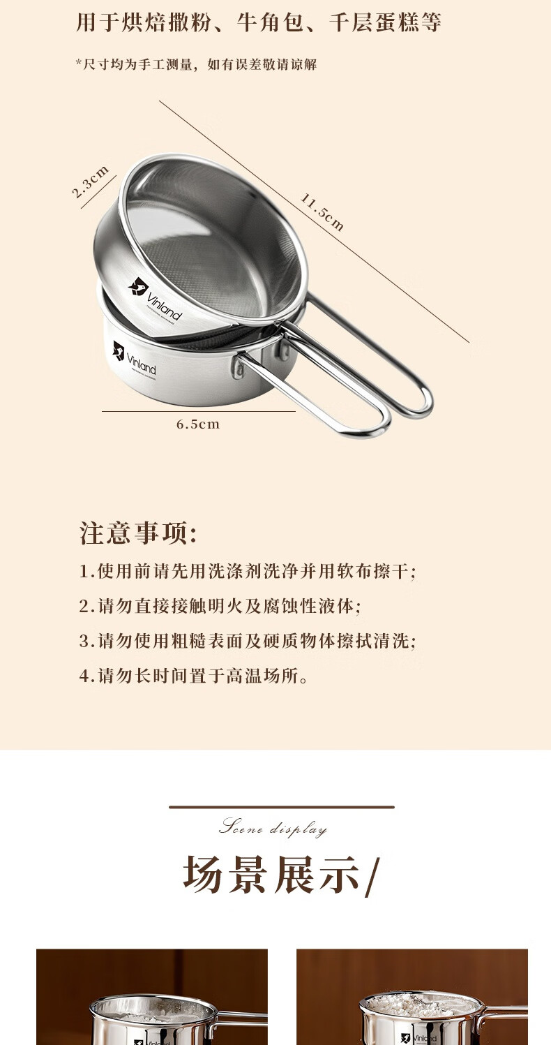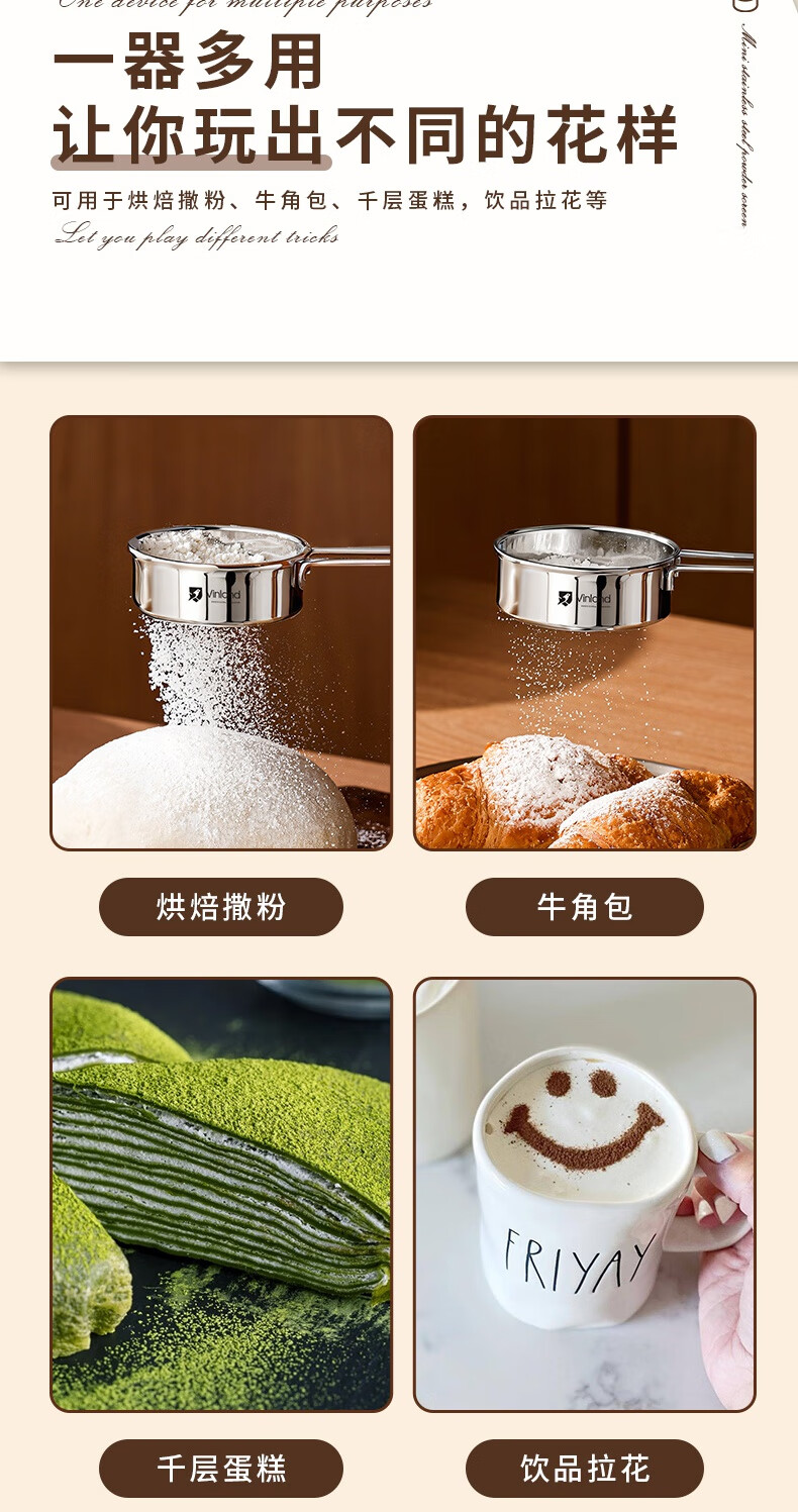 Shuyu Japanese 304 stainless steel powdered sugar sieve flour sieve sieve duster household filter cocoa powder baking 304 mini handheld flour sieve one pack