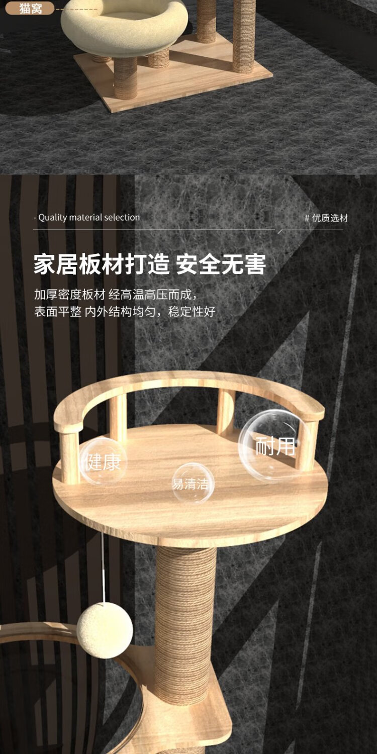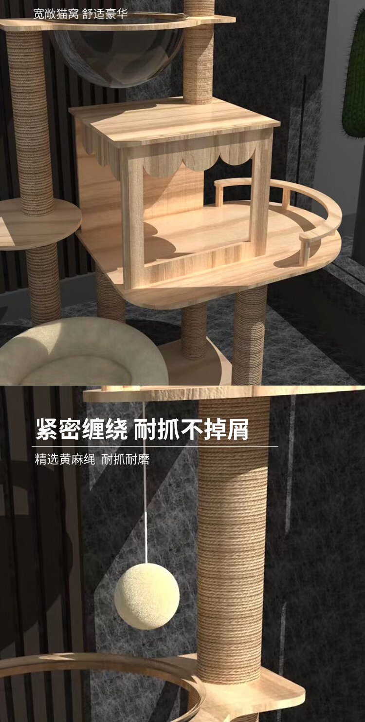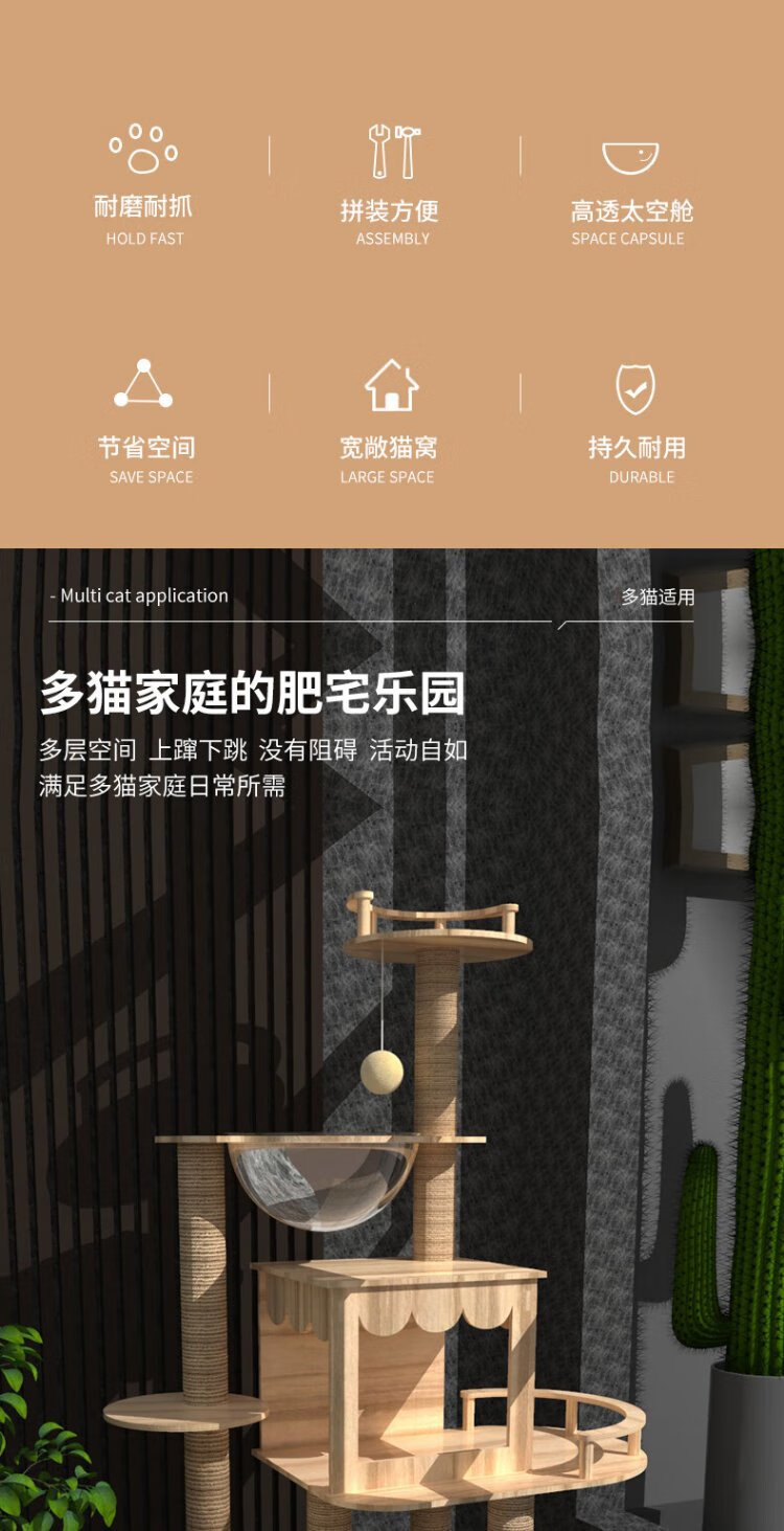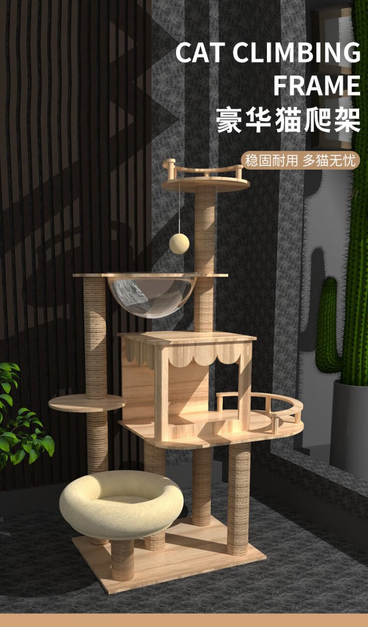 Tangmijiji luxury upgraded cat climbing frame, cat nest, cat tree, play and sleep all-in-one cat frame, cat scratching post, household space capsule that does not occupy an area, 147cm double cabin wooden house model with built-in cat scratching board