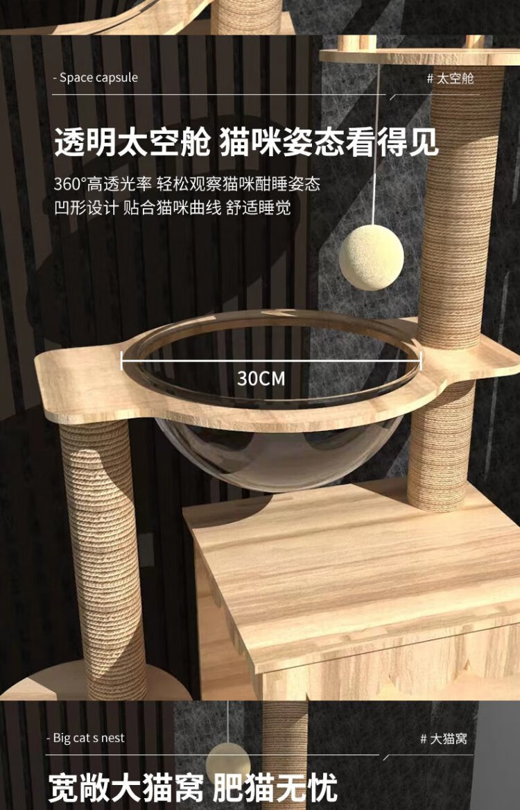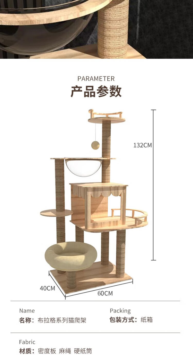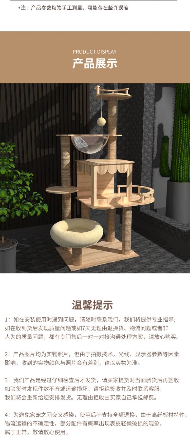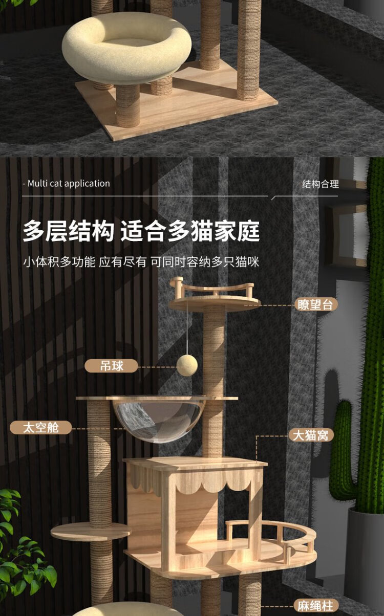 Tangmijiji luxury upgraded cat climbing frame, cat nest, cat tree, play and sleep all-in-one cat frame, cat scratching post, household space capsule that does not occupy an area, 147cm double cabin wooden house model with built-in cat scratching board