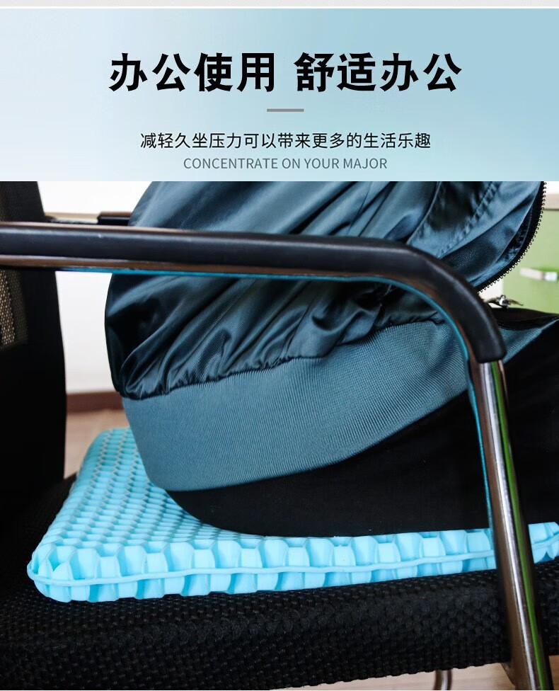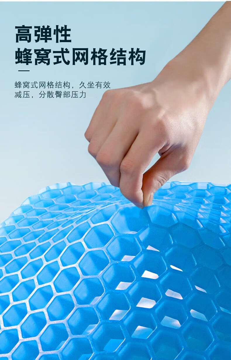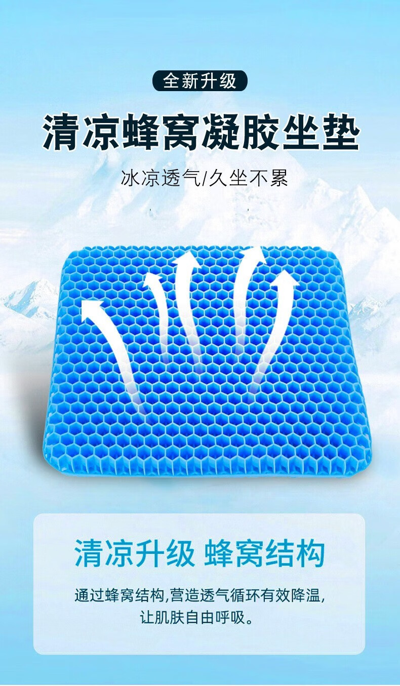 CTRLEND Honeycomb Gel Cushion Summer Breathable Ice Cushion Butt Cushion Cooling Cushion Office Sedentary Gel Car Seat Cushion Artifact Square Gel Cushion with Cloth Cover 33*38*3CM