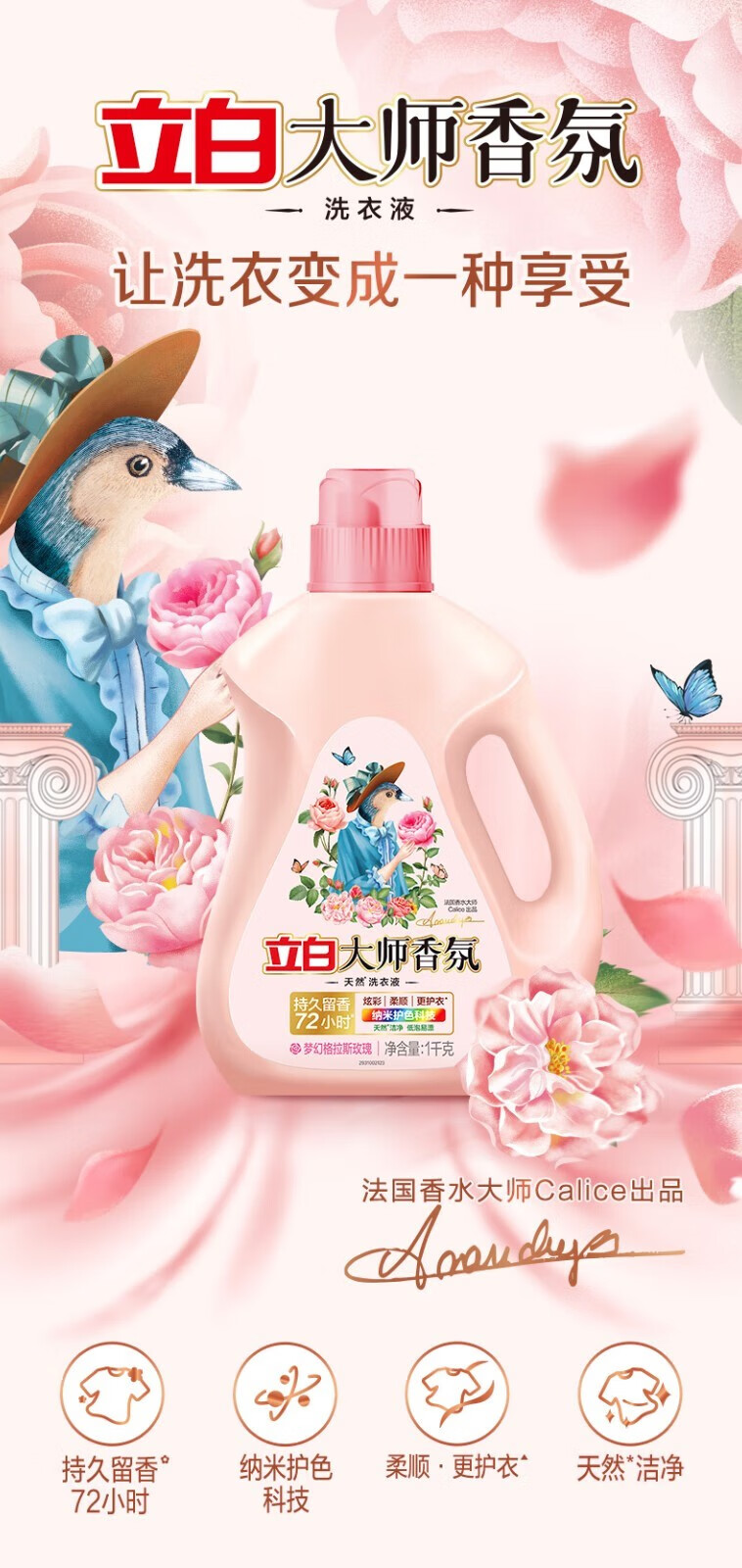 Liby Master Fragrance Perfume Laundry Detergent Long-lasting Fragrance Colorful Smooth Clothing Protector Rose Scent Low Foam Easy to Rinse Household Value Pack 5Jin Jin equals 0.5kg Master Fragrance Liquid