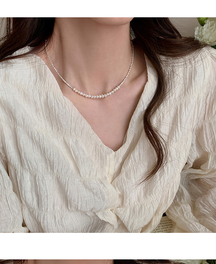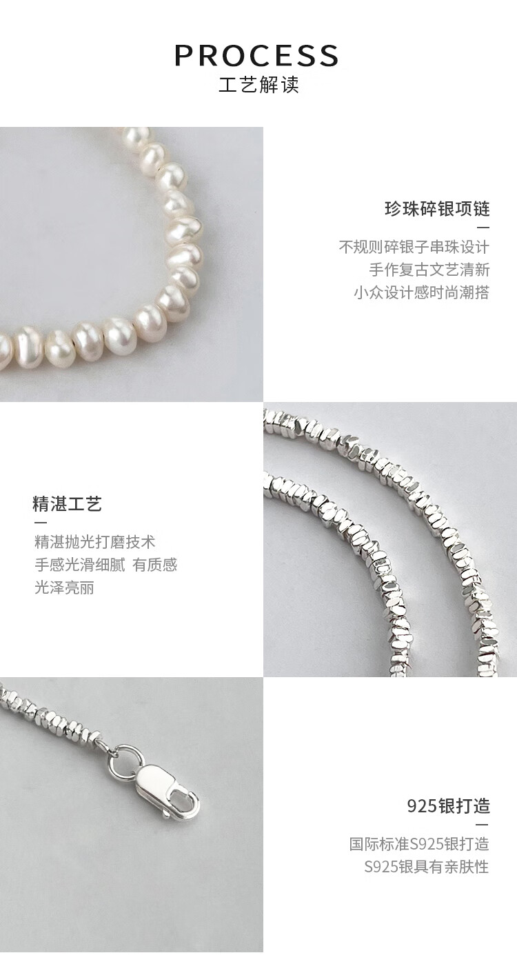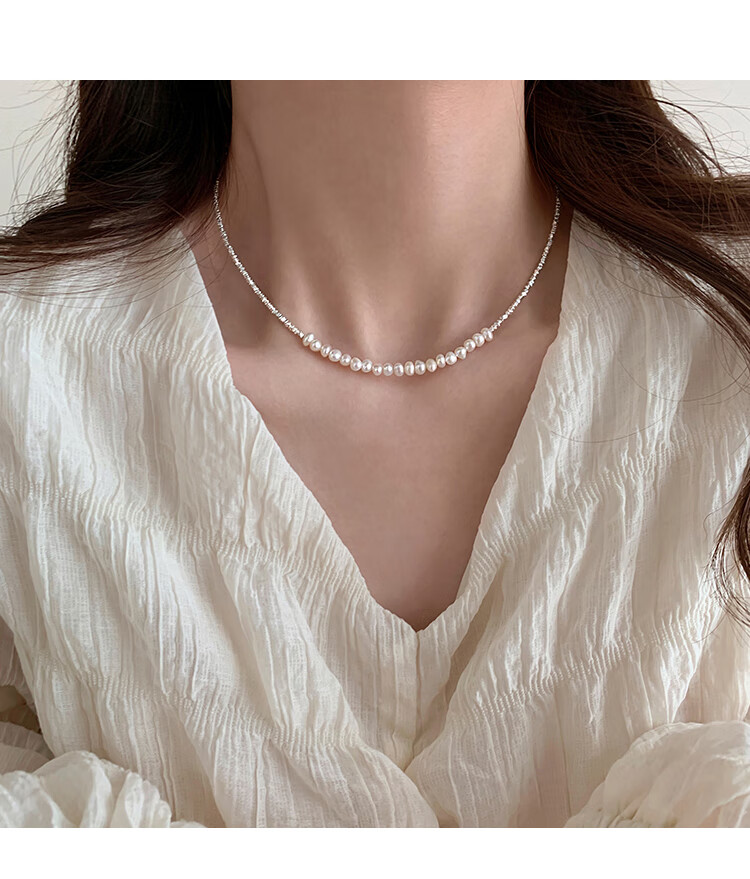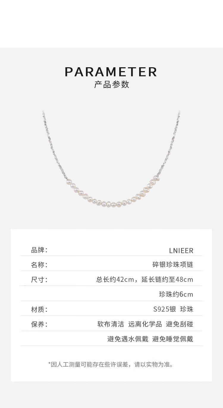 Lnieer broken silver several taels of pearl necklace women's 925 silver 2025 new clavicle chain niche high-end light luxury broken silver 925 silver broken silver multi-pearl necklace