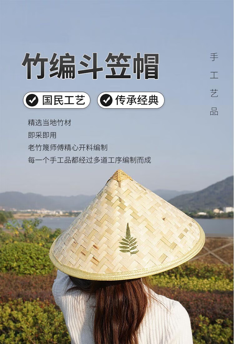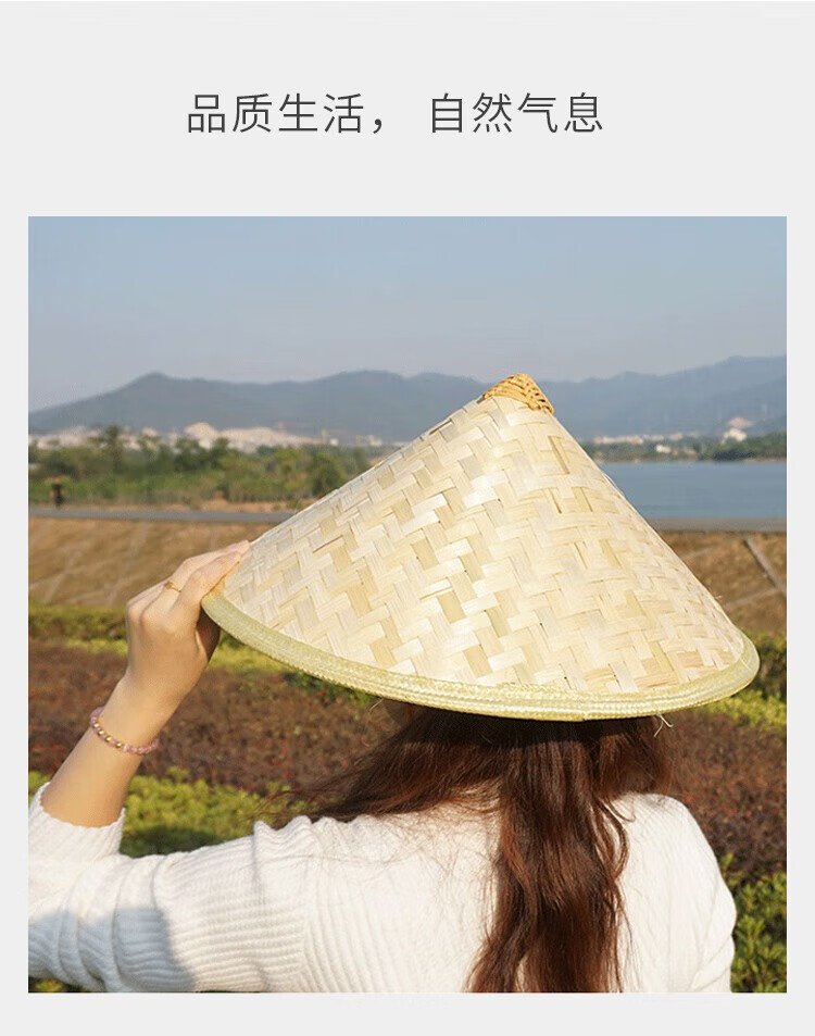CTRLEND bucket hat straw hat sun protection outdoor sun hat fishing hat handmade bamboo hat large brim straw hat men and women travel light plate style 42cm