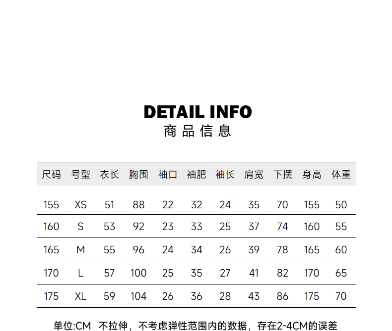 China (cm) 160-165/84-86 165-170 / 88-90 167-172 / 92-96 168-173 / 98-102 170-176 / 106-110