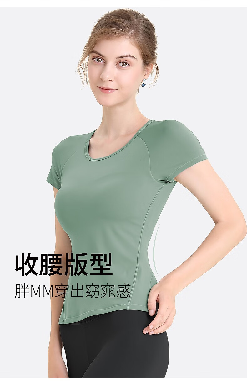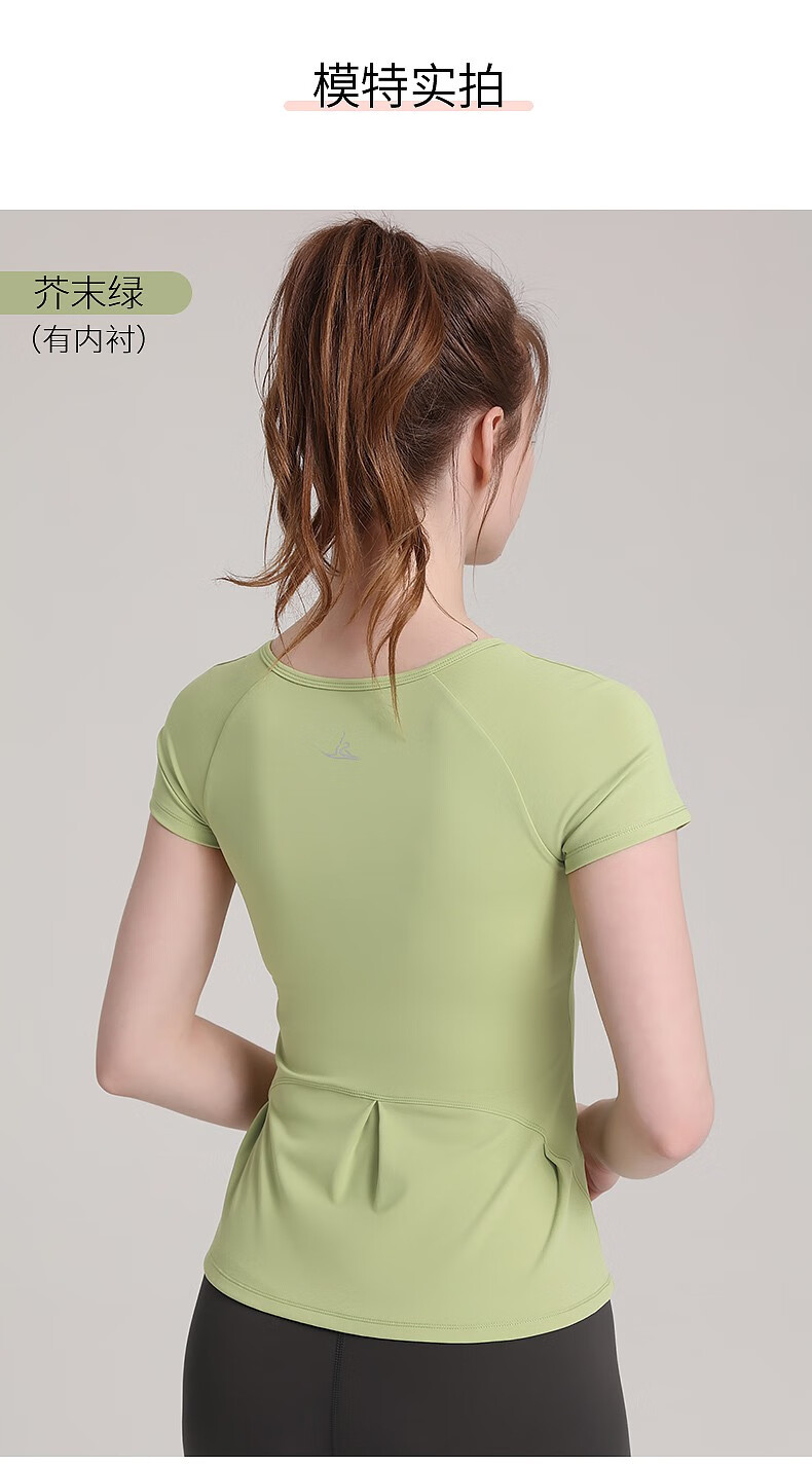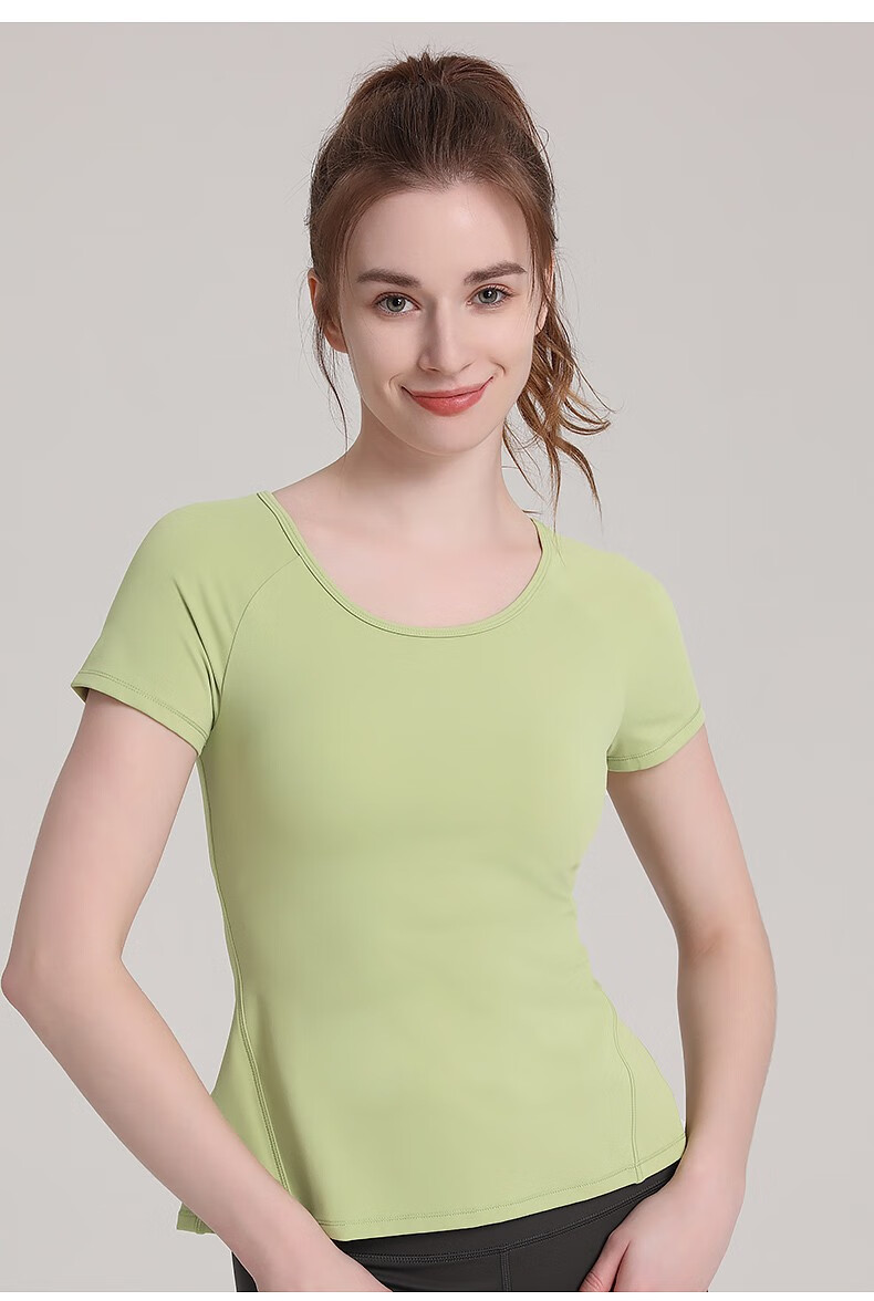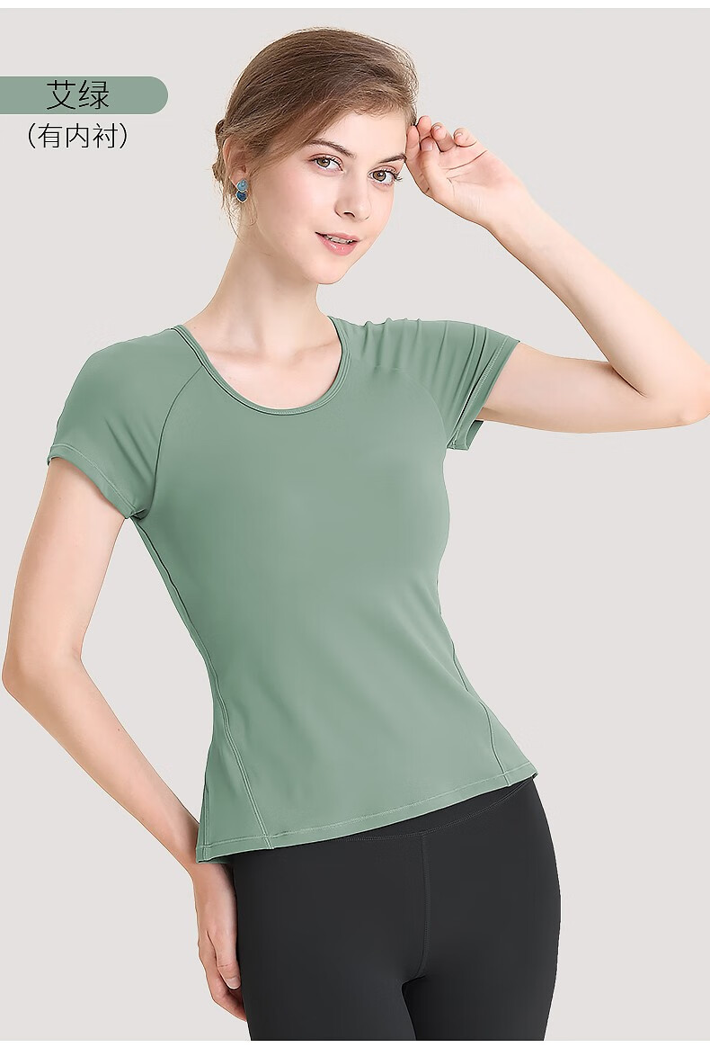 Van Beauty Yoga Clothes Top Women's Short Sleeves with Breast Pads Summer Slimming Covering Large Size Professional Pilates Sports Fitness Yoga Clothes Mustard Green/With Breast Pads M