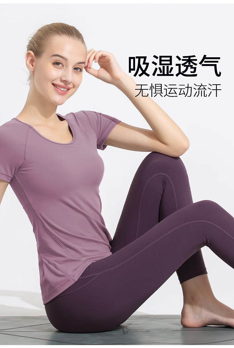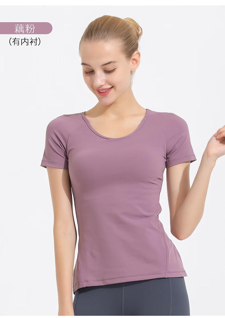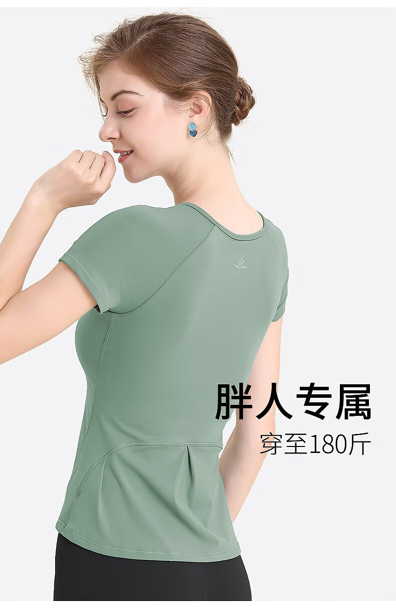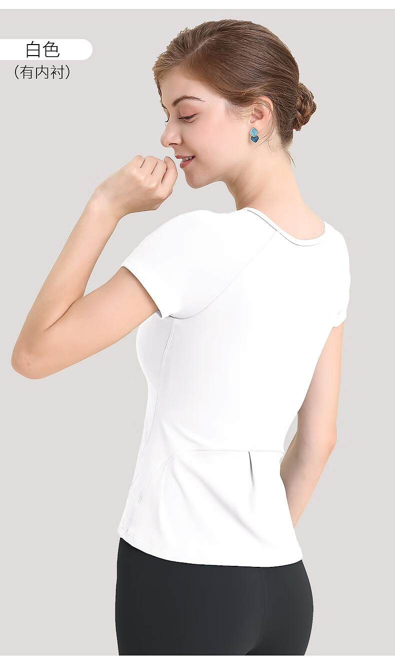 Van Beauty Yoga Clothes Top Women's Short Sleeves with Breast Pads Summer Slimming Covering Large Size Professional Pilates Sports Fitness Yoga Clothes Mustard Green/With Breast Pads M