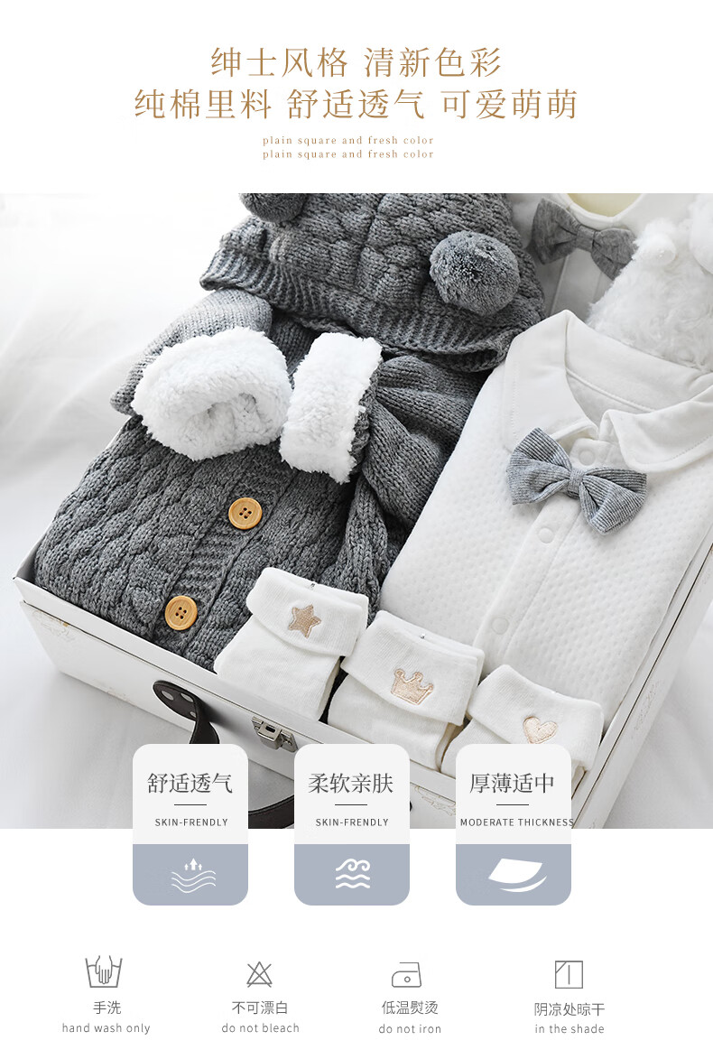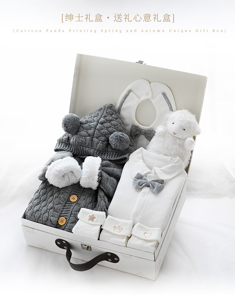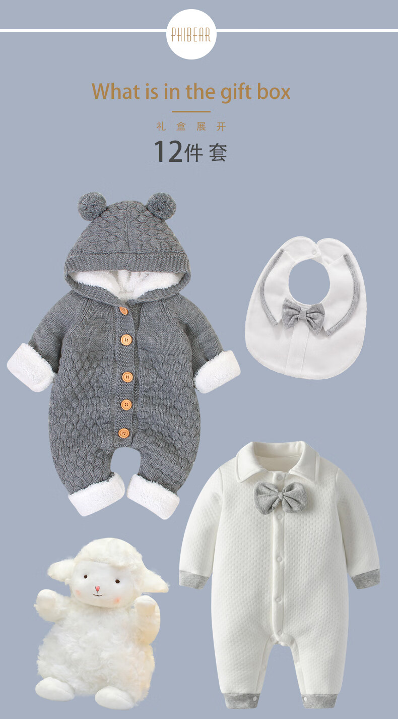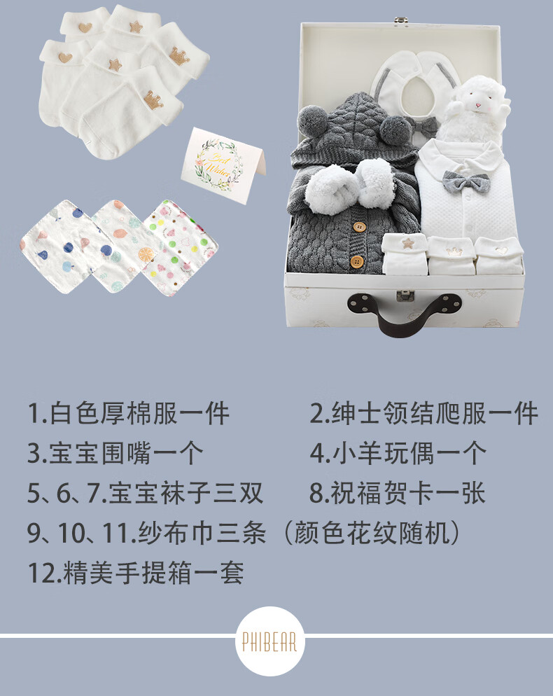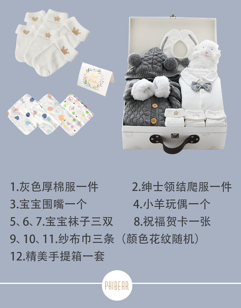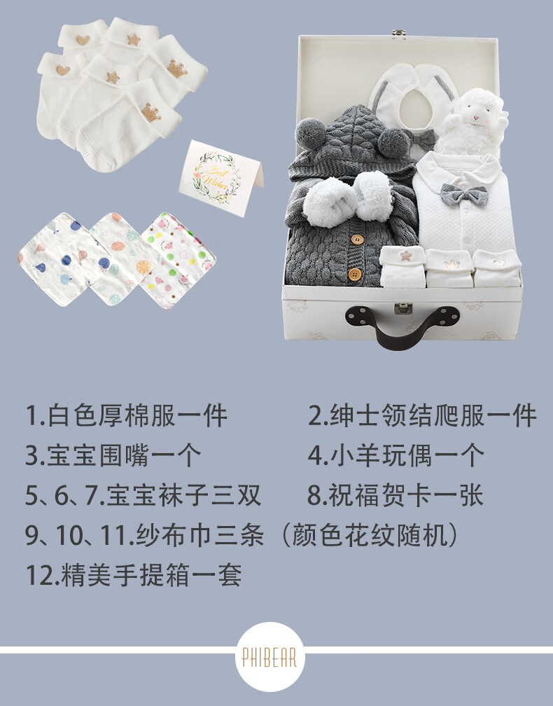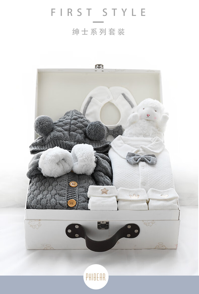 Phibear baby gift box supplies newborn boy clothes meeting gift box spring and summer thick full moon one-year-old gift collection autumn and winter little gentleman D type-gift box 59cm (0-3 months baby) newborn