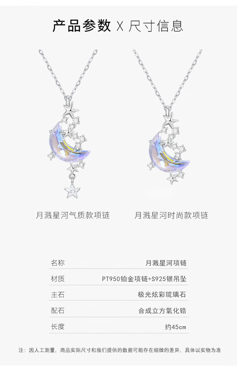 Farcoko brand pt950 platinum necklace for women, moon splashing galaxy platinum clavicle chain, birthday and Valentine's Day gift for girlfriend, platinum necklace - moon splashing galaxy pendant - temperament style - exquisite high-end gift box