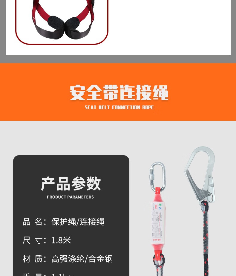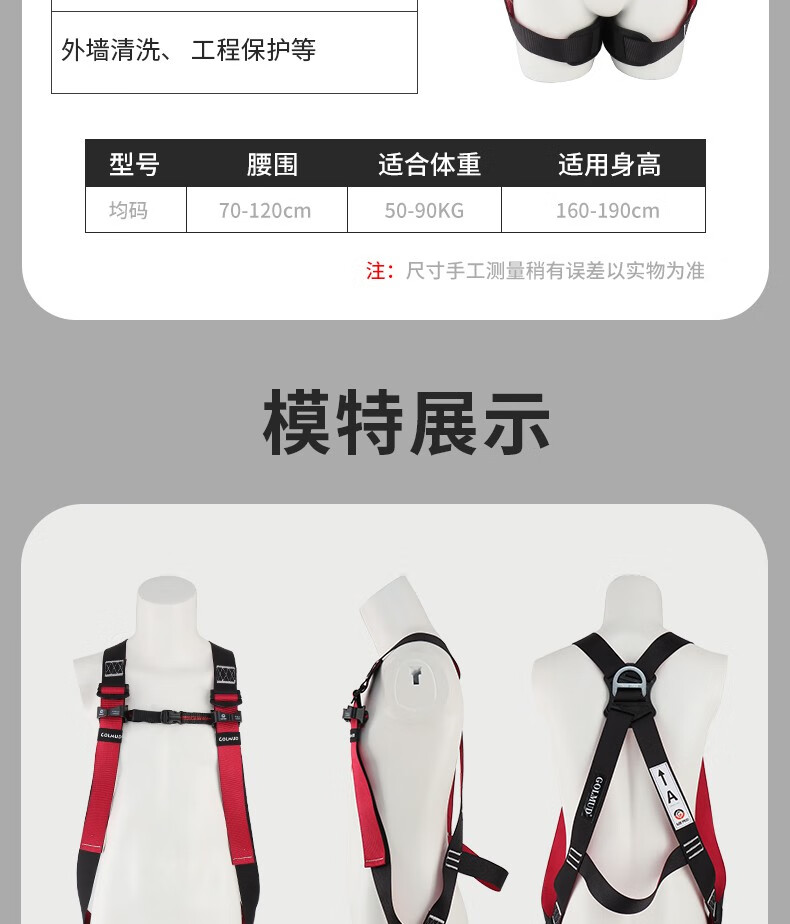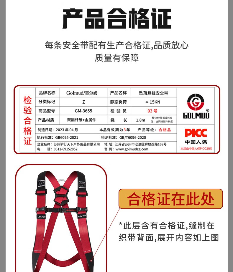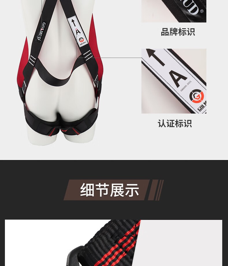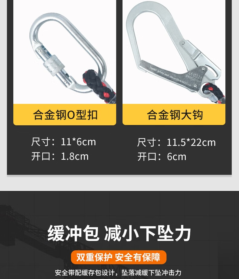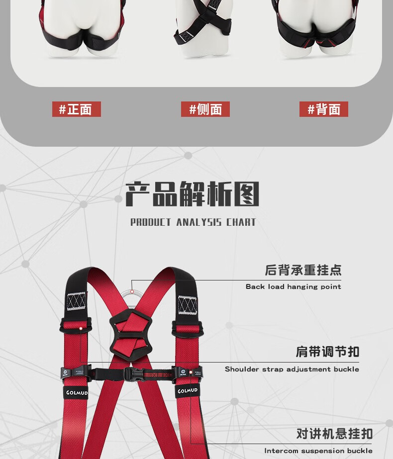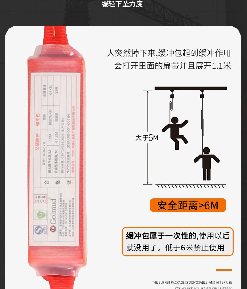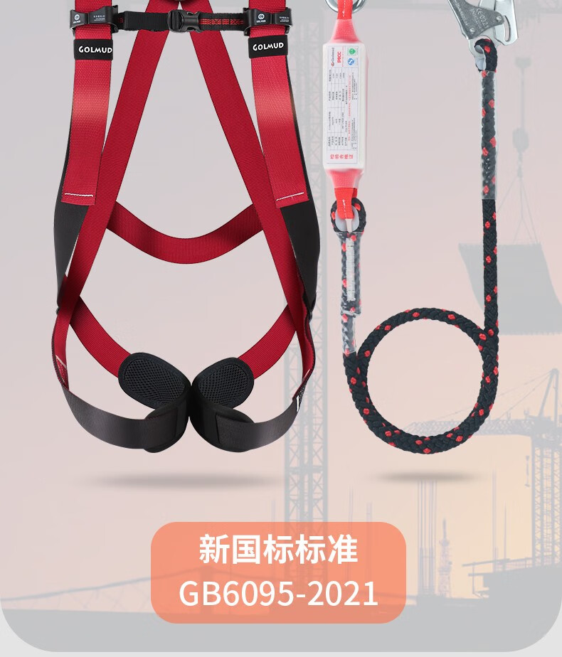 Golmud waist guard five-point safety belt full-body protection safety belt outdoor high-altitude work safety rope GM3655 double small hook + buffer bag 1.8 meters