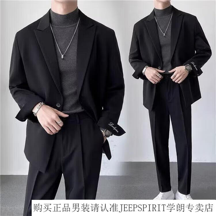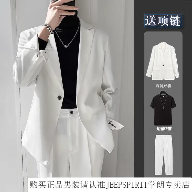 JEEP SPIRIT summer light mature style casual suit men's suit trendy yuppie handsome small suit embroidered street style jacket XZ14 white XL