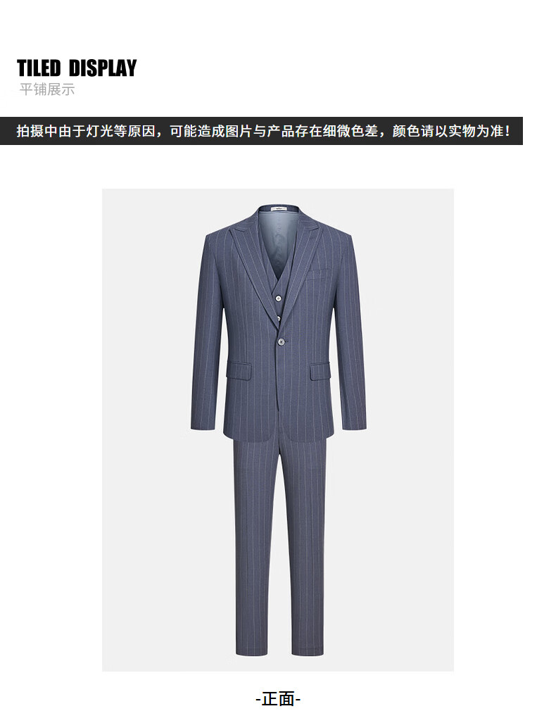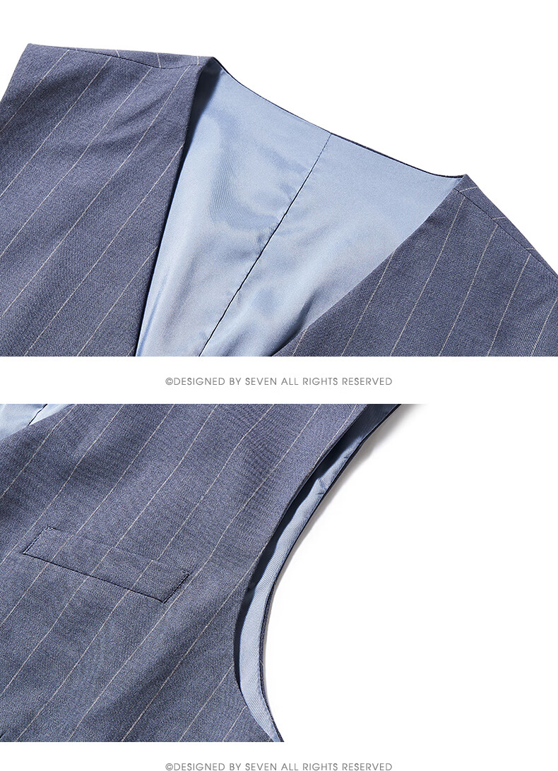 Qipai Striped Suit Men's Business Casual Fashion Slim Suit Vest Three-piece Set Shopping Mall Same Style Light Gray B48