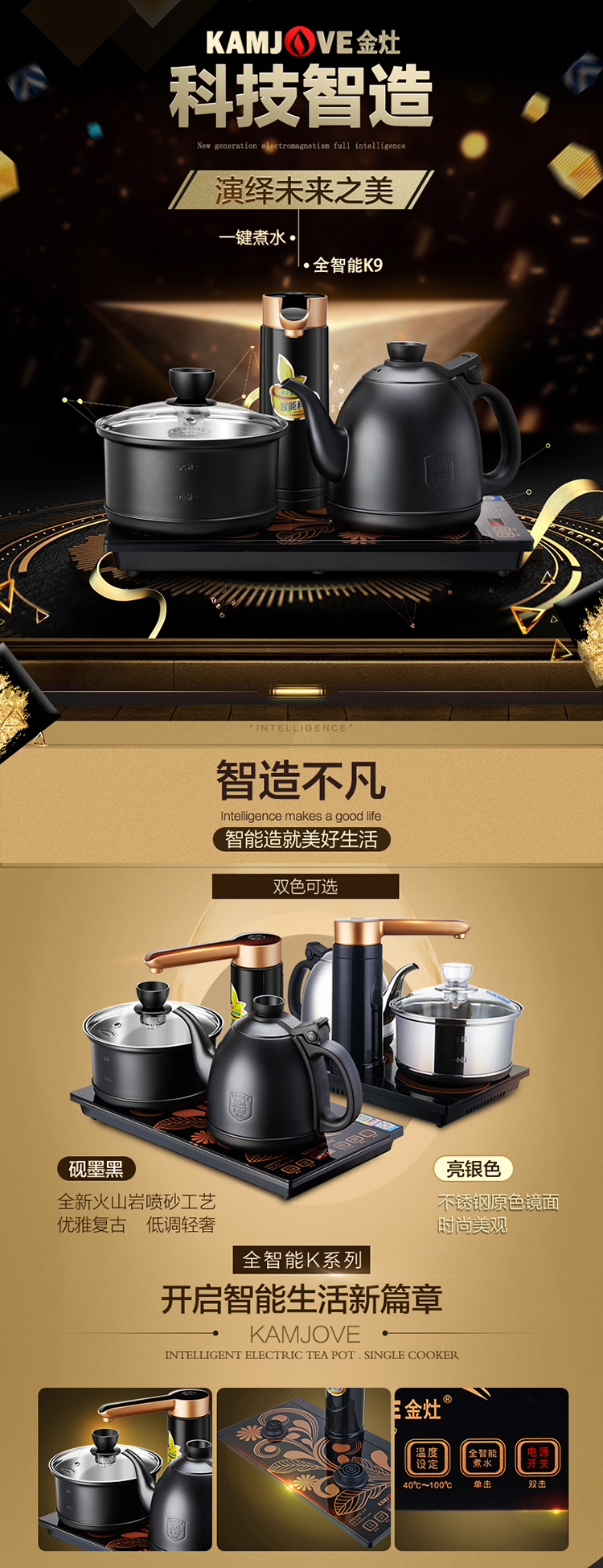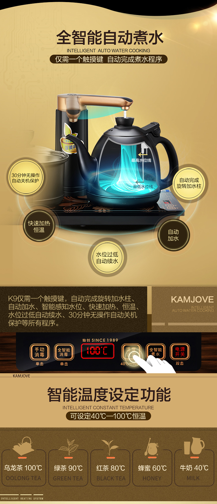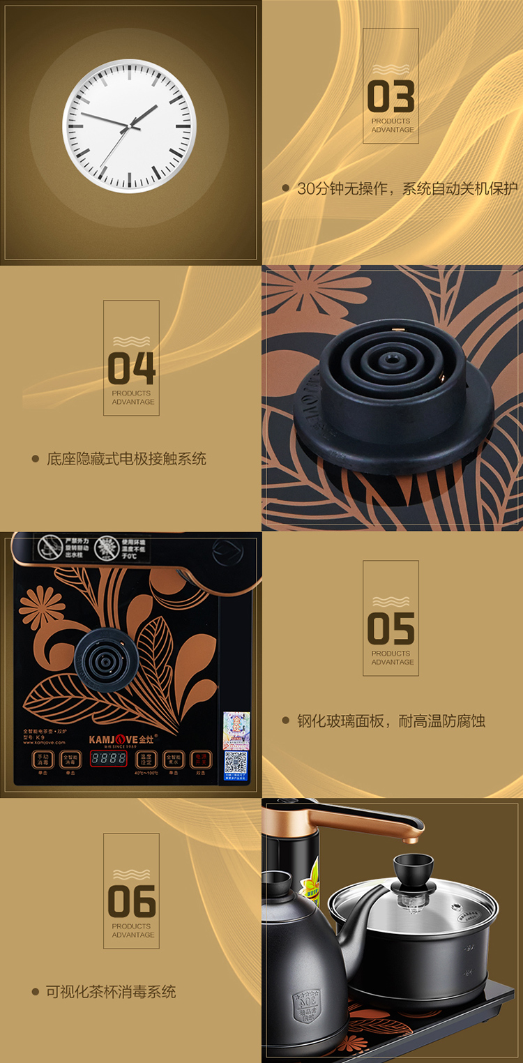 KAMJOVE K9 fully automatic water supply electric kettle tea set set teapot and water boiler all-in-one fully intelligent tea table kettle bright silver 0.9L