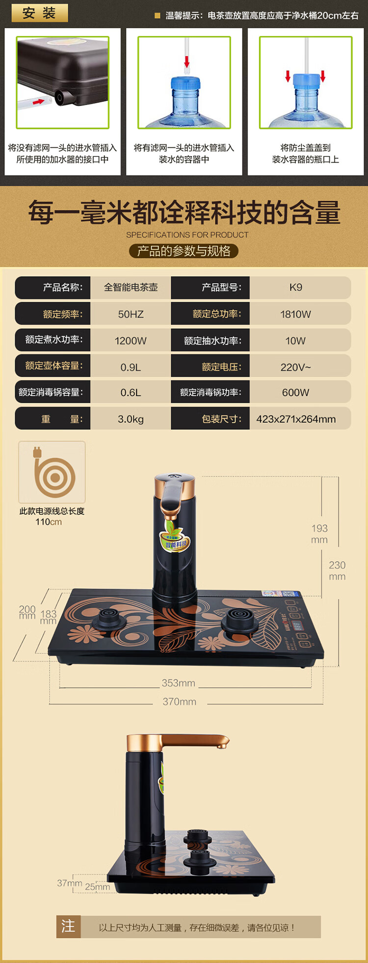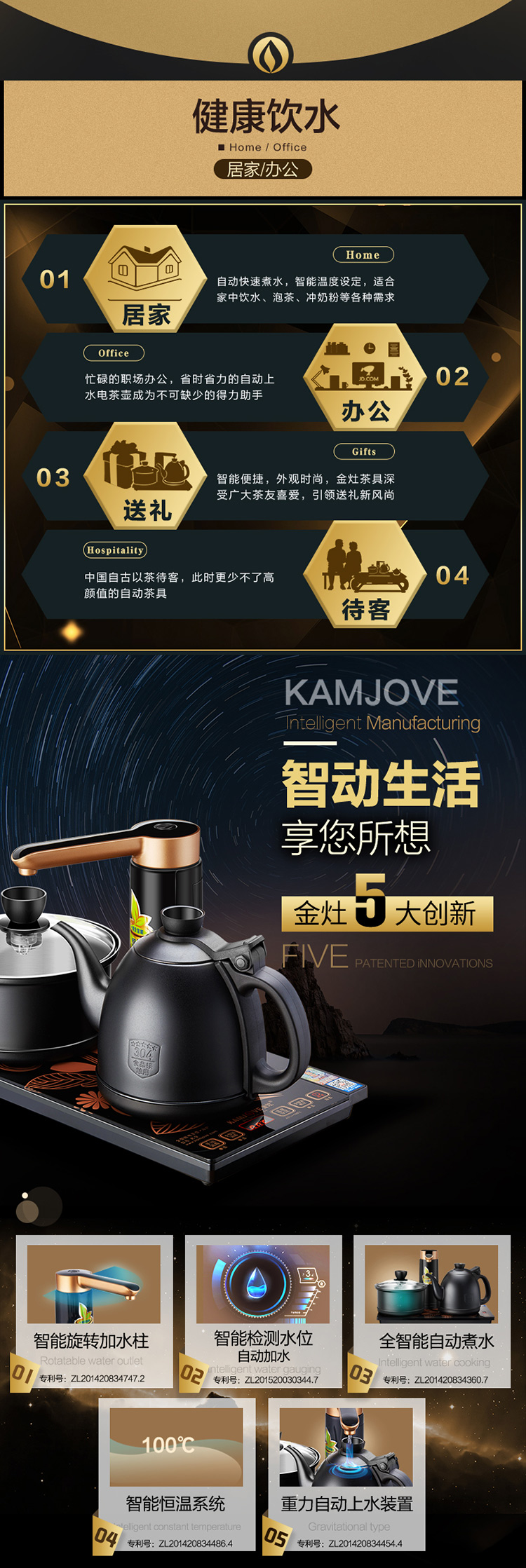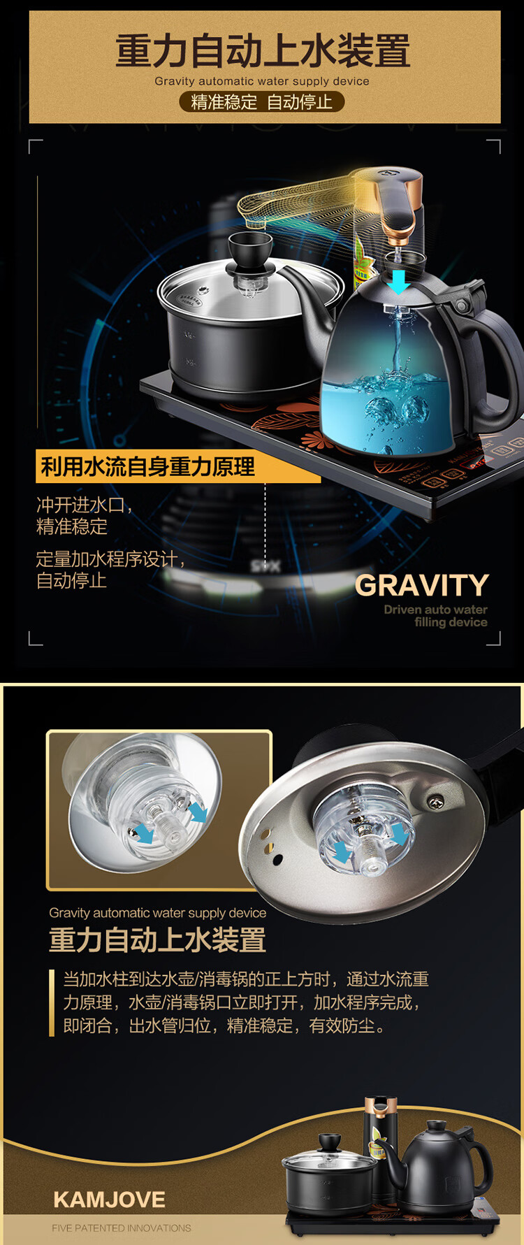 KAMJOVE K9 fully automatic water supply electric kettle tea set set teapot and water boiler all-in-one fully intelligent tea table kettle bright silver 0.9L