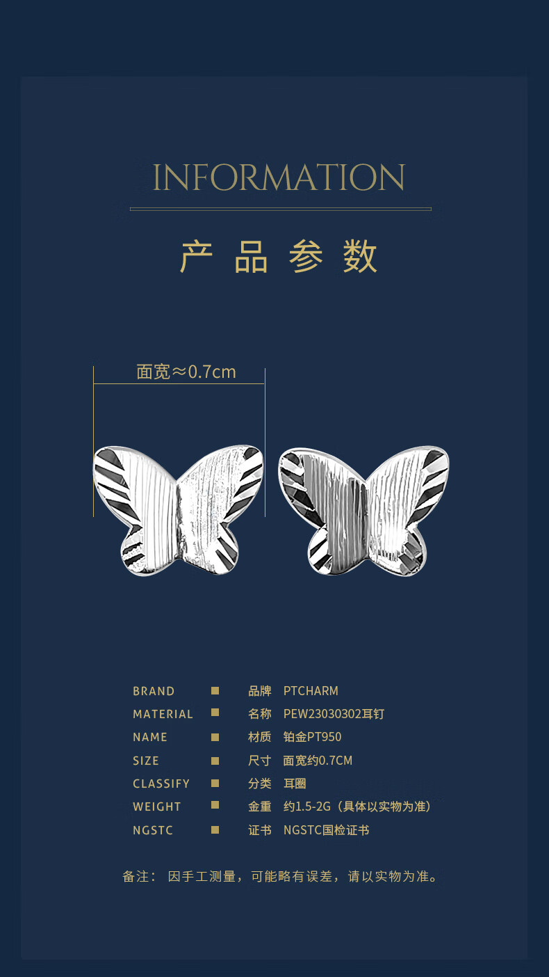 Pt.Charm new product PT950 platinum earrings for women platinum butterfly earrings simple versatile earrings as a birthday gift for your girlfriend. If it is not in stock, it can be customized. Take 1.8g as an example