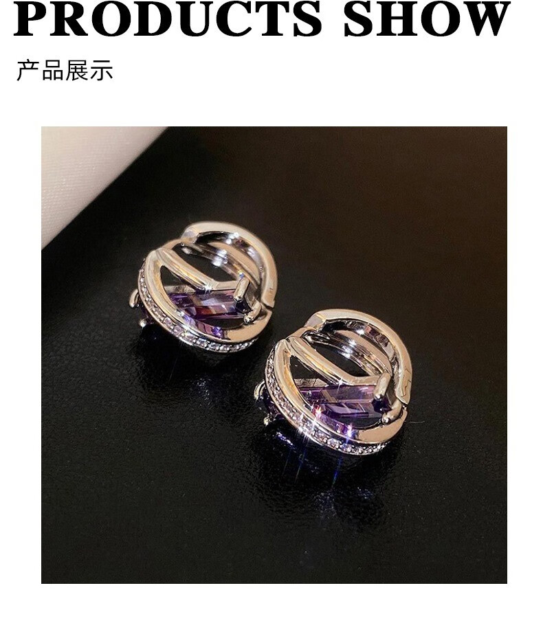 Idel Purple French Earrings and Earrings 2025 New Niche Design High-End Exquisite Earrings Girl Birthday Gift Purple Zirconium Earrings Silver E2795