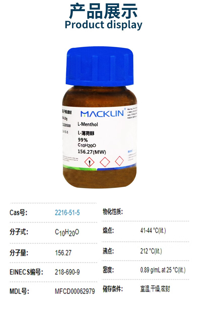Chemical reagent DL-menthol D-menthol L-menthol 99% Scientific research experiment consumables DL-menthol 99% 5ml