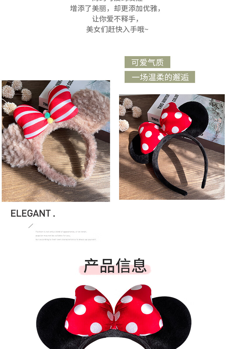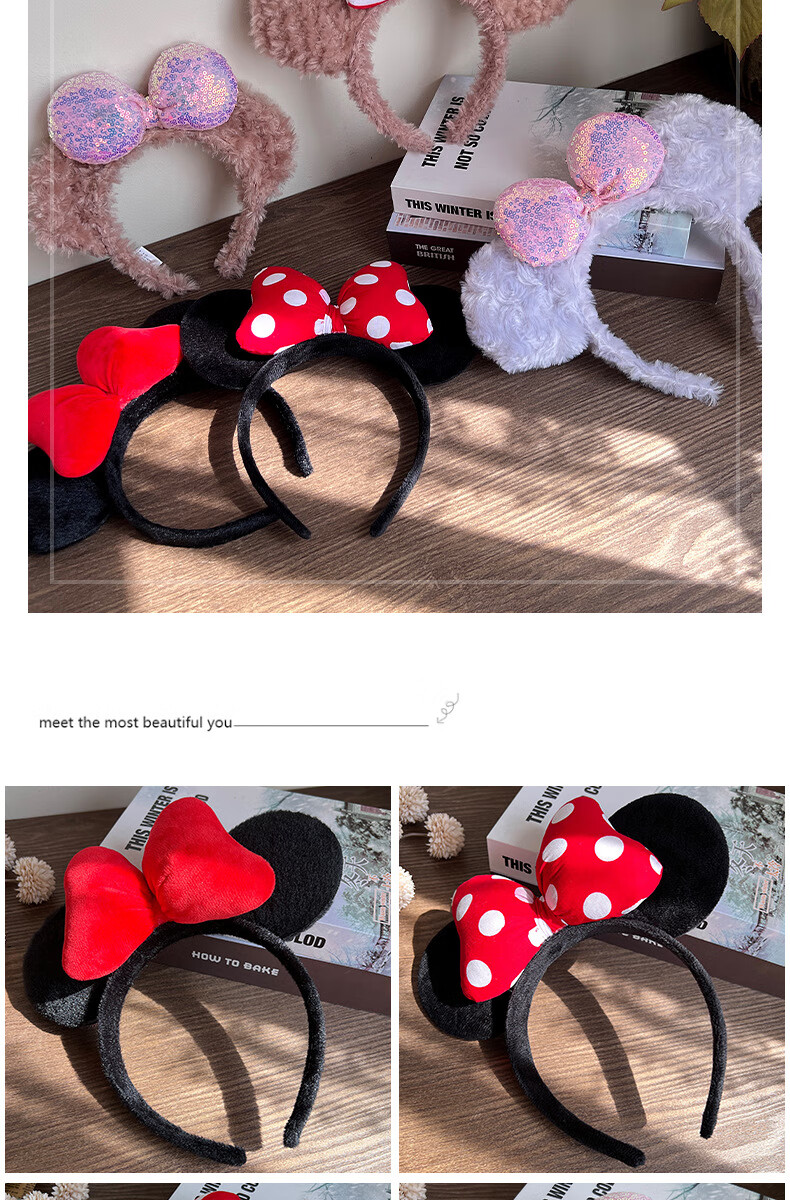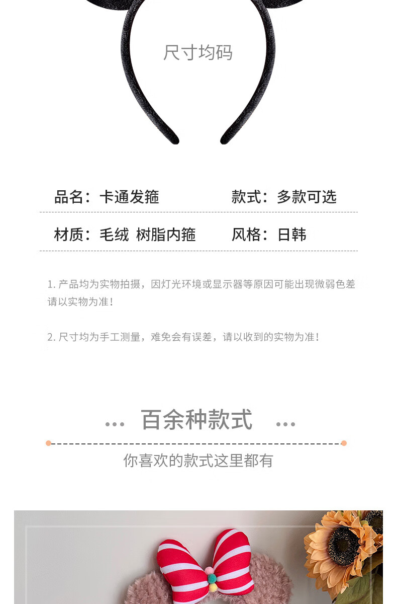 MOYAN Internet celebrity amusement park cartoon Mickey headband holiday party funny non-slip face wash plush headband hair accessory Mickey (Bandian) A28-106
