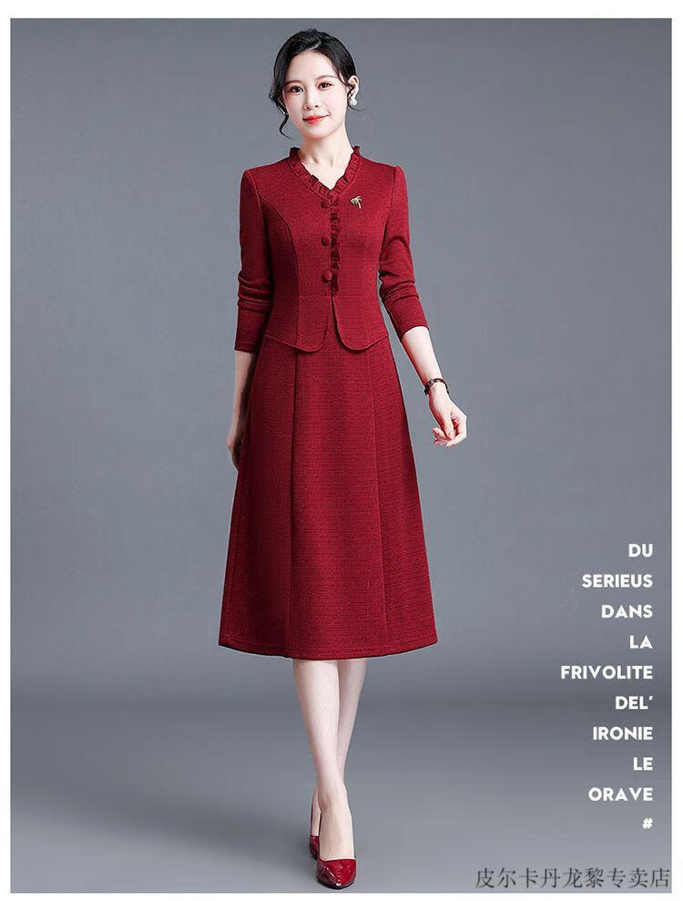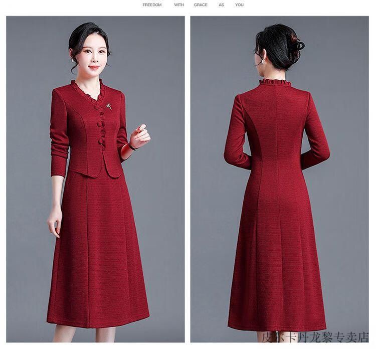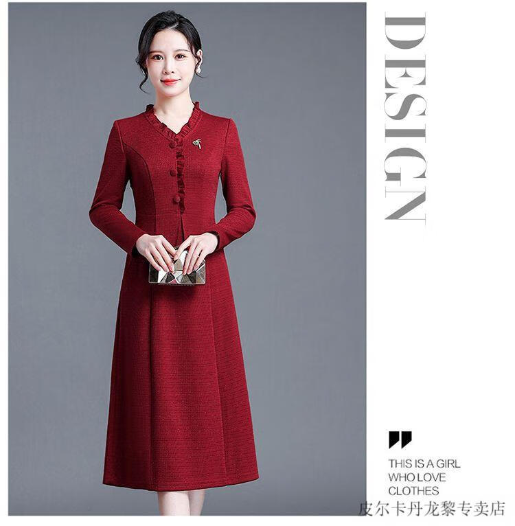 Pierre Cardin Young Mother-in-Law Wedding Dress Noble Cheongsam 2025 Dress Can Be Weared in Autumn as Mother-in-law Wedding Dress Red 2XL (Suitable for 126-135 Jin Jin equals 0.5 kg)