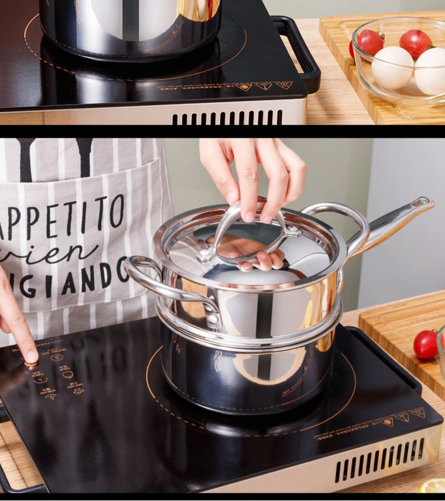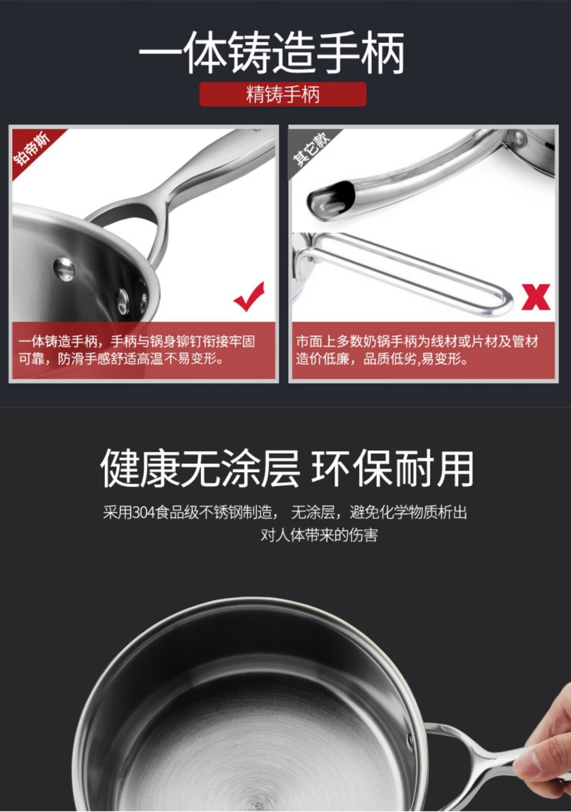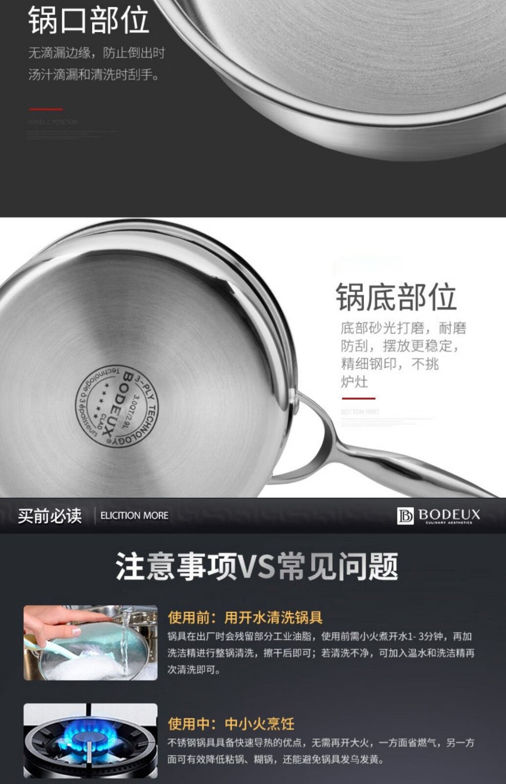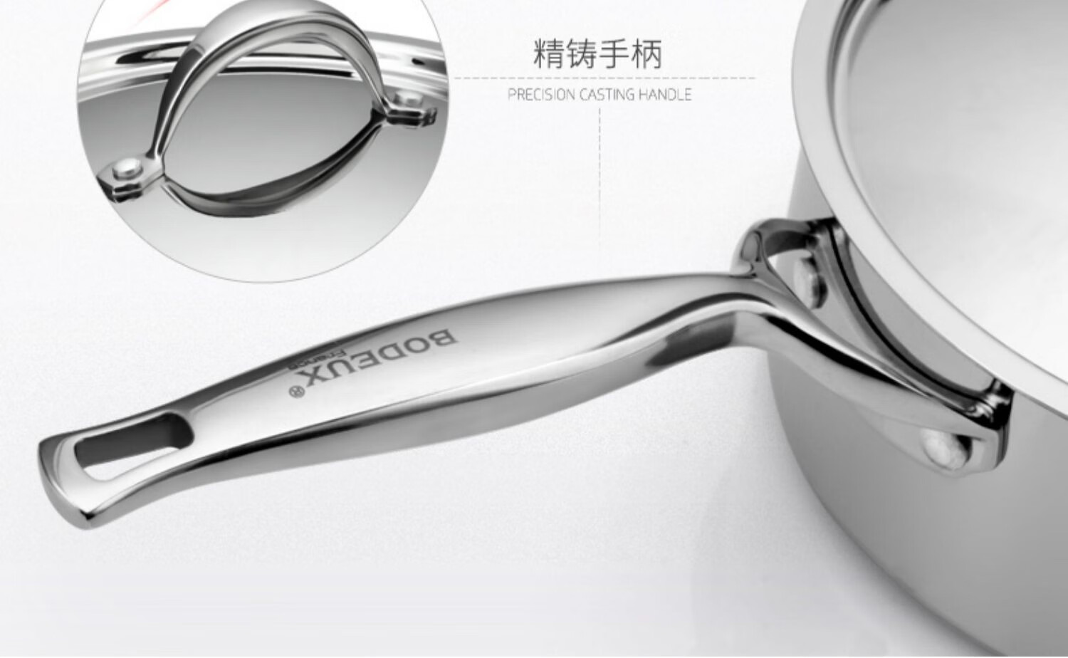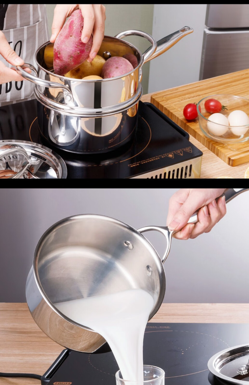 BODEUX baby food pot, baby small milk pot, non-stick pot 304 stainless steel, household uncoated gas induction cooker, universal knight milk pot 16cm