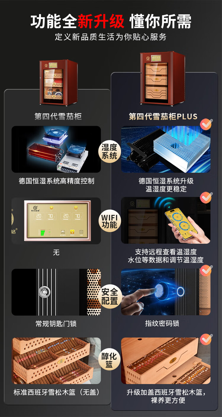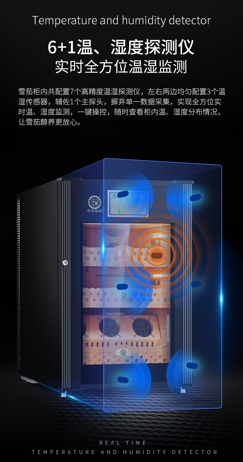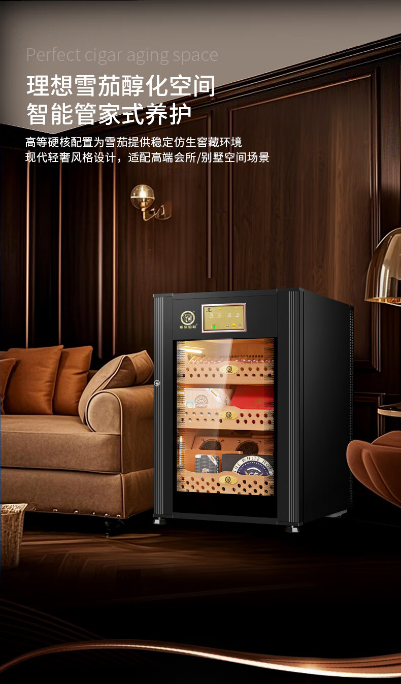 Bulldog cigar cabinet, constant temperature and humidity, ammonia removal, red wine cabinet, humidity control, tomato cultivation, imported compressor moisturizing cabinet, household energy-saving WiFi small fingerprint lock password high-end embedded VC118 fourth generation PLUS fingerprint password lock WiFi+VC118 black