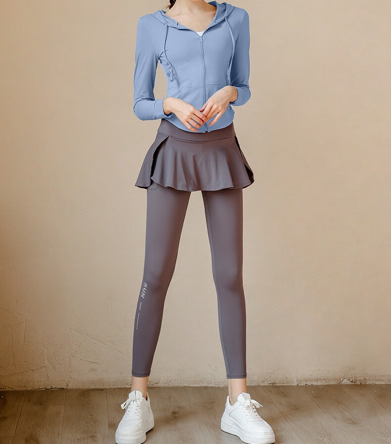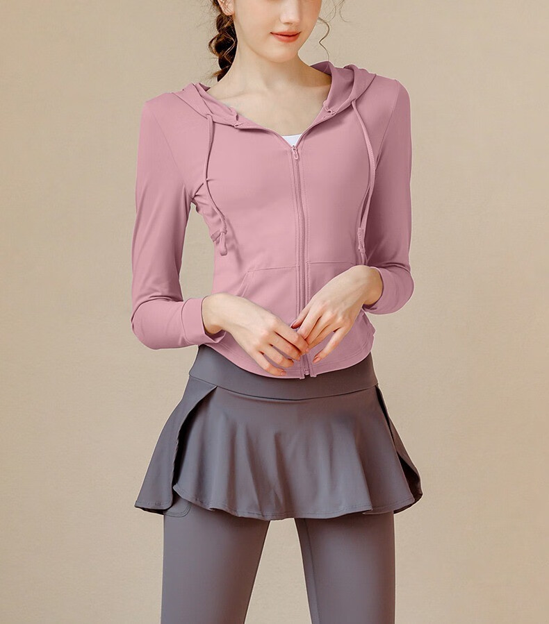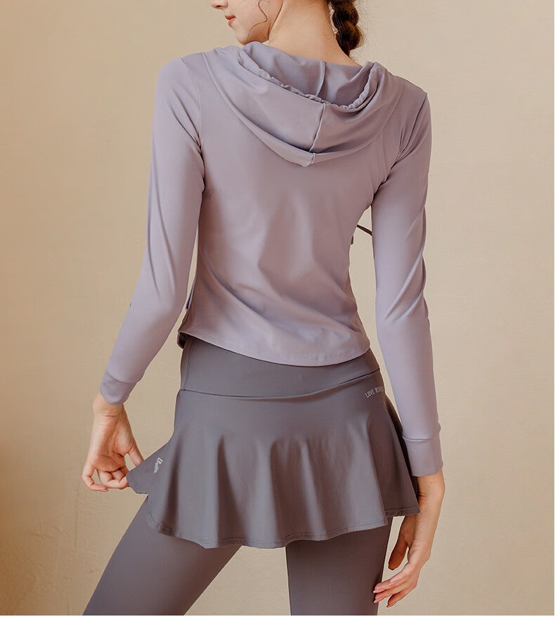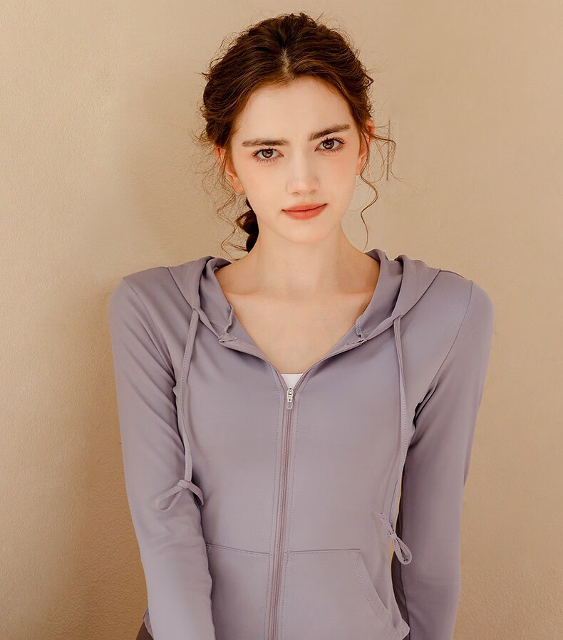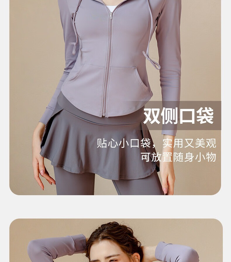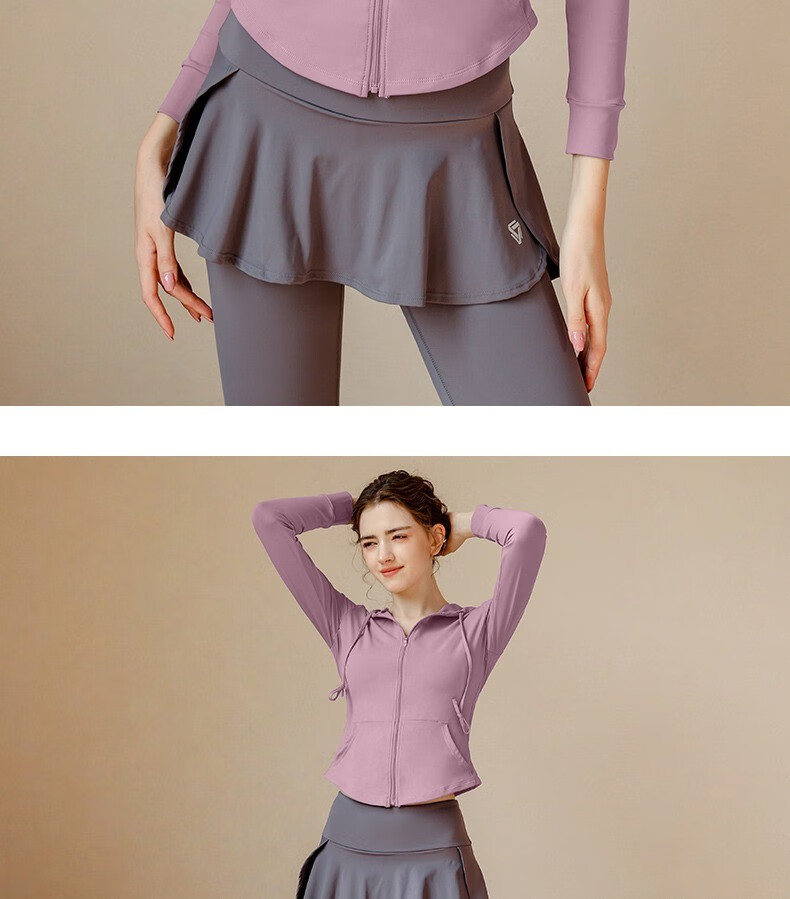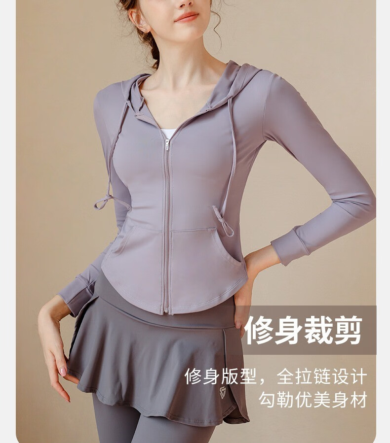 Yuebu yoga suit fitness suit women's running sports jacket Pilates training suit gym long-sleeved high-end lotus root purple top S recommended 80-95Jin Jin equals 0.5 kg