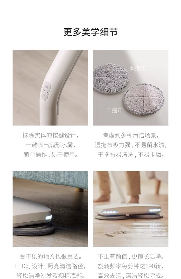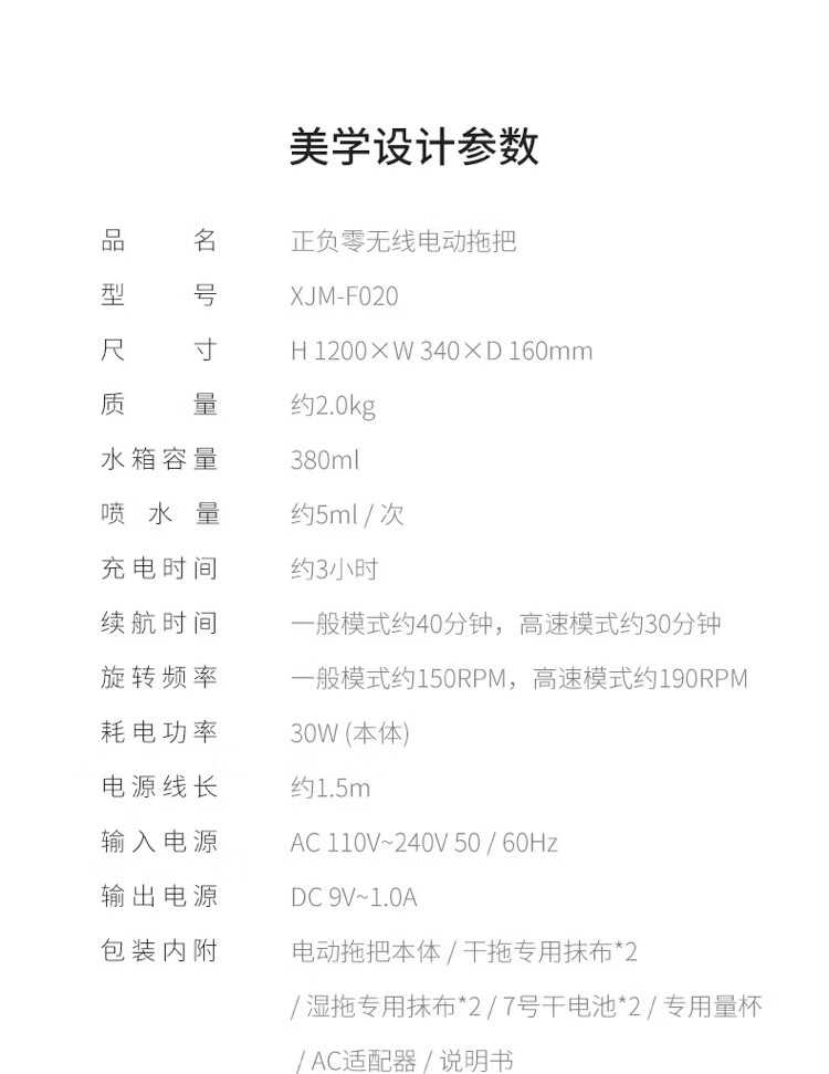 0Japanese plus-minus zero wireless electric mop household floor wiping and mopping all-in-one automatic cleaning and mopping machine F020 white electric mop