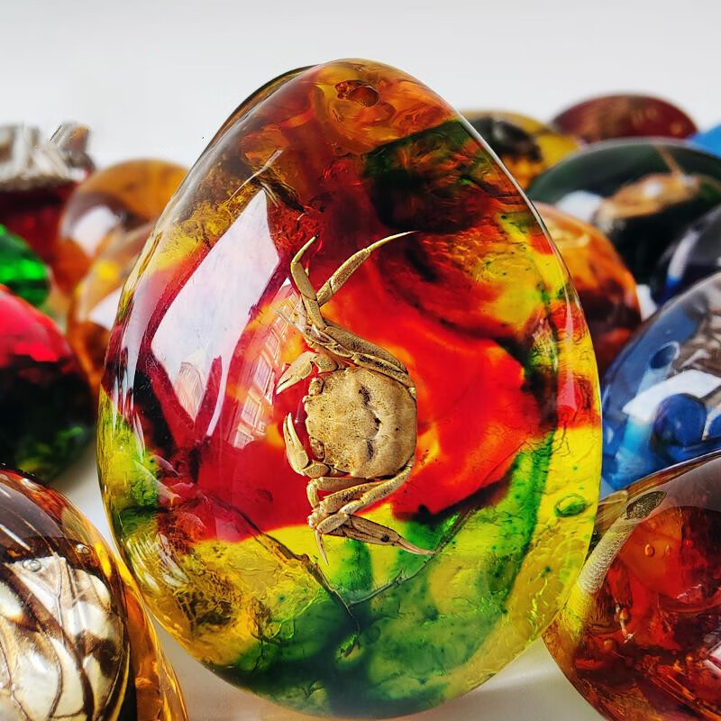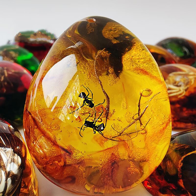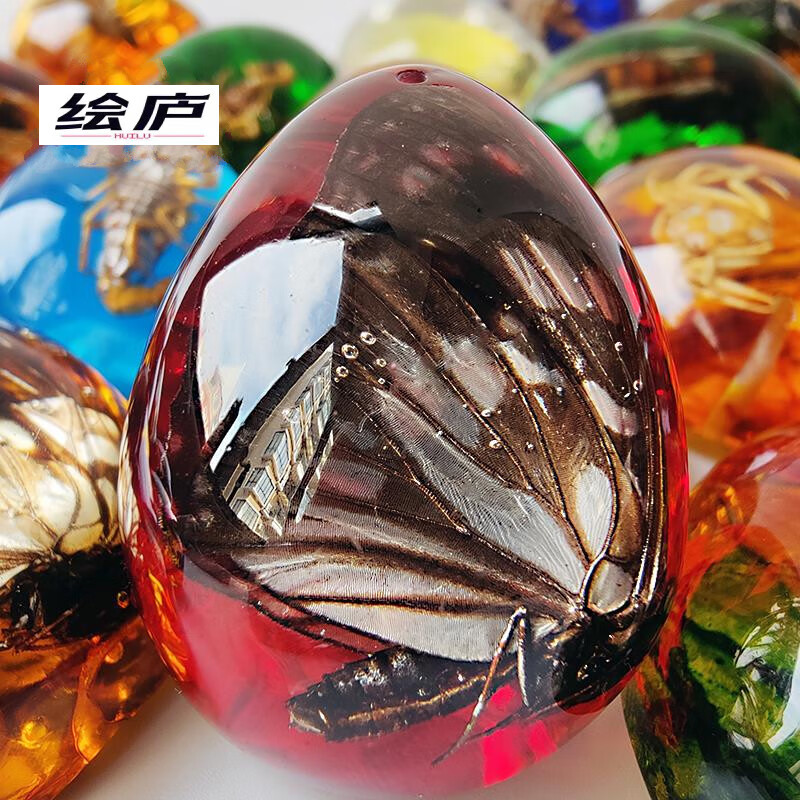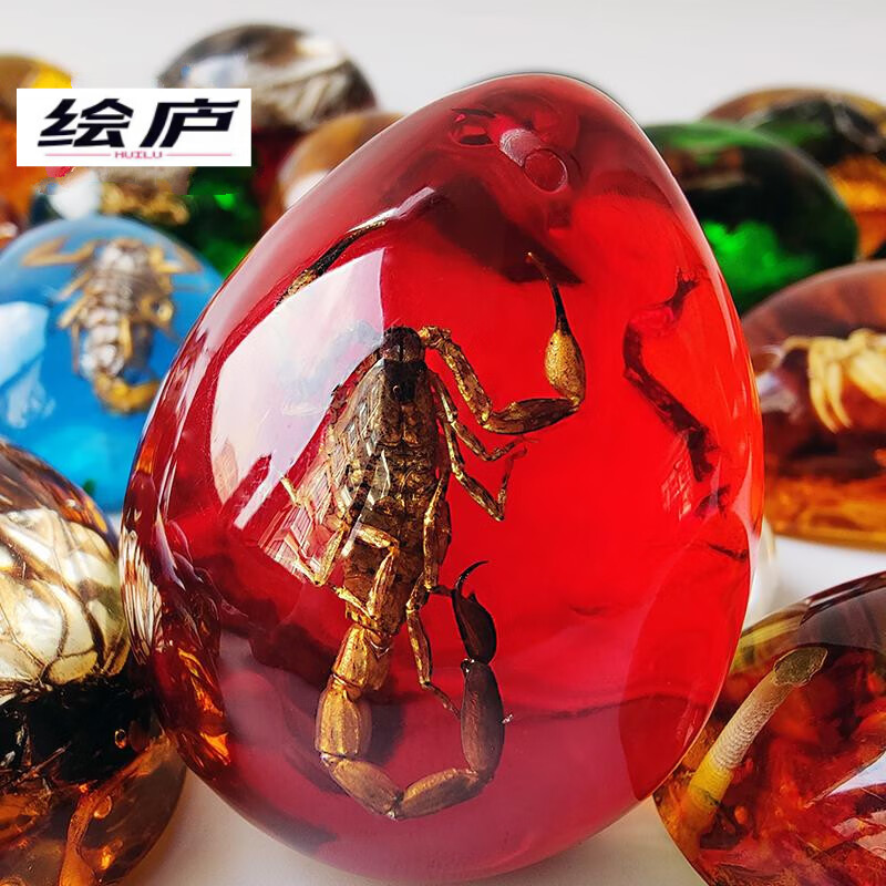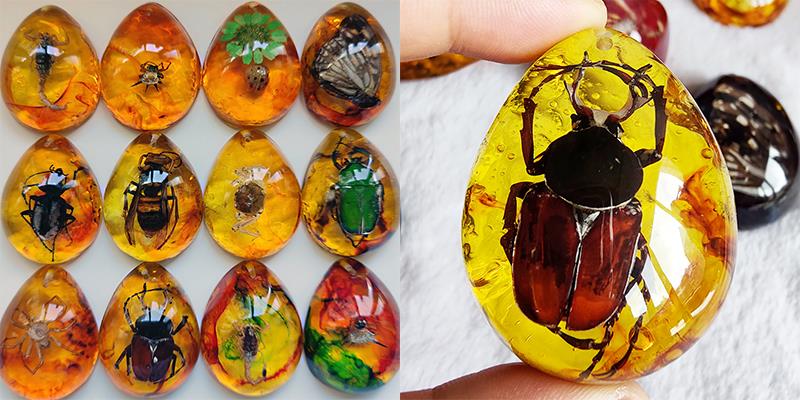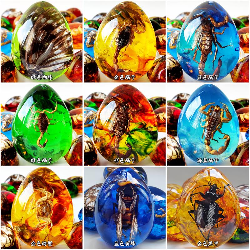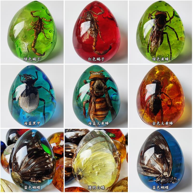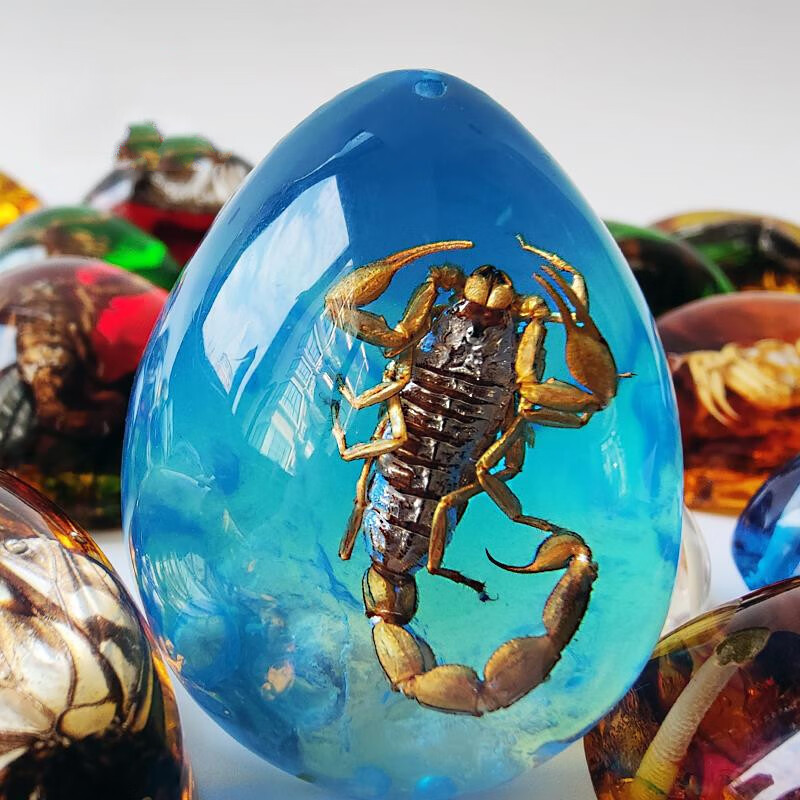 Huilu Insect Amber Pendant Natural Butterfly Specimen Insect Amber Necklace With Insect Animal Pendant Made Fashion Creative Single Side Polished Ocean Blue Scorpion With Lanyard