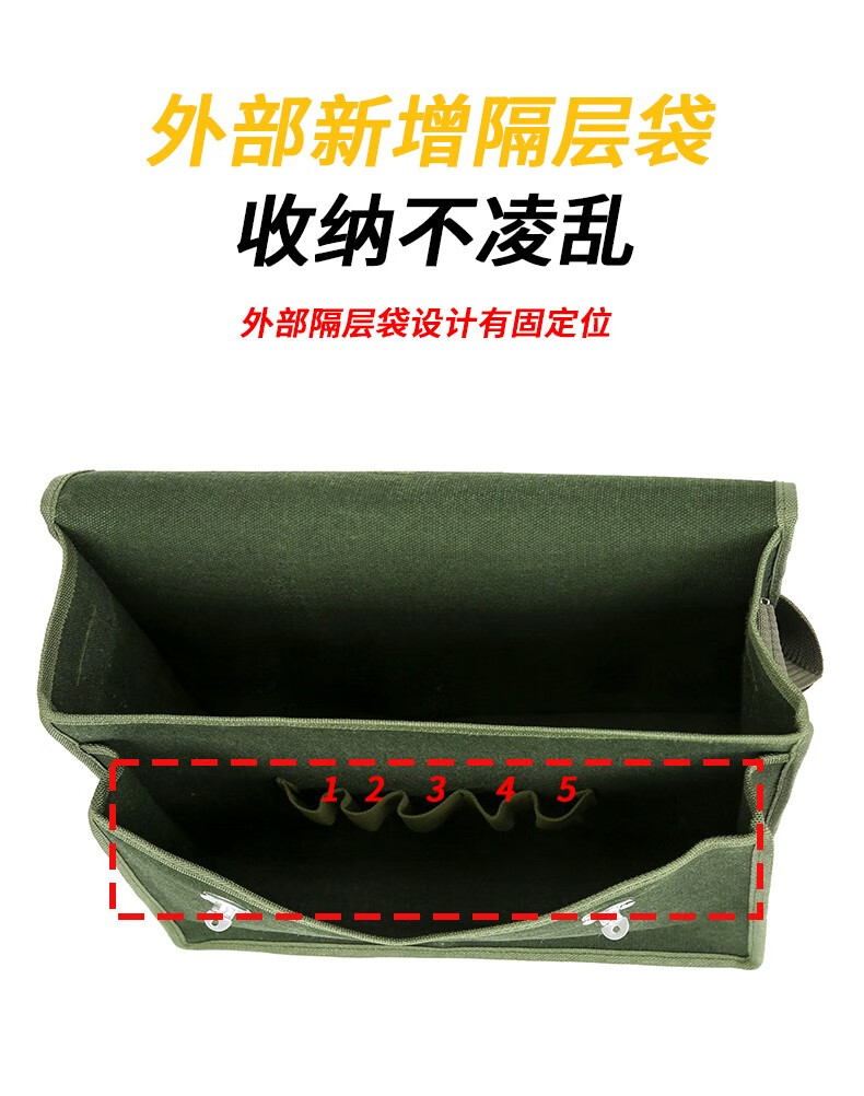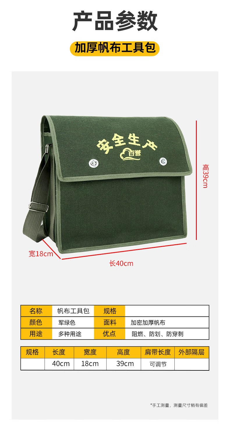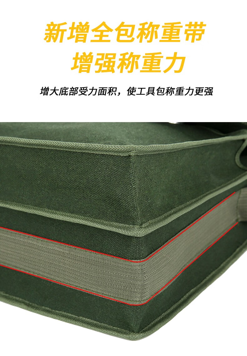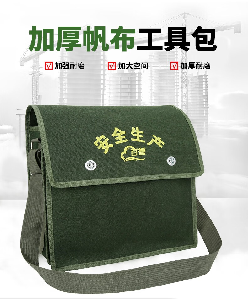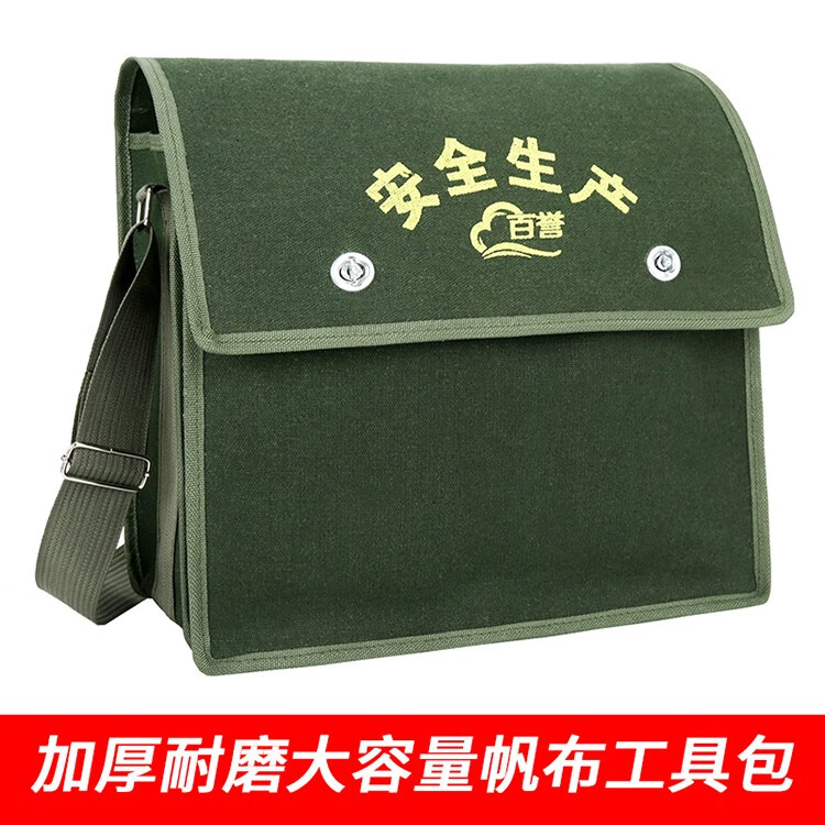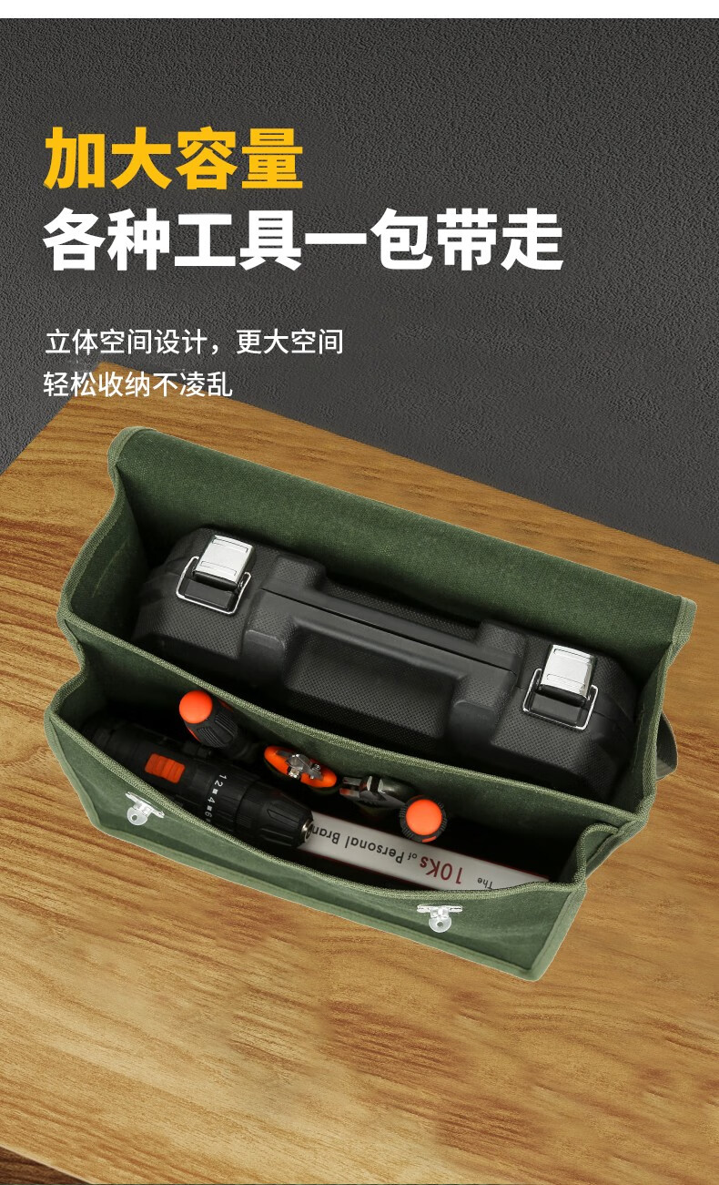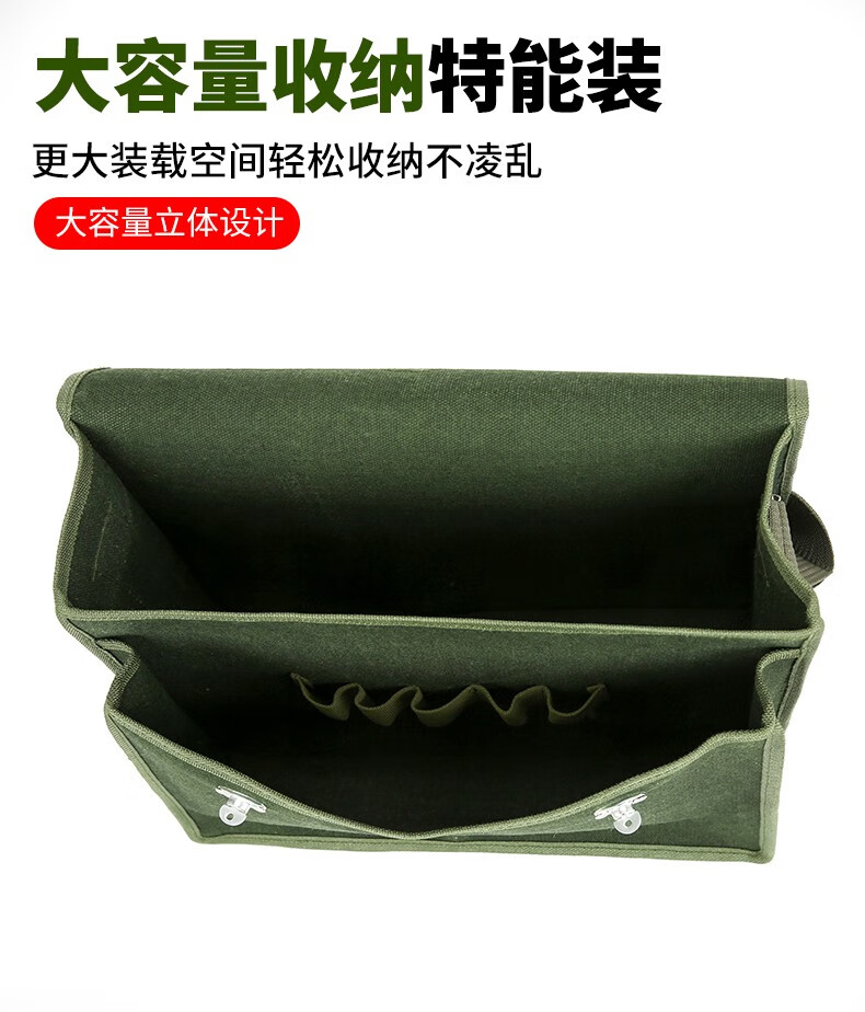 Thick encrypted canvas double-layer tool bag for electricians, carpenters, bricklayers, large, medium, small, multi-functional storage pockets, multi-functional double-layer large 45*19*38, green thickened and wear-resistant