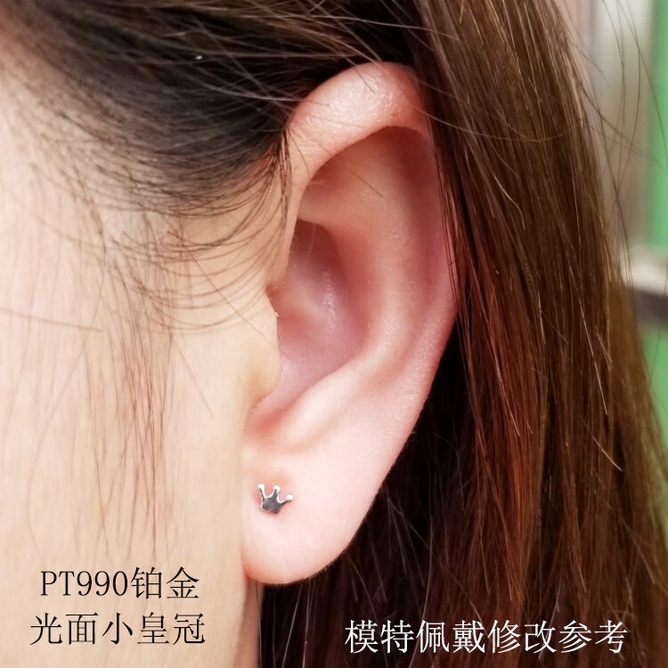 QIANSHU PT950 platinum earrings for women small crown platinum earrings exquisite mini small ears Valentine's Day gift Platinum hook smooth small crown 0.23g single