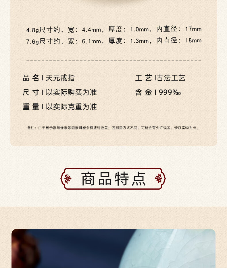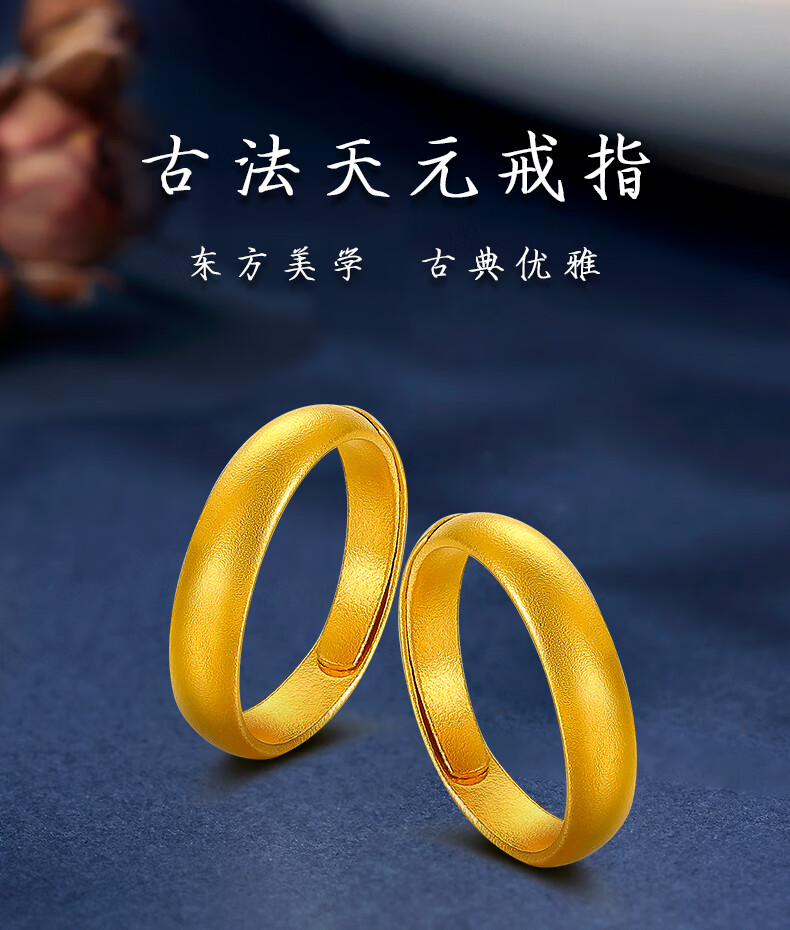 Zhongxin Jewelry Ancient Method Inherited Tianyuan Ring Pure Gold 999 Live Aperture Gold Couple Ring Jewelry Gift for Girlfriend 3.94g