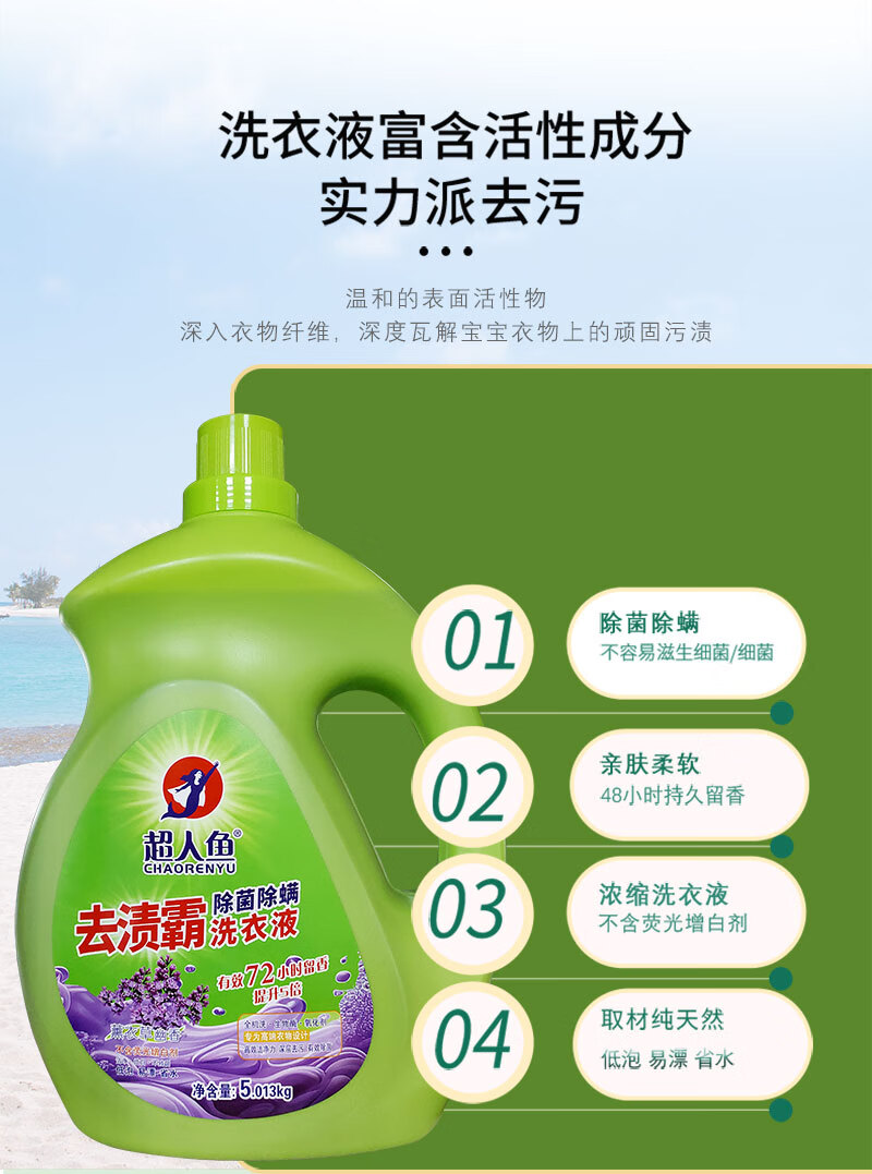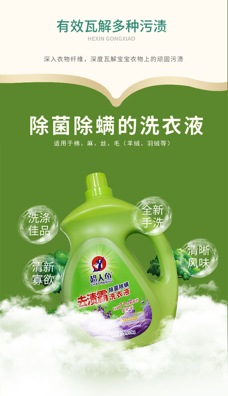 Superman Stain Remover 3kg/5kg Concentrated laundry detergent for sterilizing and removing mites Large bottle of lavender fragrance, color protection and beauty, suitable for infants and young children 3kg/bottle