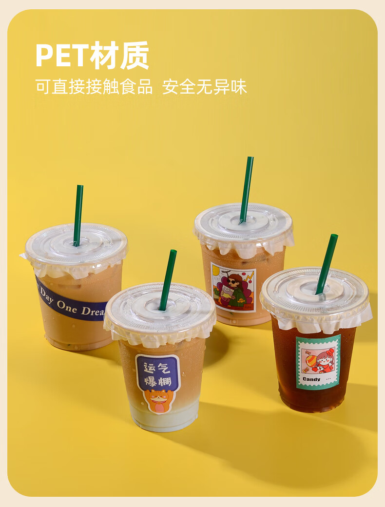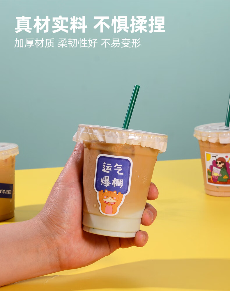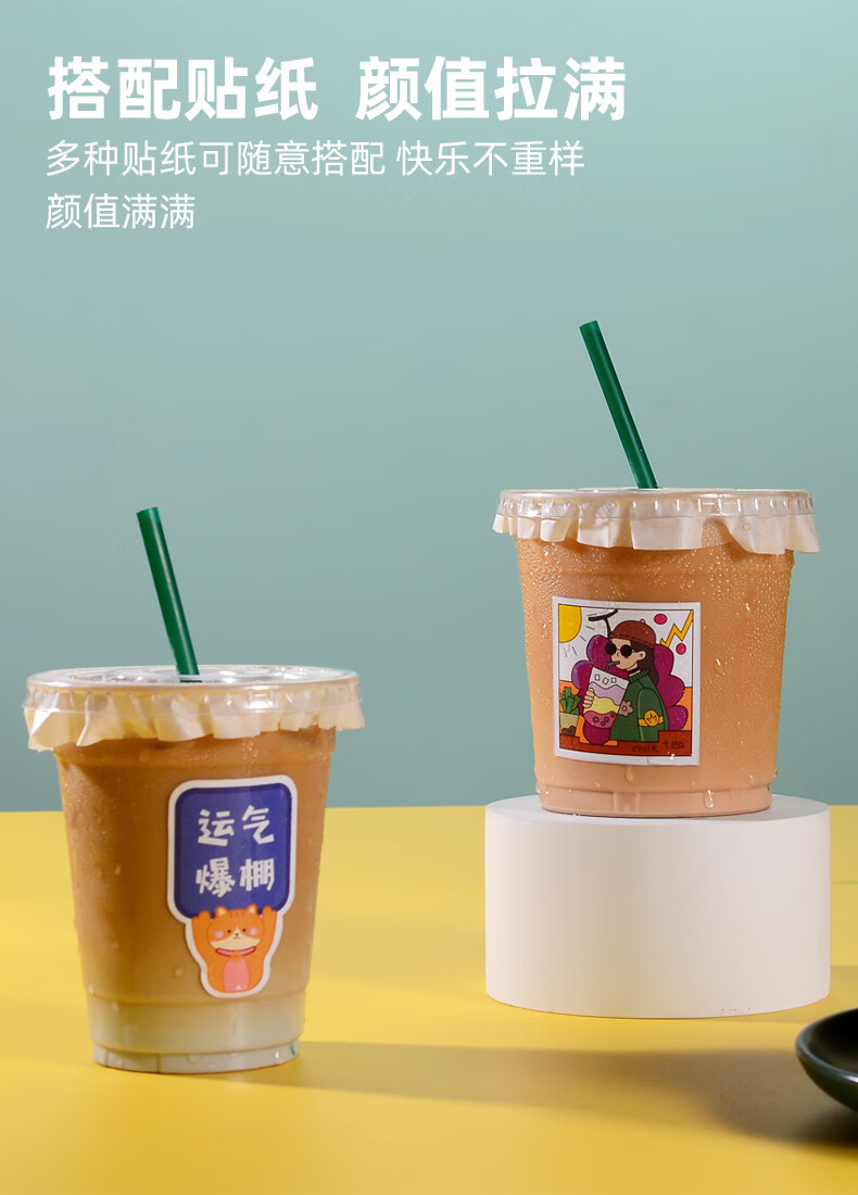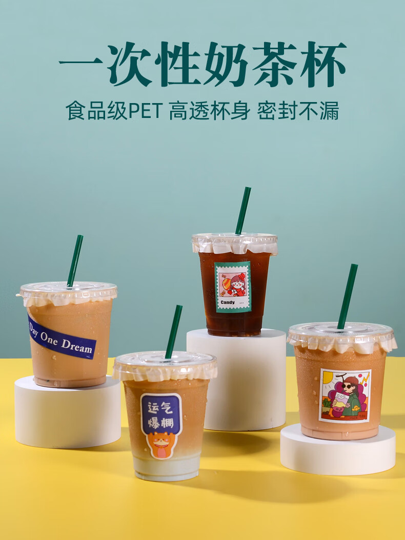 XINBAIYUE Internet celebrity coffee cup disposable milk tea cup with lid commercial homemade beverage packaged takeaway cup water cup cute/good luck cup + lid + straw + leak-proof paper 500ML50 pieces