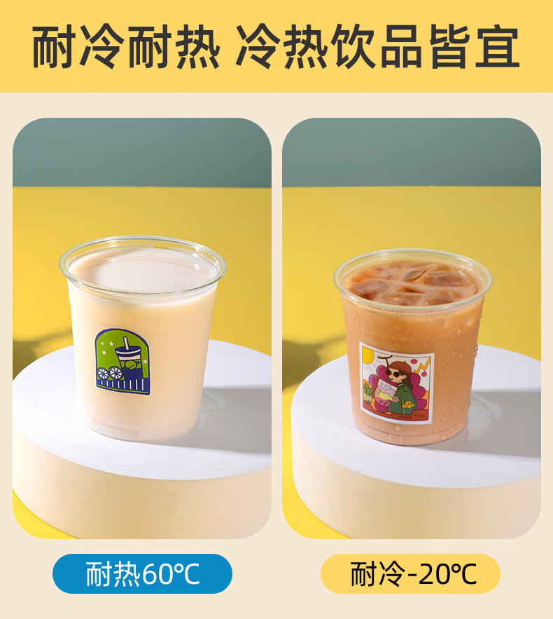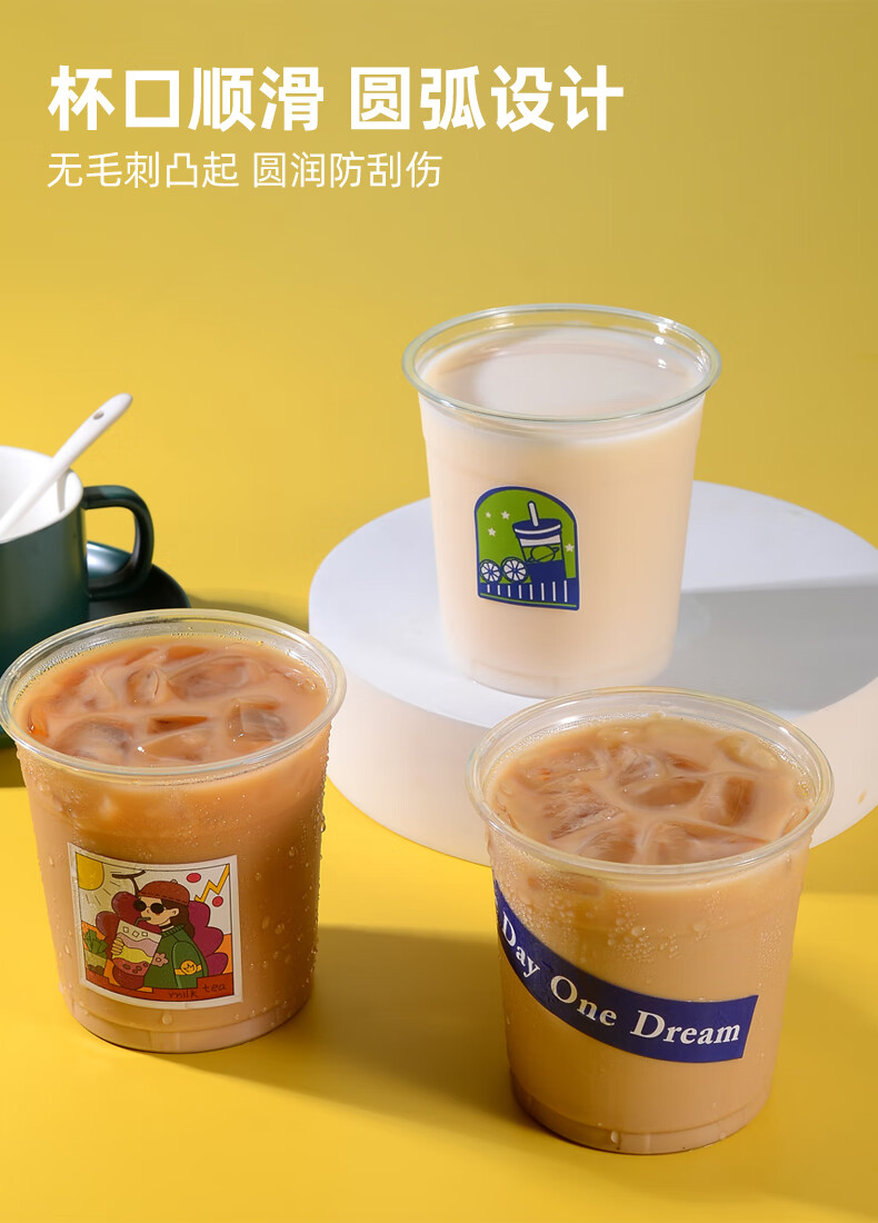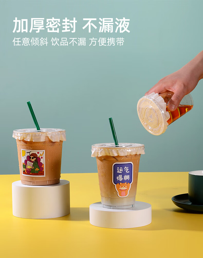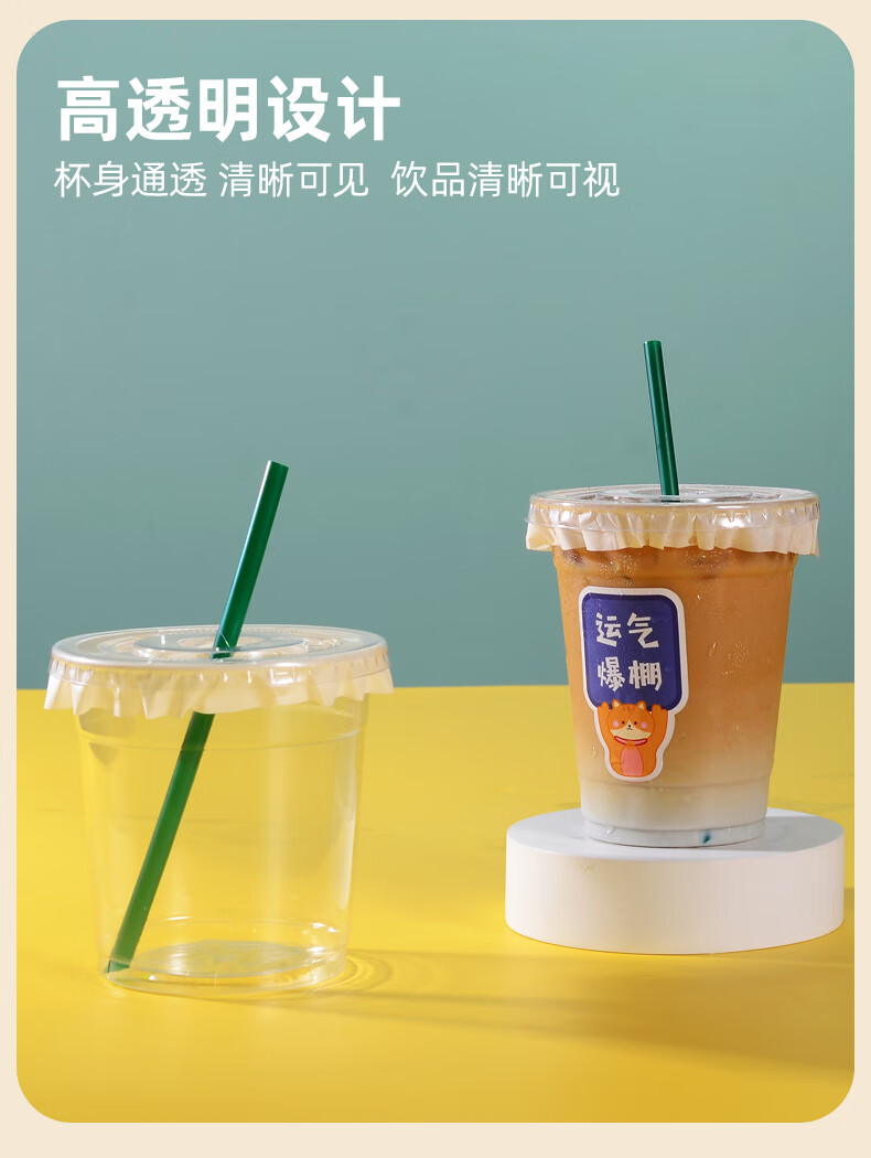 XINBAIYUE Internet celebrity coffee cup disposable milk tea cup with lid commercial homemade beverage packaged takeaway cup water cup cute/good luck cup + lid + straw + leak-proof paper 500ML50 pieces