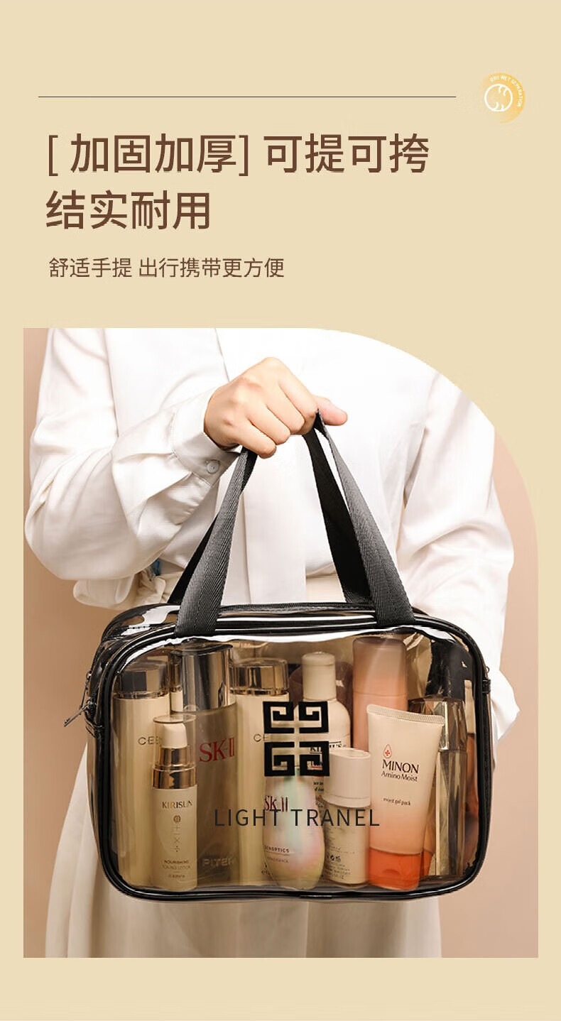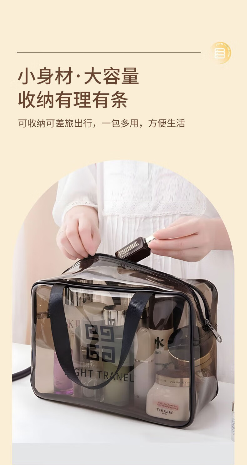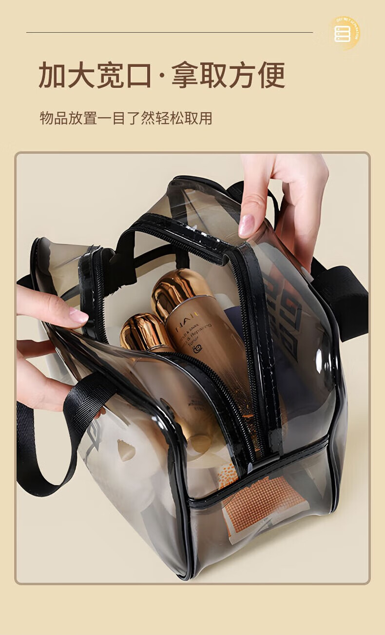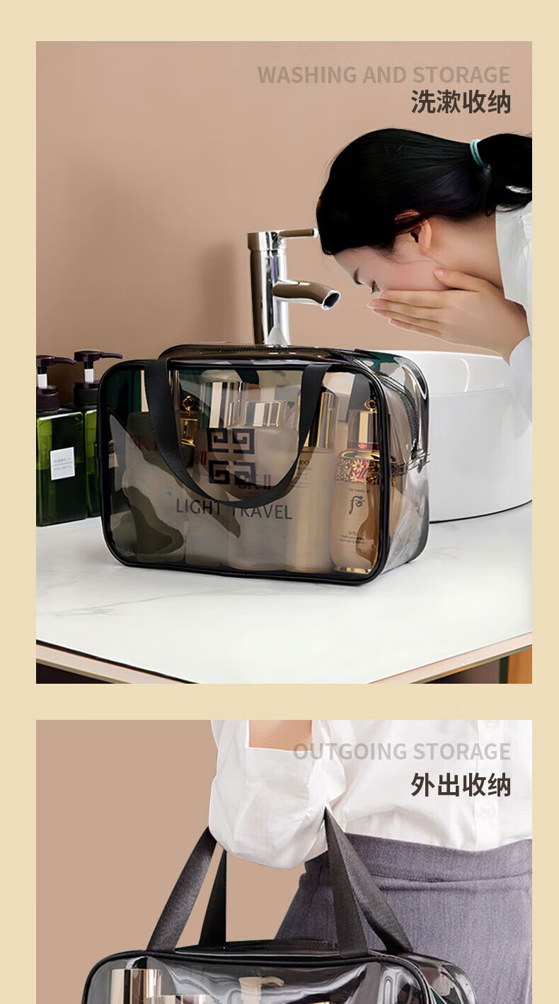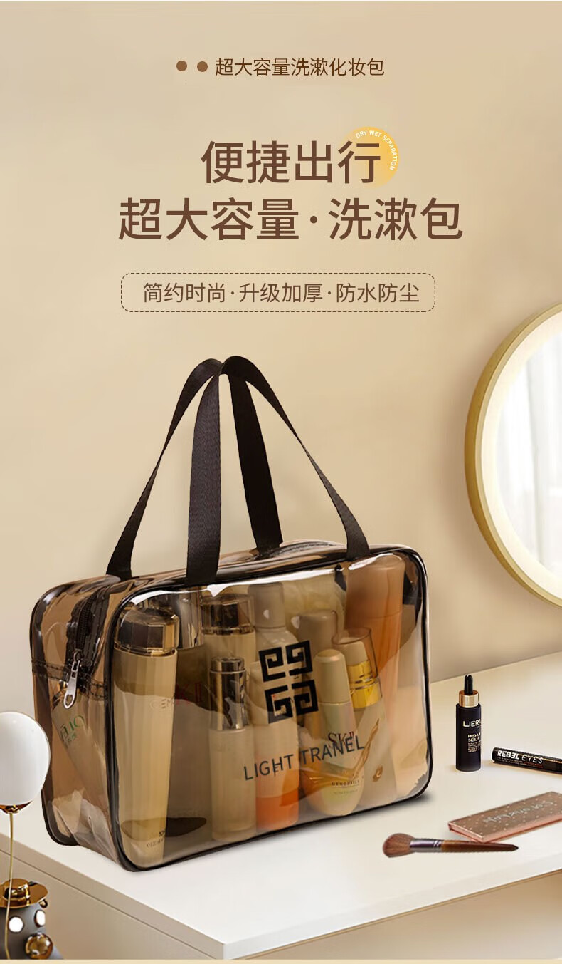 Wilkie Transparent Toiletries Bag Portable Bag Travel Makeup Toiletries Storage Bag Large Capacity Men's and Women's Business Travel Waterproof Large Large Black Gray (29cm*21cm*12cm)