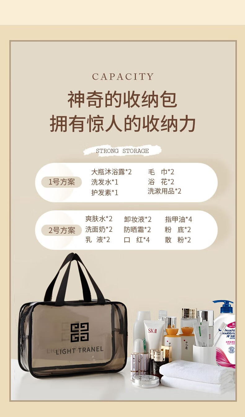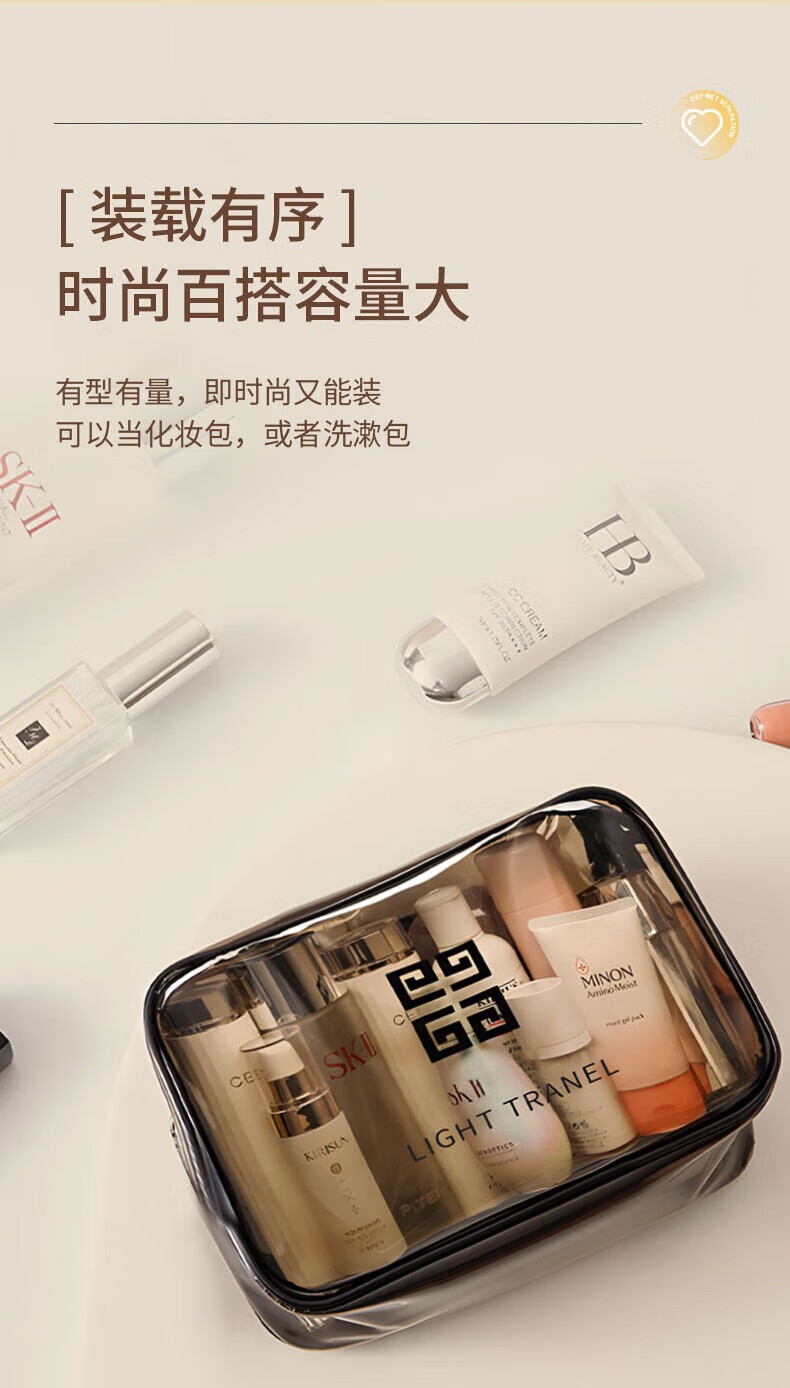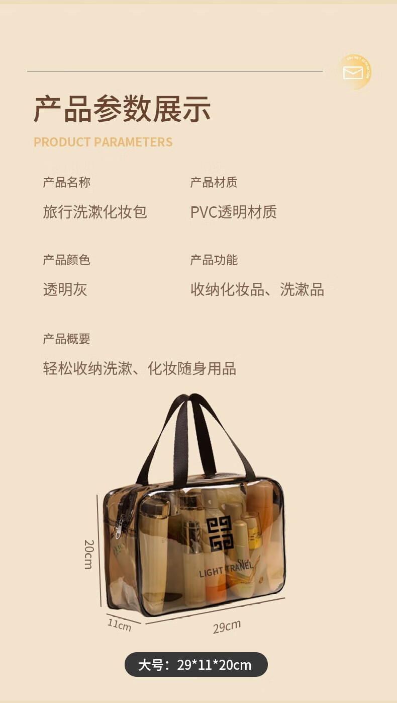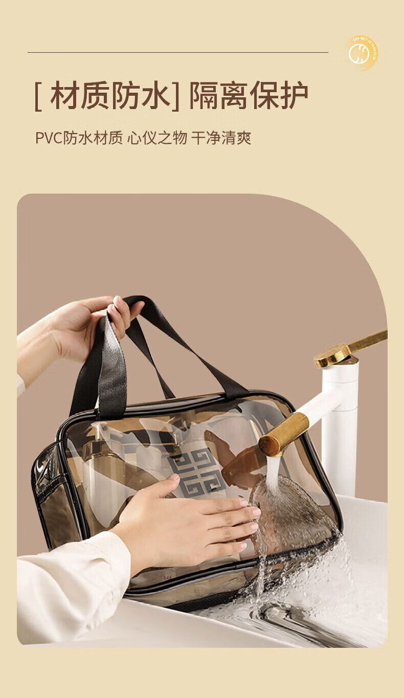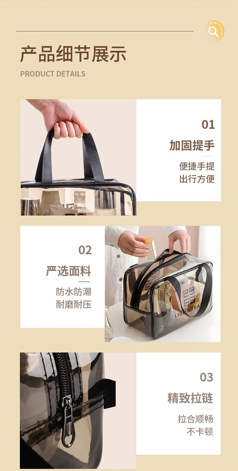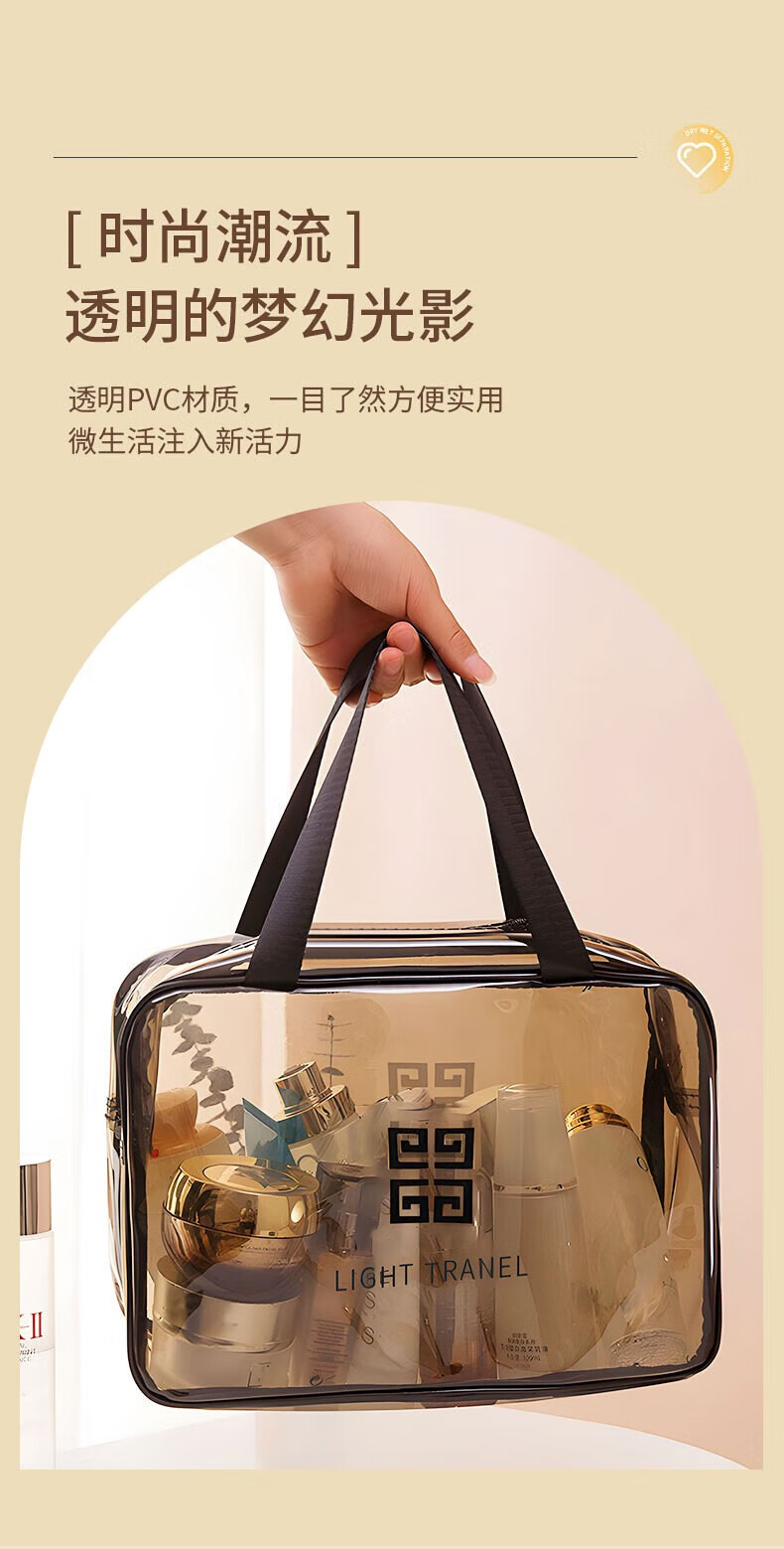 Wilkie Transparent Toiletries Bag Portable Bag Travel Makeup Toiletries Storage Bag Large Capacity Men's and Women's Business Travel Waterproof Large Large Black Gray (29cm*21cm*12cm)