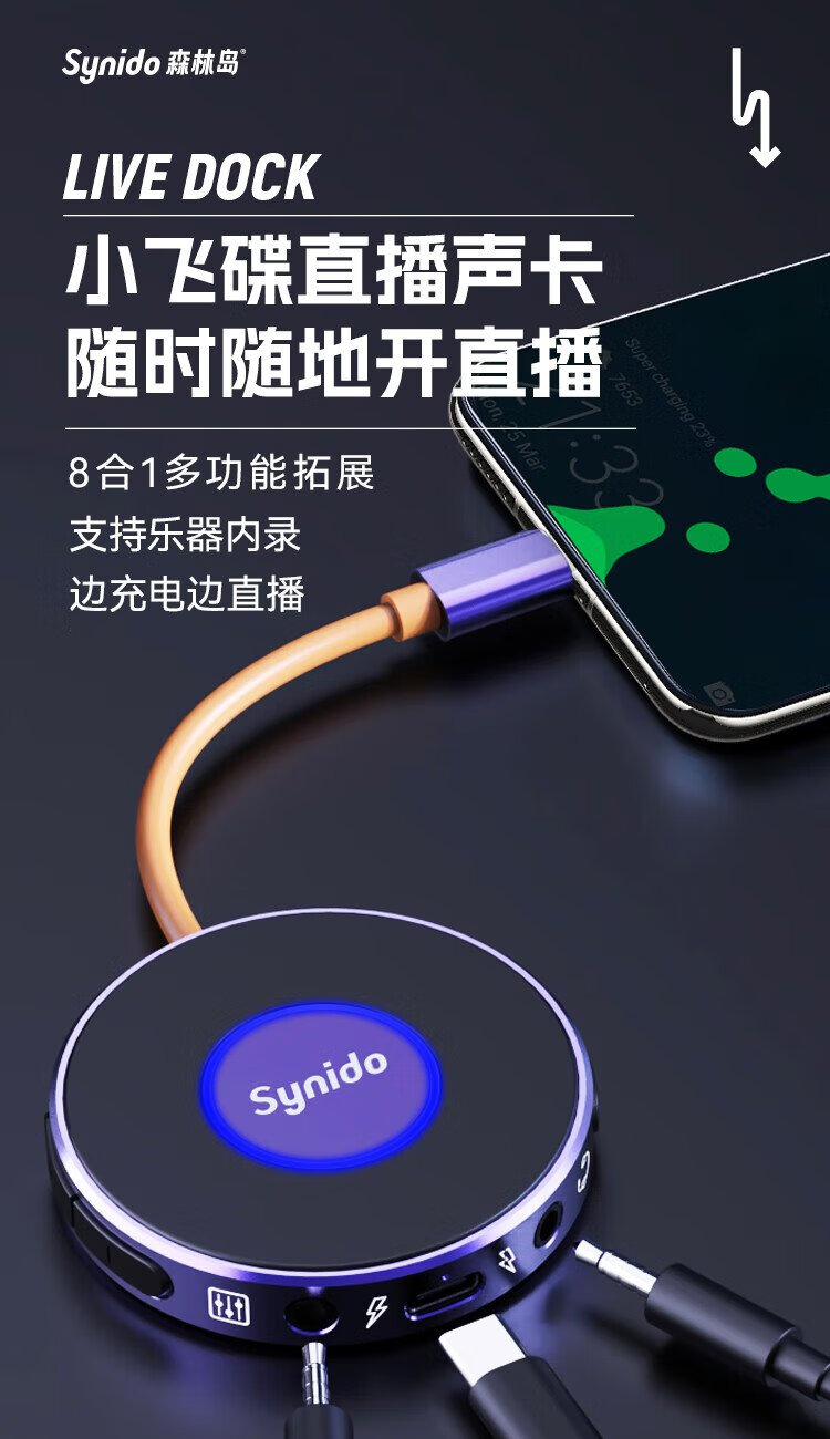 Synido Forest Island Small UFO Mobile Phone Tablet Live Sound Card Converter Expansion Mobile Phone Android Live Dock Computer Live Music Instrument Internal Recording Live No. 1 Android Mobile Live Live Dock