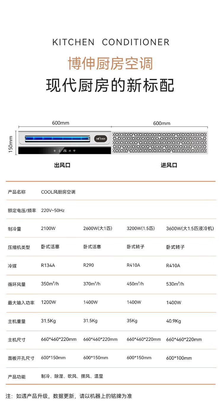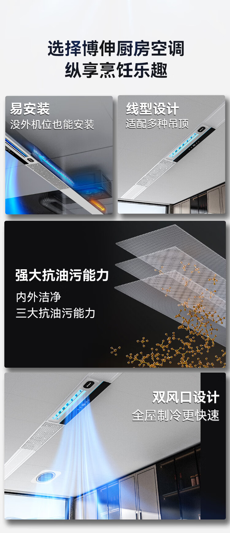 Booshen COOL style kitchen air conditioner special refrigerator Liangba single cooling household integrated embedded ceiling hidden all-in-one non-external unit kitchen and bathroom special air conditioner needs to drill 2 holes, large 1 piece, suitable for 8 single air outlets