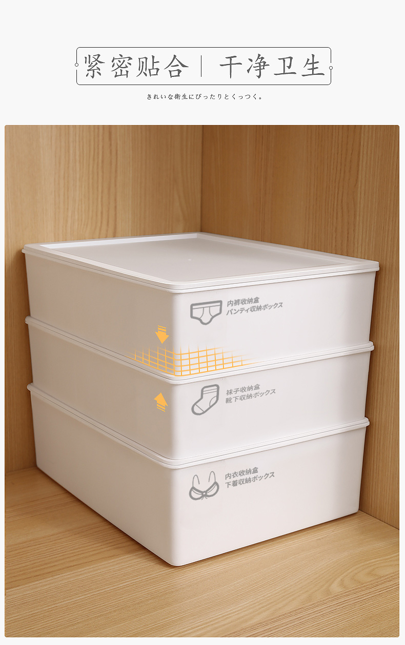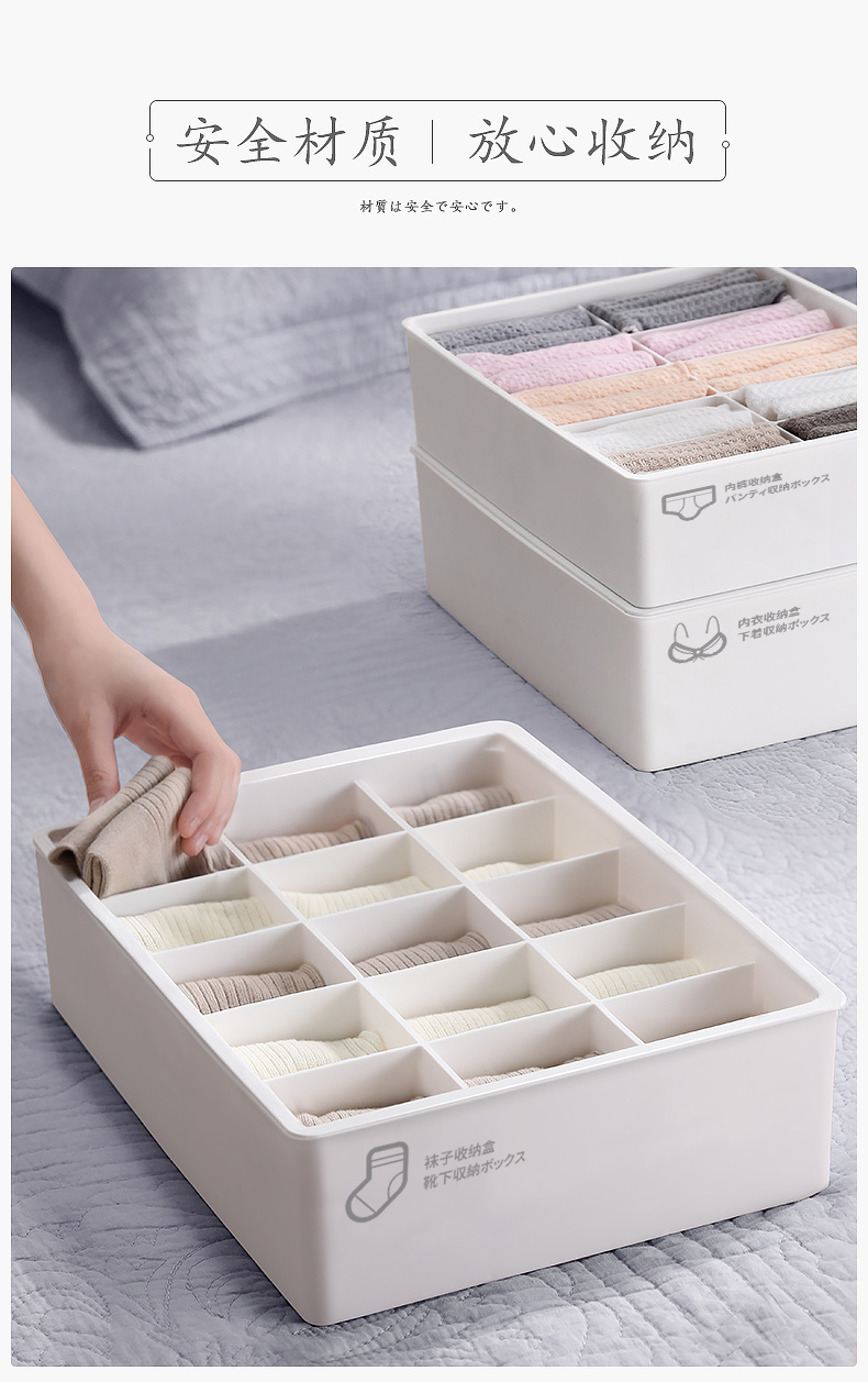 Hanke Underwear Storage Box Home Drawer-type Compartment Wardrobe Three-in-One Underwear and Socks Organizing Box Moonlight White-Sock Box Without Cover